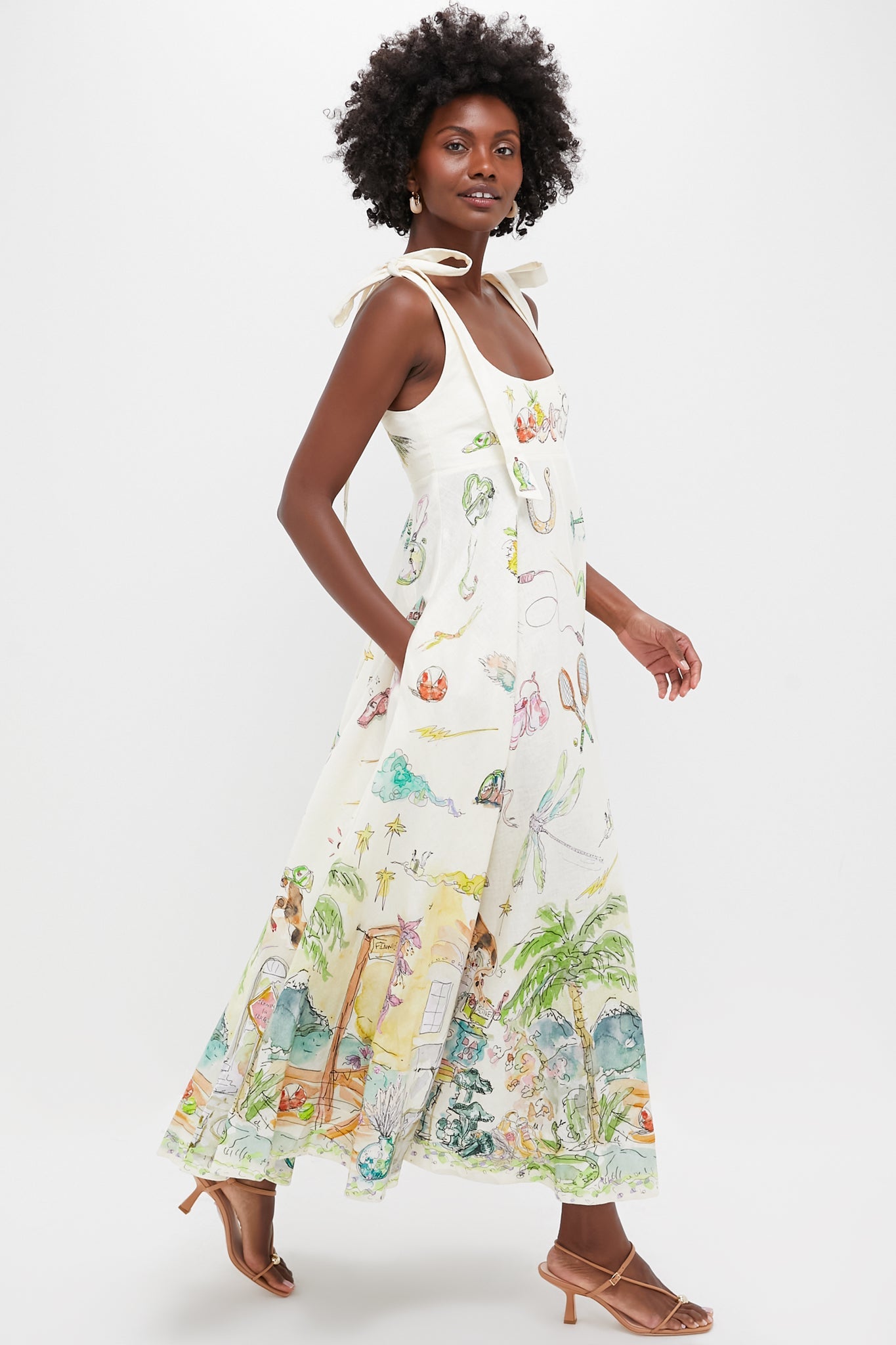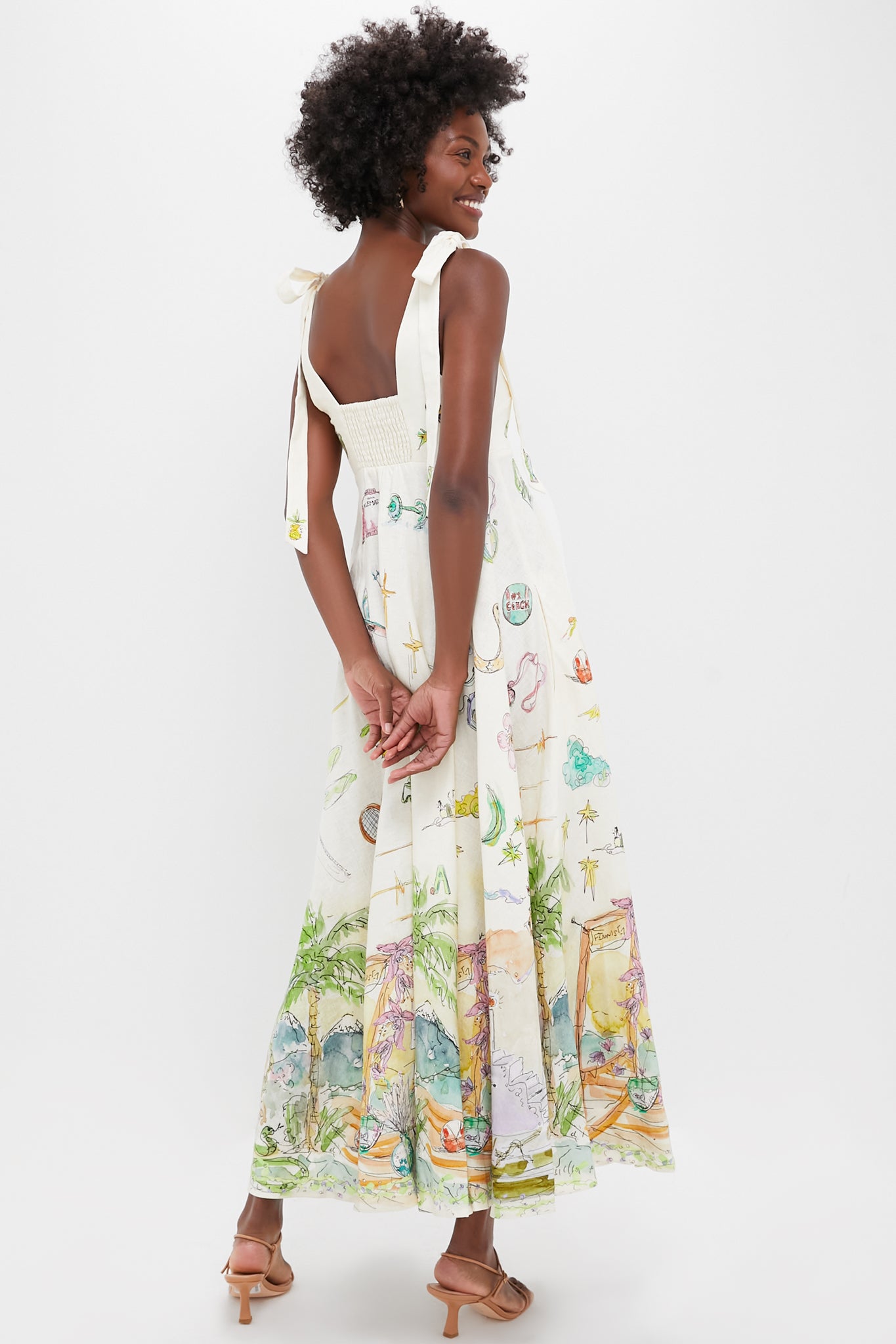 The Cream Anouk Ballet Sundress is a work of art. This classic sundress silhouette features artwork in collaboration with Anouk Colantoni, tie straps, and empire waistline, and a gathered skirt, for a flattering fit. Just add heels and a clutch for an elevated summer affair.