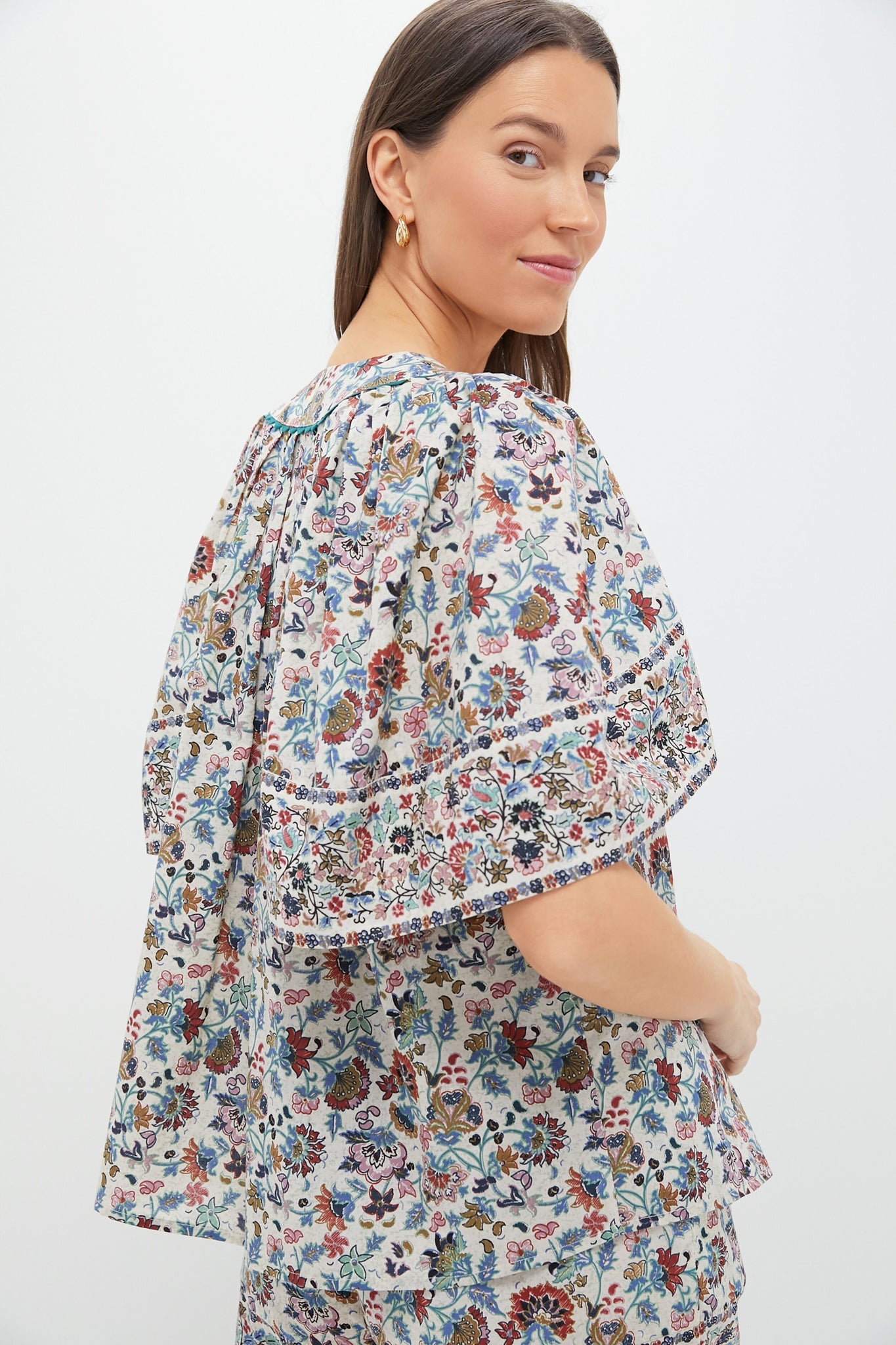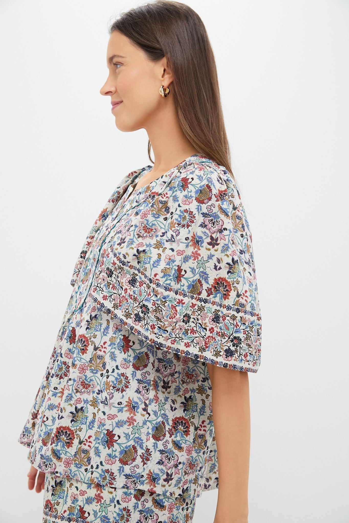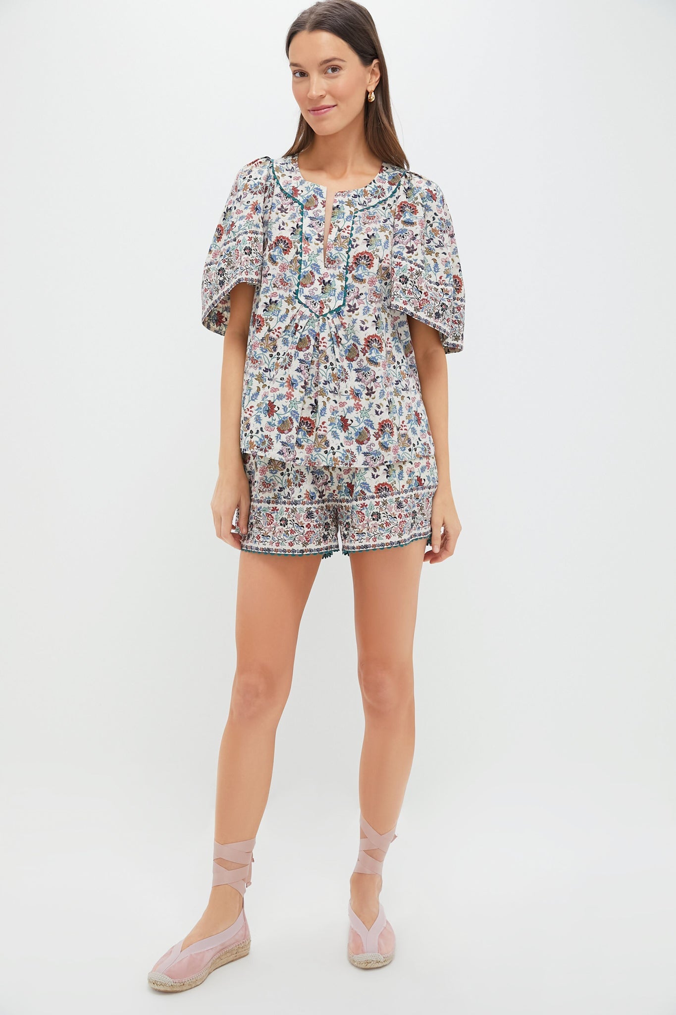 The Finley Flutter Sleeve Top is effortlessly chic. In an intricate chintz print, this blouse has a flattering silhouette, oversized flutter sleeves, and a V-neckline. Pair with the matching Cream Chintz Nova Shorts and gold accessories for everything from resort-stays to brunch season after season, year after year.