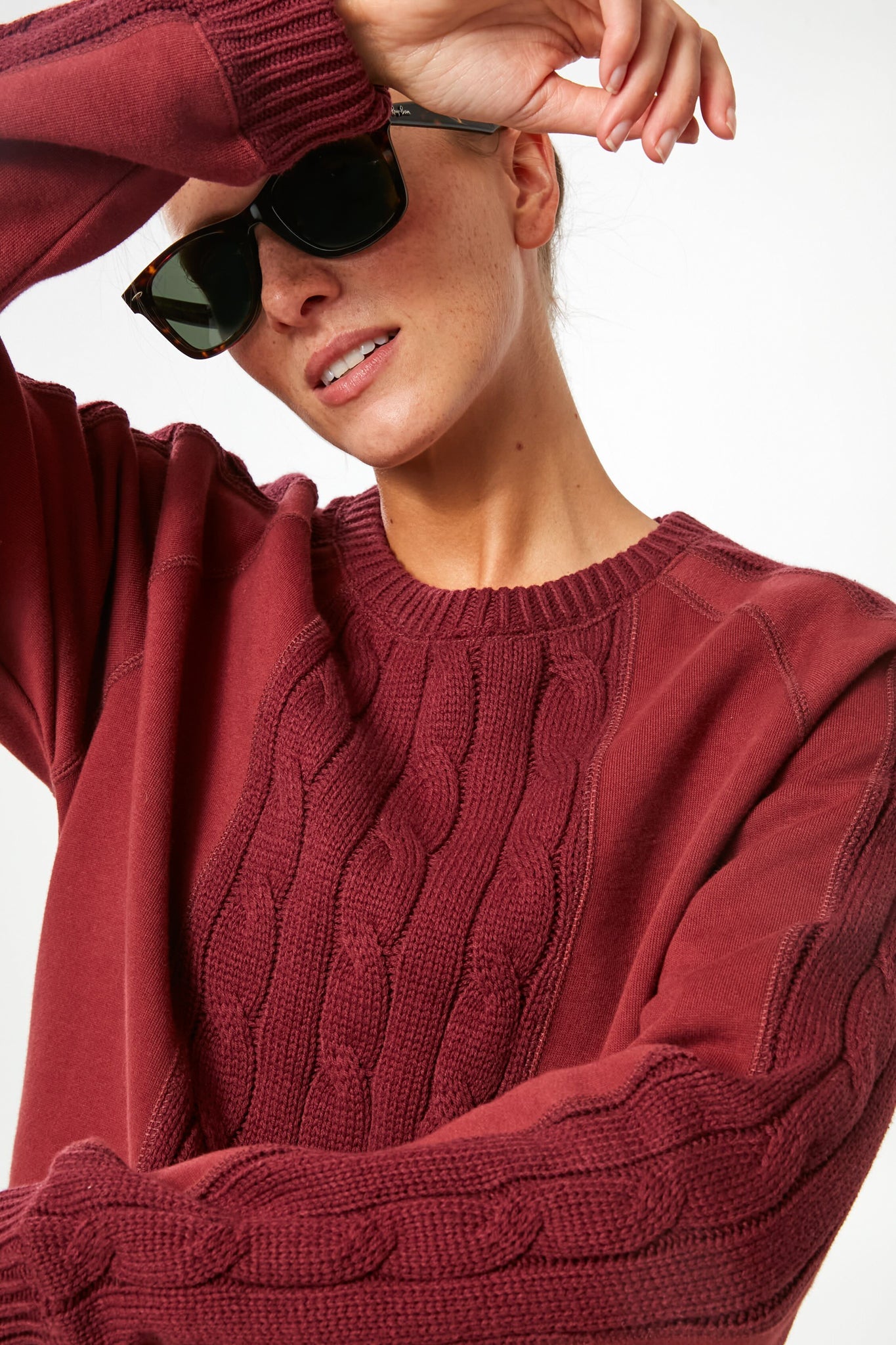 Head to the farmers market in the Cable Knit Reid Sweatshirt, featuring a relaxed fit, ribbed hem and sleeve detailing. This piece will be perfect to tie at the waist or rock with a pair of jean shorts and sandals.