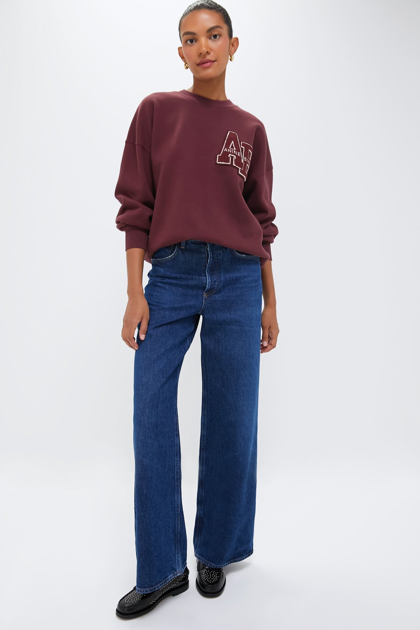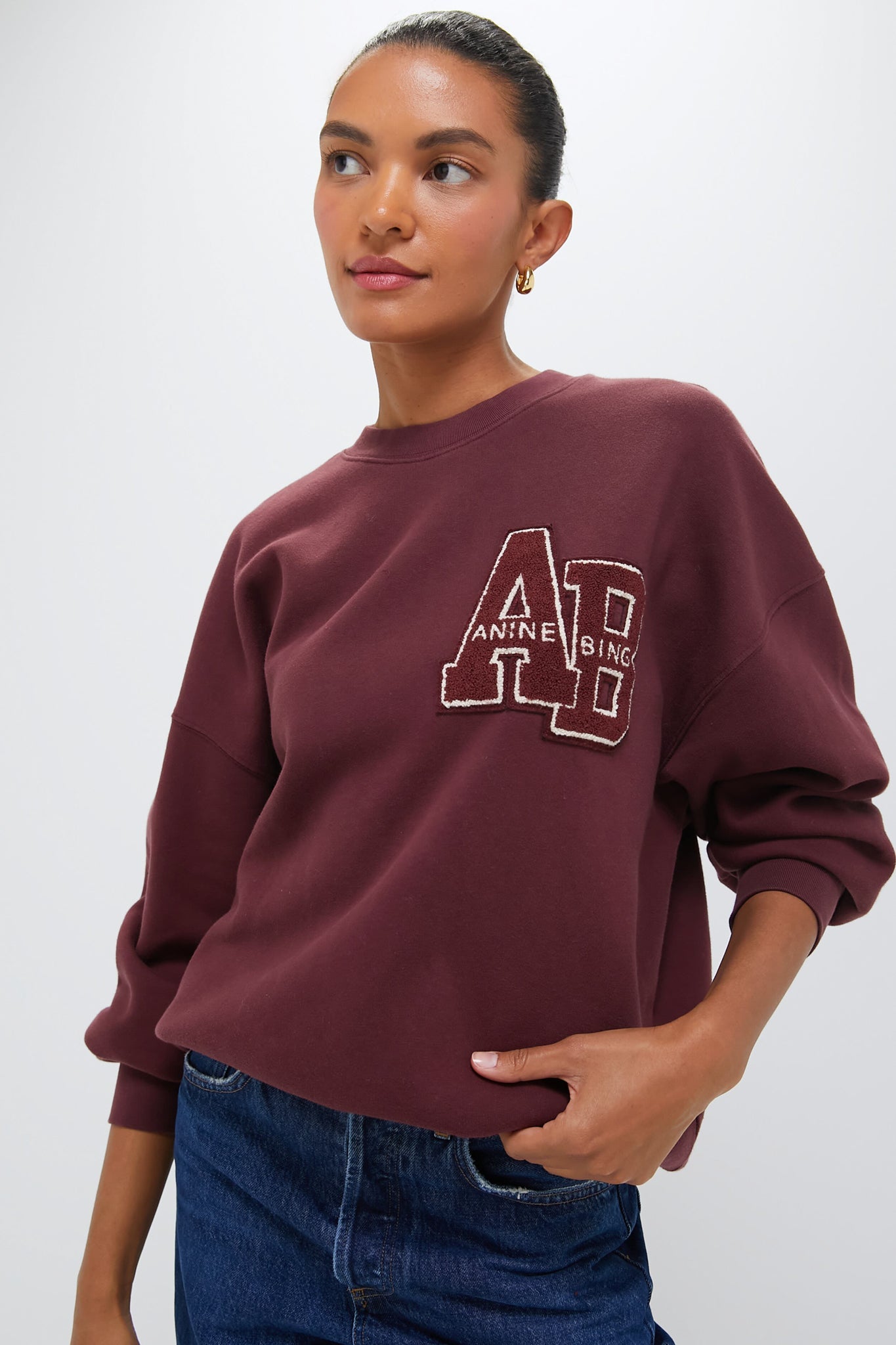 Dark Burgundy Miles Oversized Letterman Sweatshirt