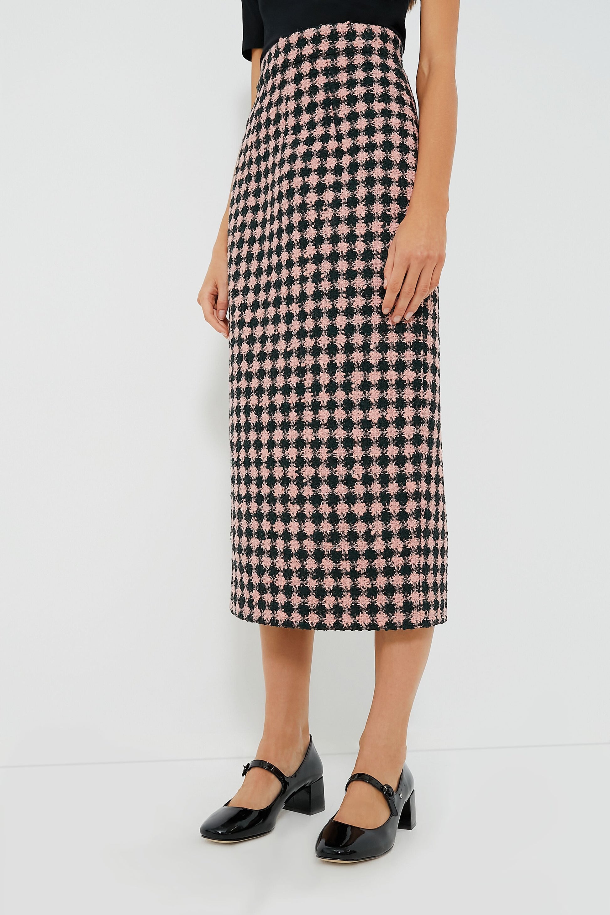 Power dressing is in this season, and there's no better way to try the trend than the Dark Green and Pink Lorinda Heritage Wool Skirt. Cut to a slim pencil silhouette that skims the body and hits mid-calf, this houndstooth-patterned style has a flattering high rise and a back vent for ease of movement. Pair it with a turtleneck and Mary Janes for a feminine and fun office look, or try it with a silk blouse or a boxy blazer for a more contemporary styling.