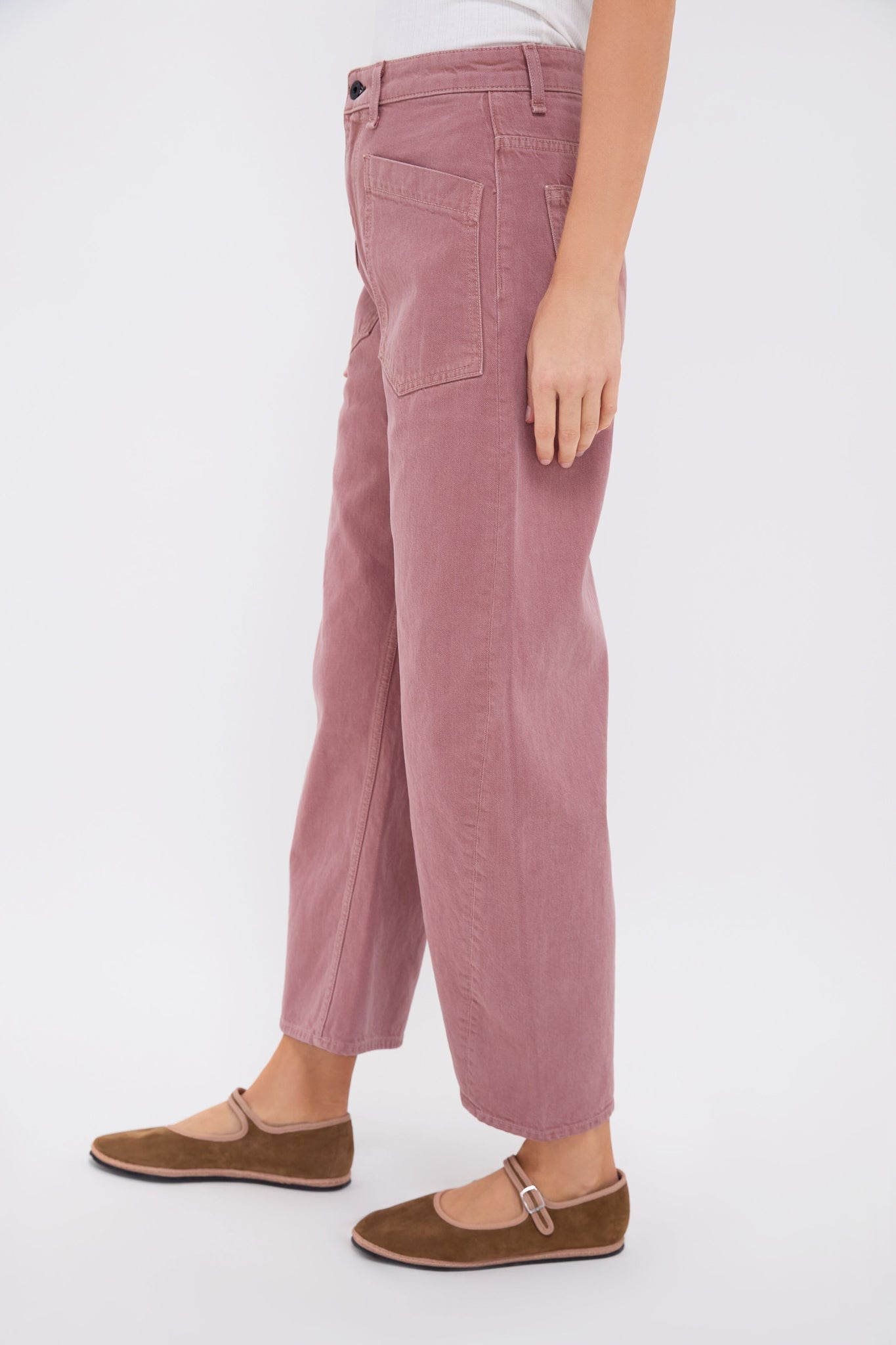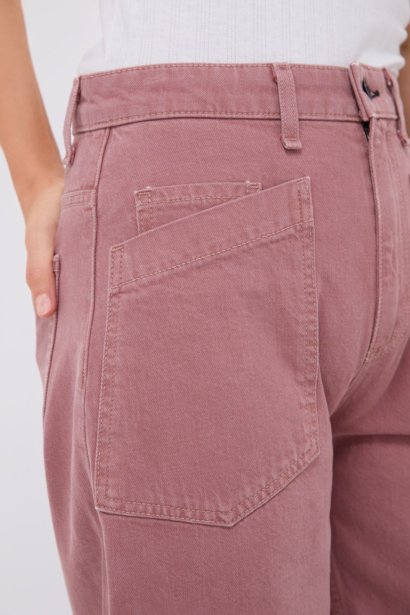 The Twisted Barrel Pant is a fun twist on denim! In a dusty rose hue this pant features a high rise, barrel silhouette, and patch front pocket detailing. Pair with a sweater, trench coat, flats, and a handbag for the perfectly polished look for running around town!