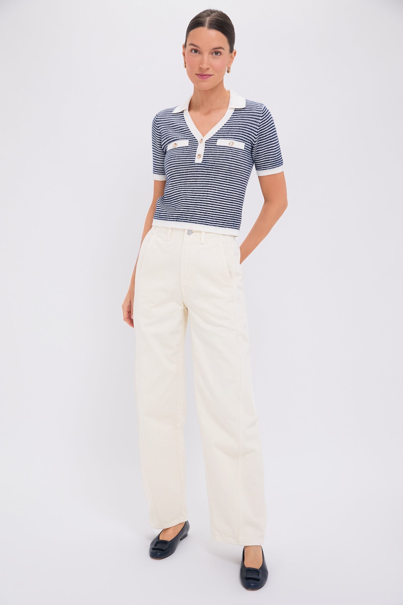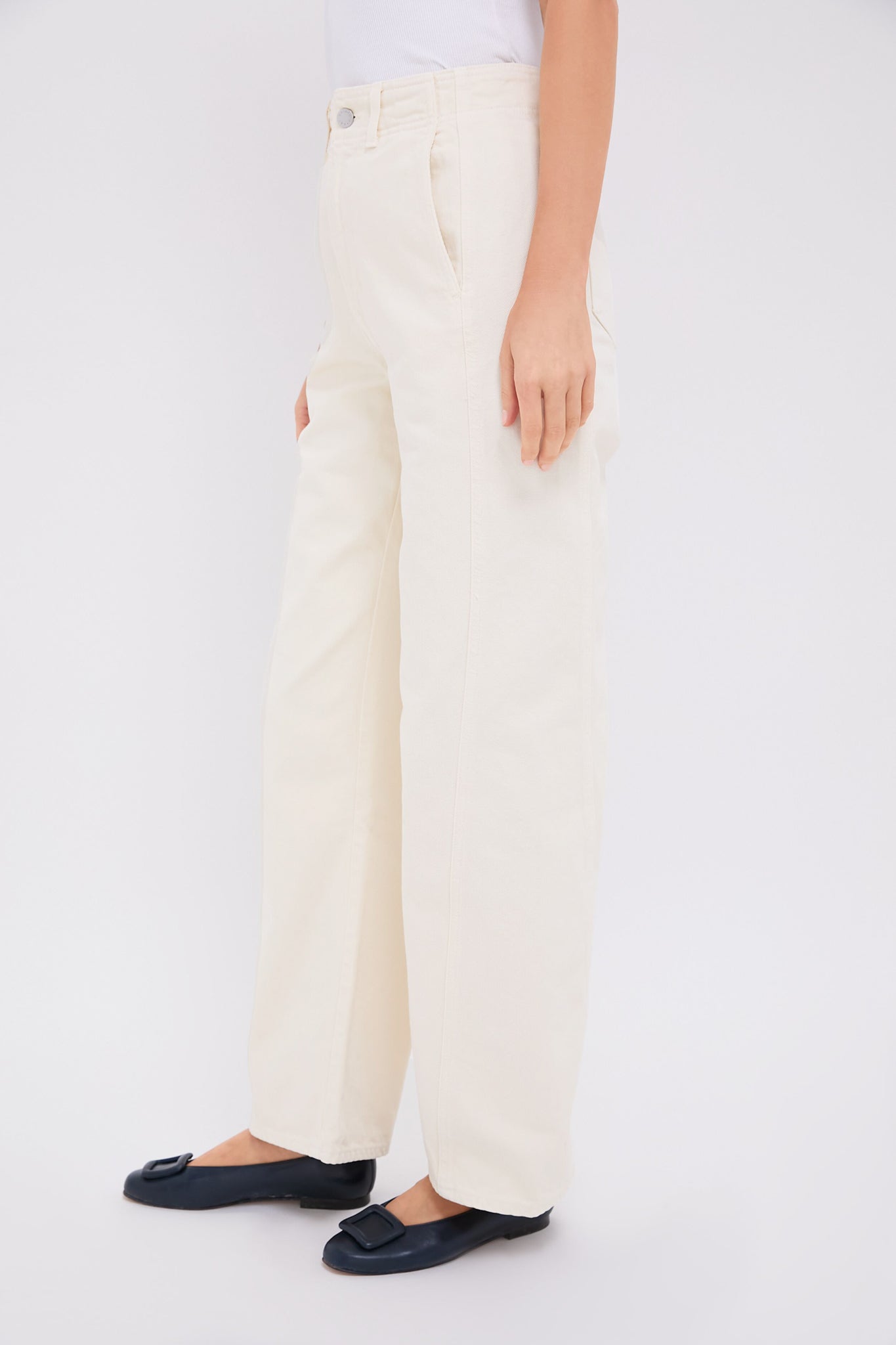 The Ecru Meridian Jean features a high waist, relaxed fit and panel and waist notch detailing. This ultra flattering pant is perfect for everyday wear or dressier occasions! We recommend styling with a sweater, flats, and handbag!