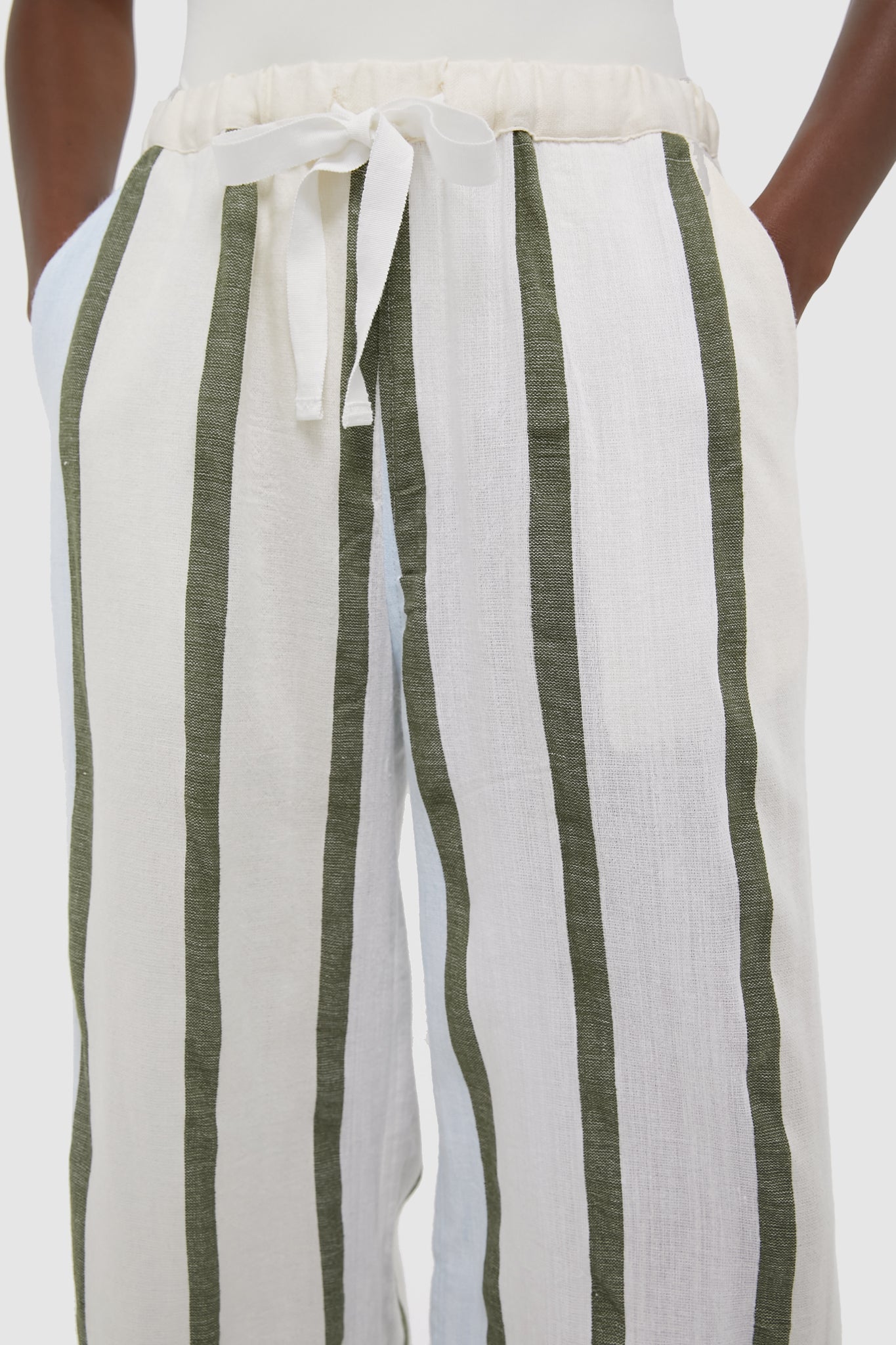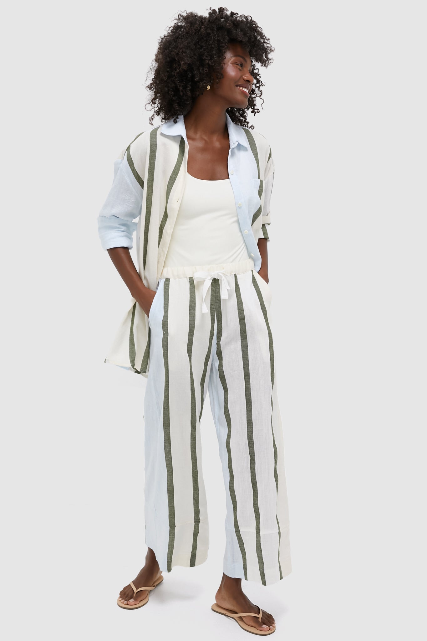 The Desta pants feature a wide, flattering leg and an elastic waistband for a comfortable, relaxed fit. Front and back patch pockets for a functional, laid-back vibe. The elastic waist offers a comfortable and secured fit. Wear over a bathing suit for easy beach-to-bar style or pair with the coordinating Entono Sage Mariam Shirt Dress, ballets flats, and a clutch for a chic resort look!