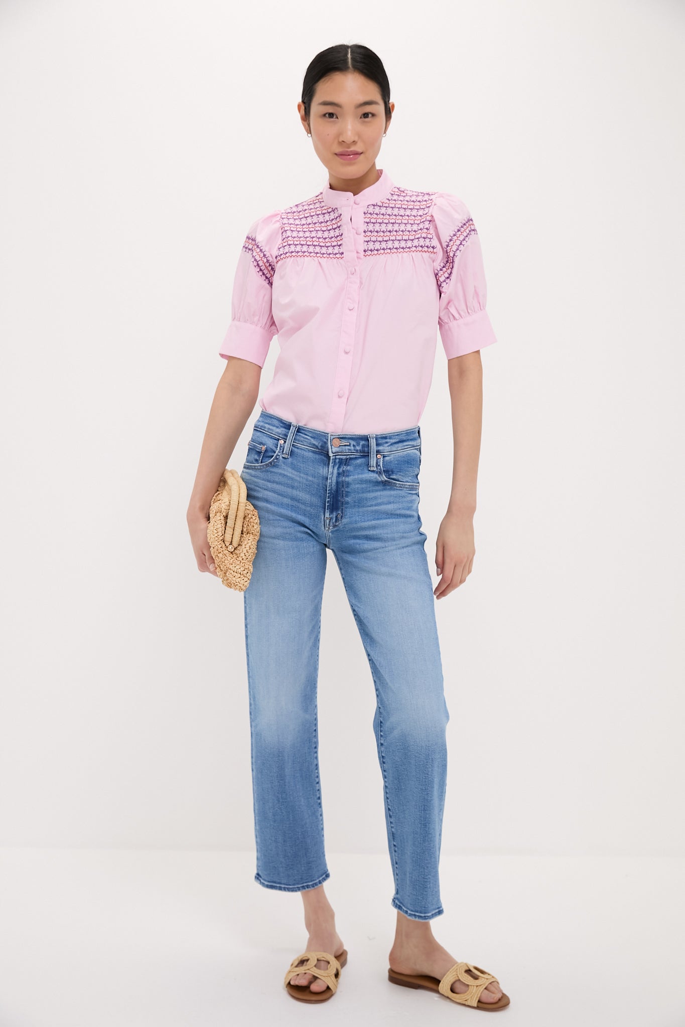 A fan-favorite, the Fondant Pink Saylor Shirt features feminine details like a colorful embroidered yoke and covered buttons down the placket, making it the sweetest top you'll wear all season. The versatility of this darling blouse is our favorite part though, it can be tucked in or left loose due to its longer hemline — so style it with your favorite denim and you're ready for anything!