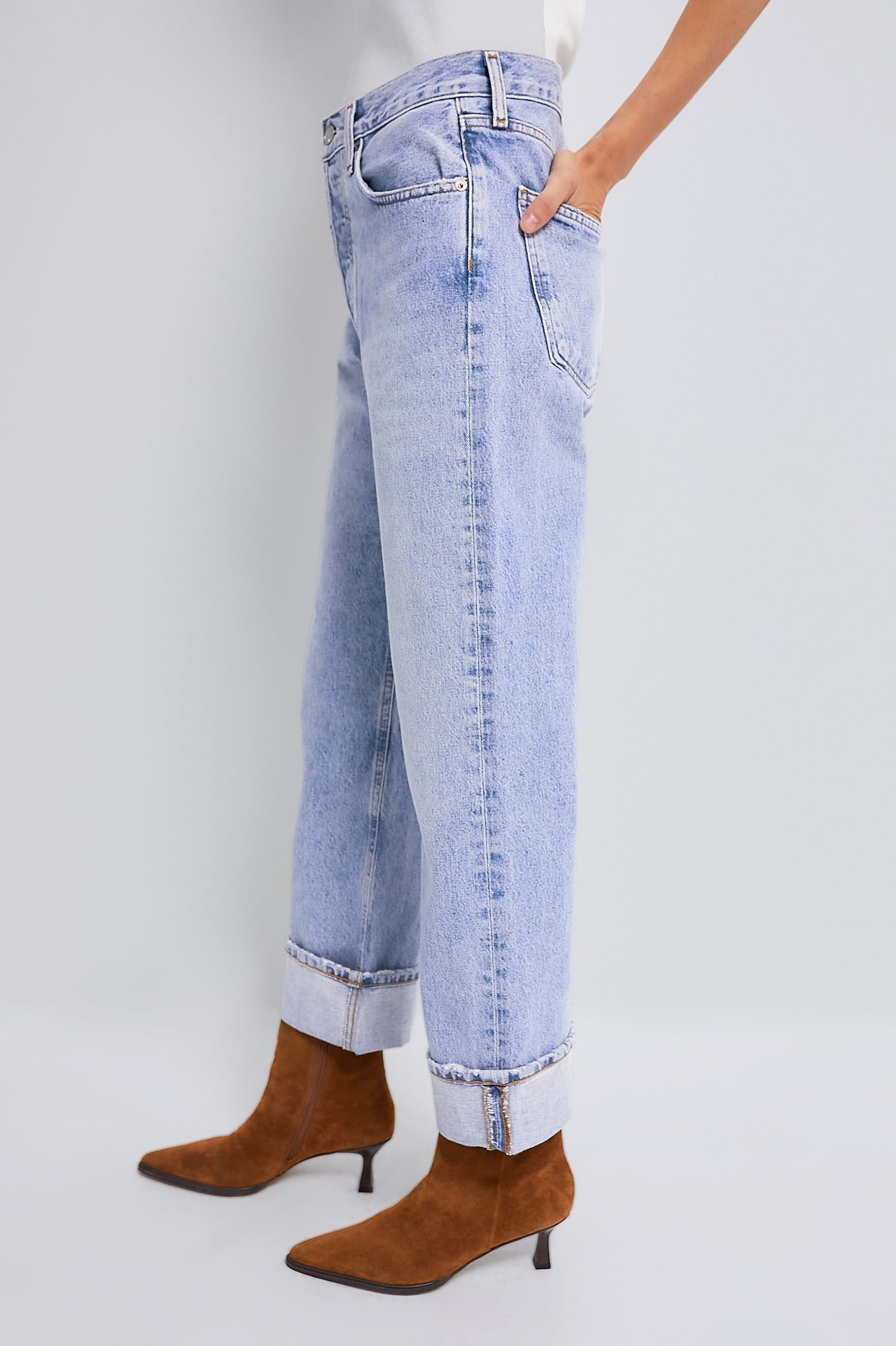 Say hello to the pants that we are styling over and over again- the Force Fran Cuffed Jean. An on-trend low-slung design, it features an easy cut through the hips, a relaxed leg that's finished with an untacked folded cuff. Made to last, they will only get softer with each wear while keeping their vintage appeal. Style with a sleek button down, statement earrings, and pumps for an effortlessly cool office look, or pair with a graphic tee, crisp white sneakers, and a ball cap for the big game!