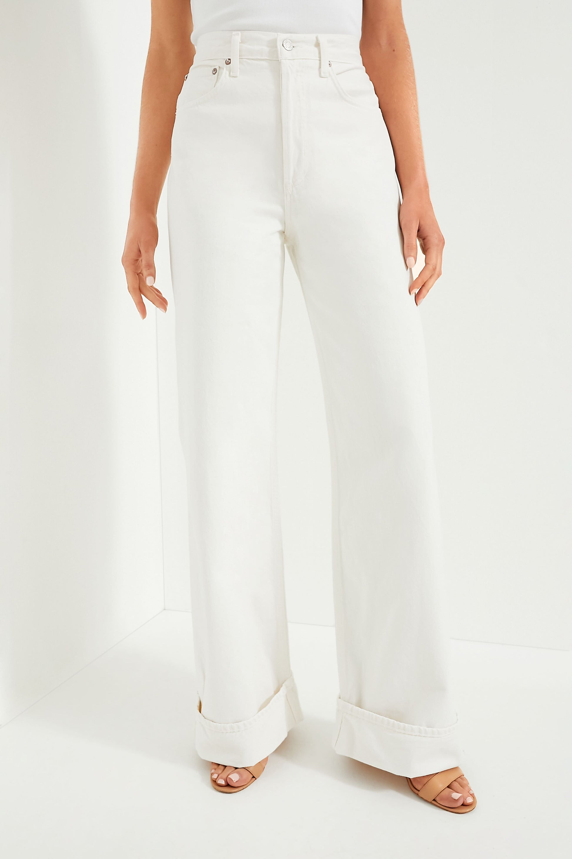 Made with zero-stretch organic cotton with a subtle drape, the Fortune Cookie Dame Jean ensures all day comfort and wearability. These classic bottoms feature a waist-accentuating high-rise, a relaxed, wide leg, and an untacked cuff. We are styling these jeans with sneakers and a graphic tee for an urban look, or pair with a bodysuit, loafers, and a blazer for a chic polished ensemble.