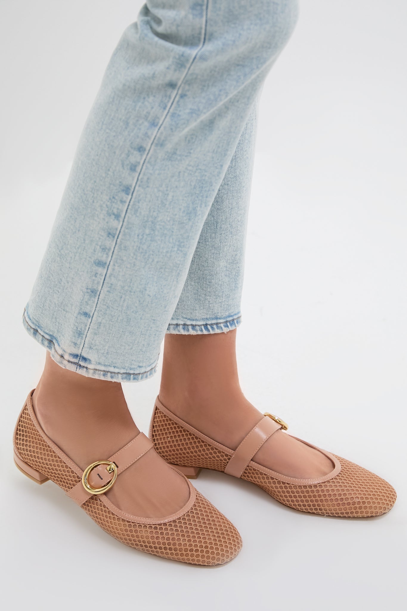 The Ginger Arabella Mary Janes are crafted by artisans in Spain from a lightweight mesh material featuring coordinating leather accents. This new iteration of the classic Mary Jane is finished with a vamp strap detailed with a rounded buckle accent. Neutral, classic, and comfortable, we are pairing these with everything this warm-weather season from denim to sun dresses.