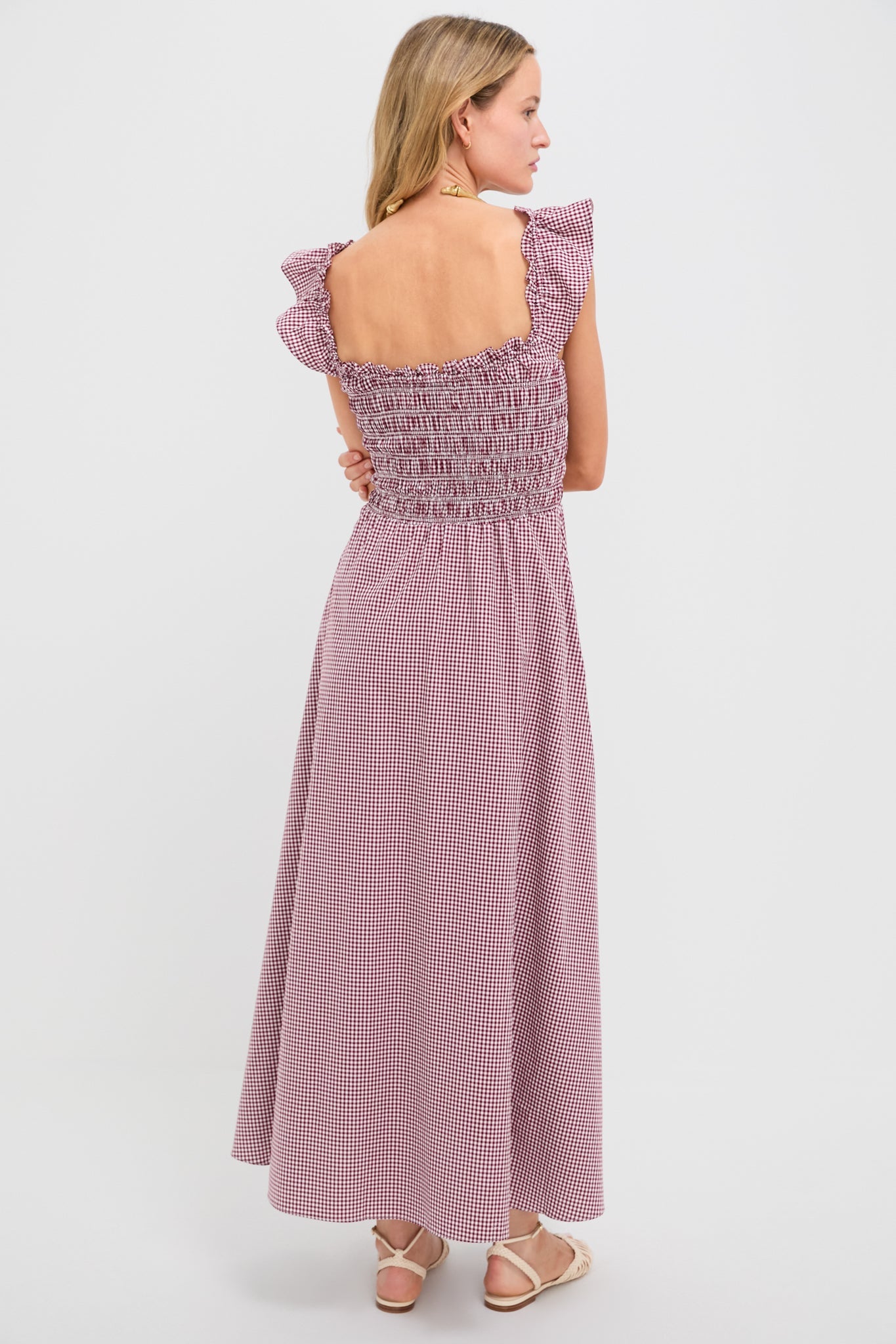 The Gingham Deep Red Eudora Midi Dress is a warm weather staple. Featuring a smocked bodice, flutter sleeve, and A-line skirt. Ideal for everyday dressing, or springtime occasions, we styled this dress with sandals, a bag, and colorful earrings!