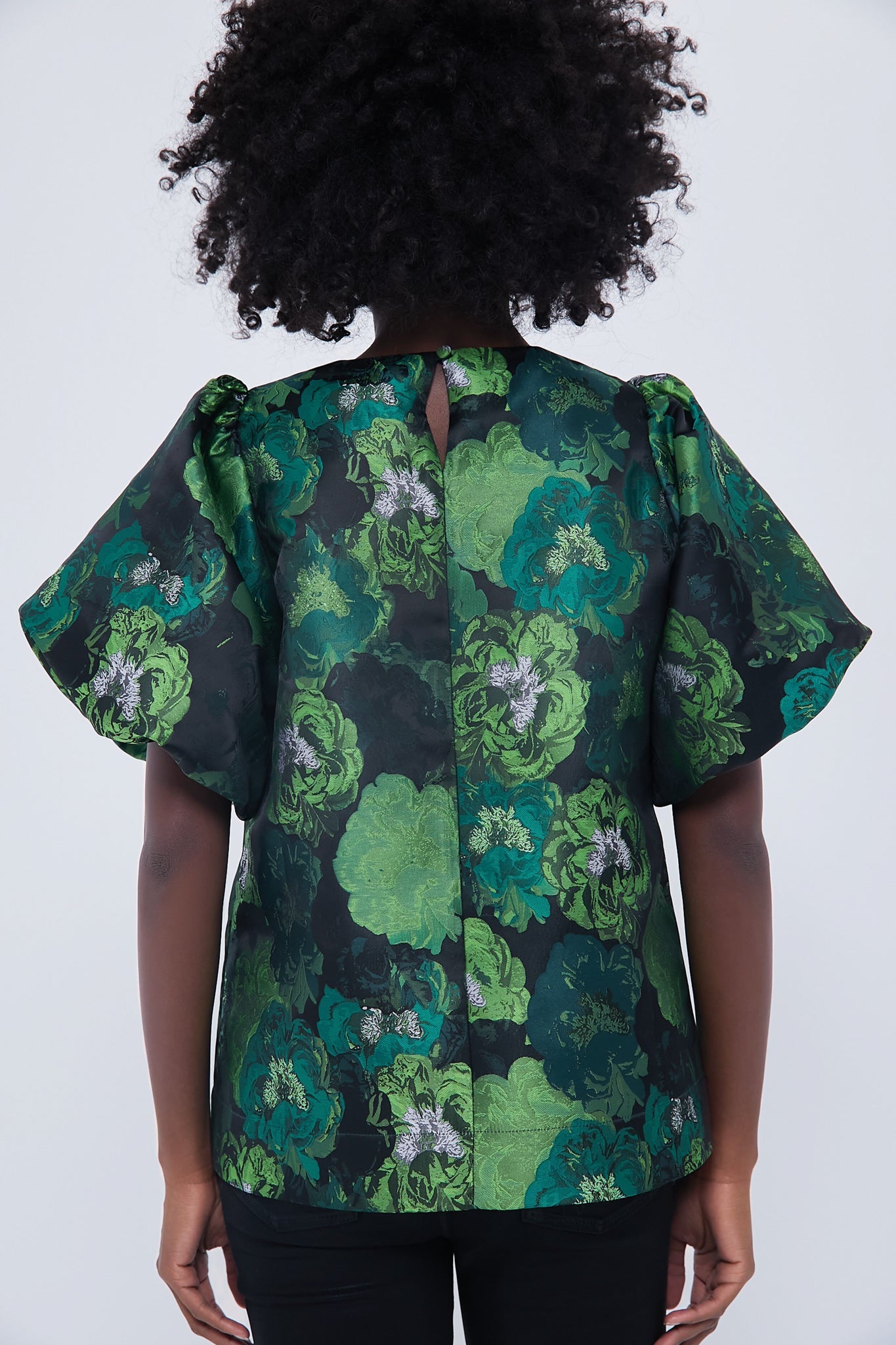 A classic silhouette with scaled-up details, the Green Jacquard Lyla Blouse is oh-so-chic. Designed with bubble sleeves for volume and a textured jacquard fabric that adds dimension and makes for a polished finish, this top is a guaranteed wardrobe winner. Classic-with-a-twist, just add denim and heels for an effortlessly glamorous party look!