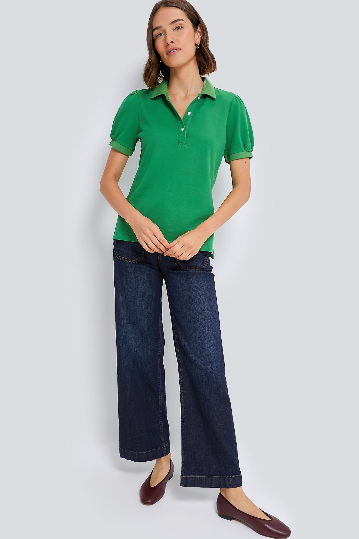 Introducing the Pique Puff Sleeve Peggy Polo- your new closet best friend. We took the same body as our Classic Polo and added a puff sleeve inspired by Tnuck Sport's Caroline Polo that is feminine yet subtle, creating a dainty yet understated appearance. Elevated details such as a thick ribbed collar, front three-button placket, and side notch slits with interior contrast stitching make this a unique closet staple. Pair with a flirty tennis skirt and sneakers, denim shorts and sandals, or a maxi skirt and flats- the options are truly endless.