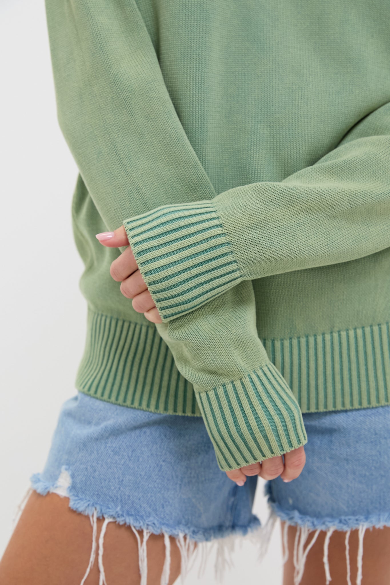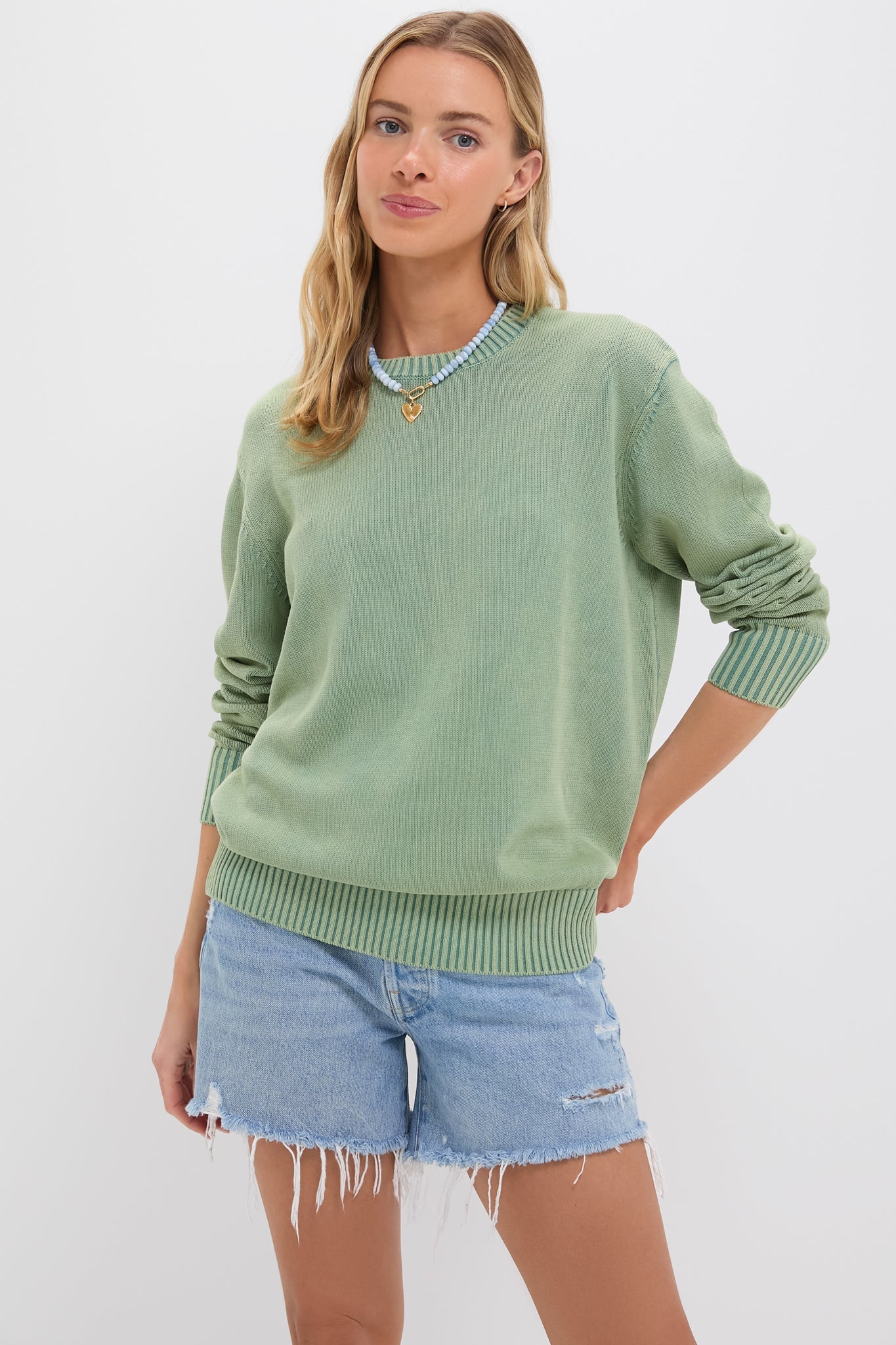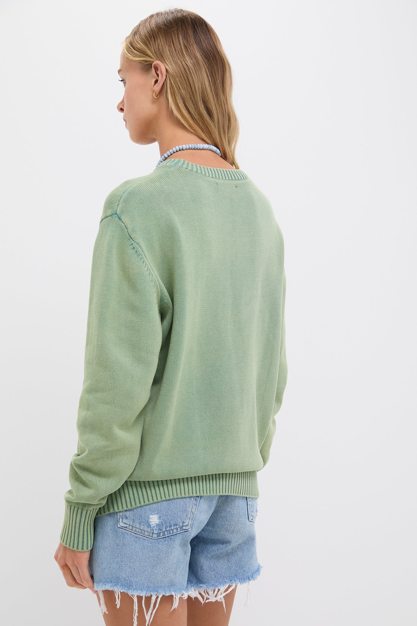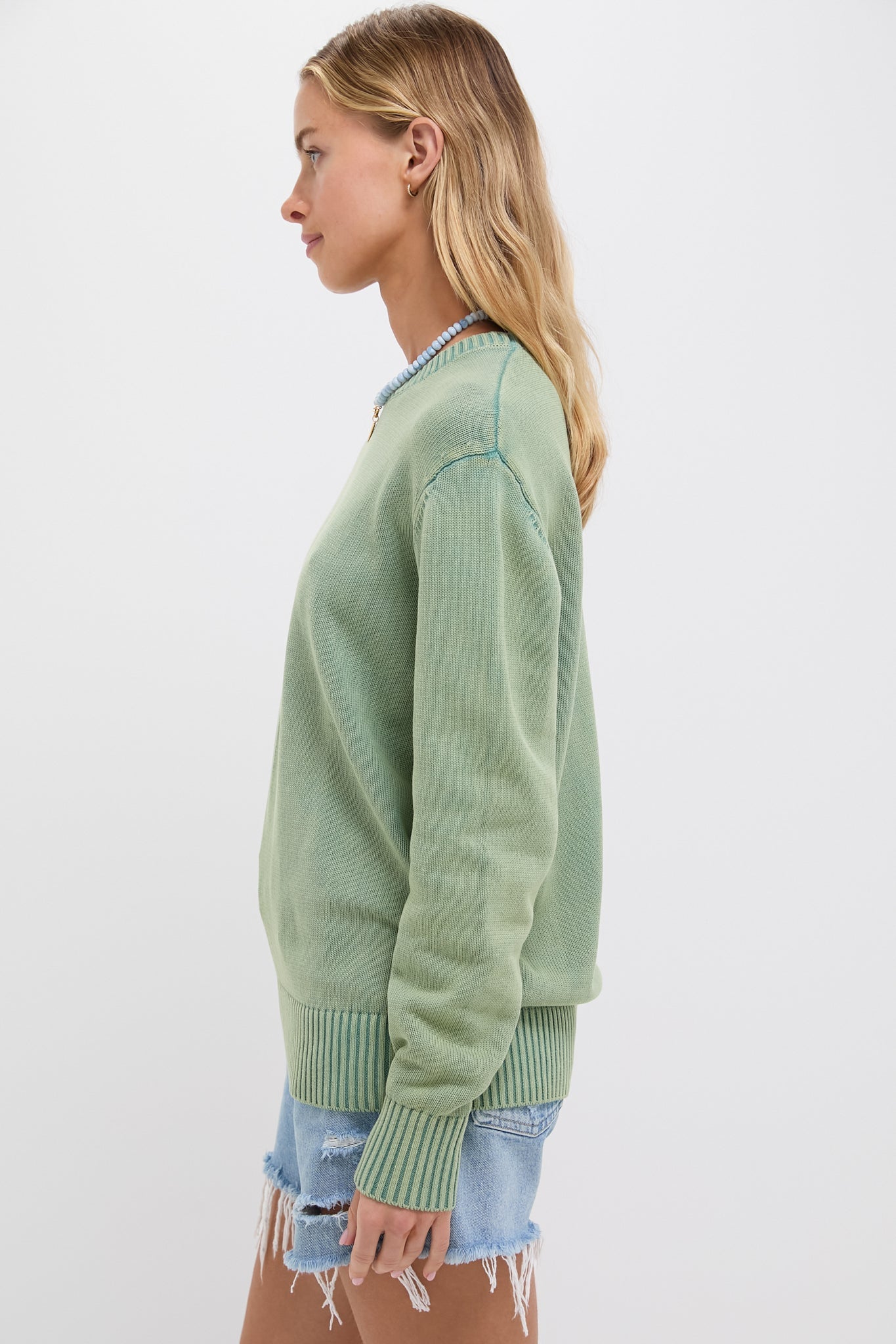 Green Stone Washed Cotton Anne Crewneck Sweater