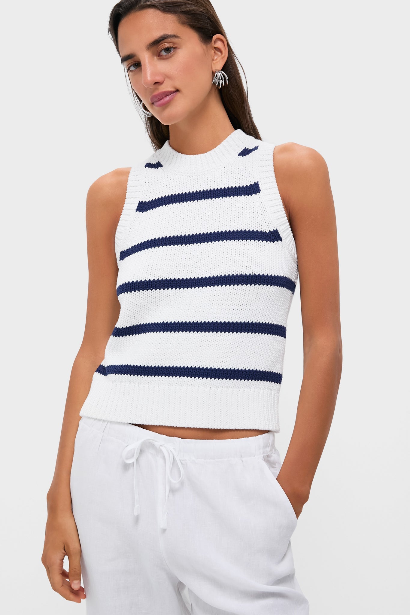 The Hana Stripe Marsh Sweater Tank is breezy, beachy, and totally layer-friendly. With its soft cotton blend and classic stripe pattern, it brings just the right amount of laid-back polish to denim shorts, or white linen pants. Wear it solo or under a blazer when the sun dips.