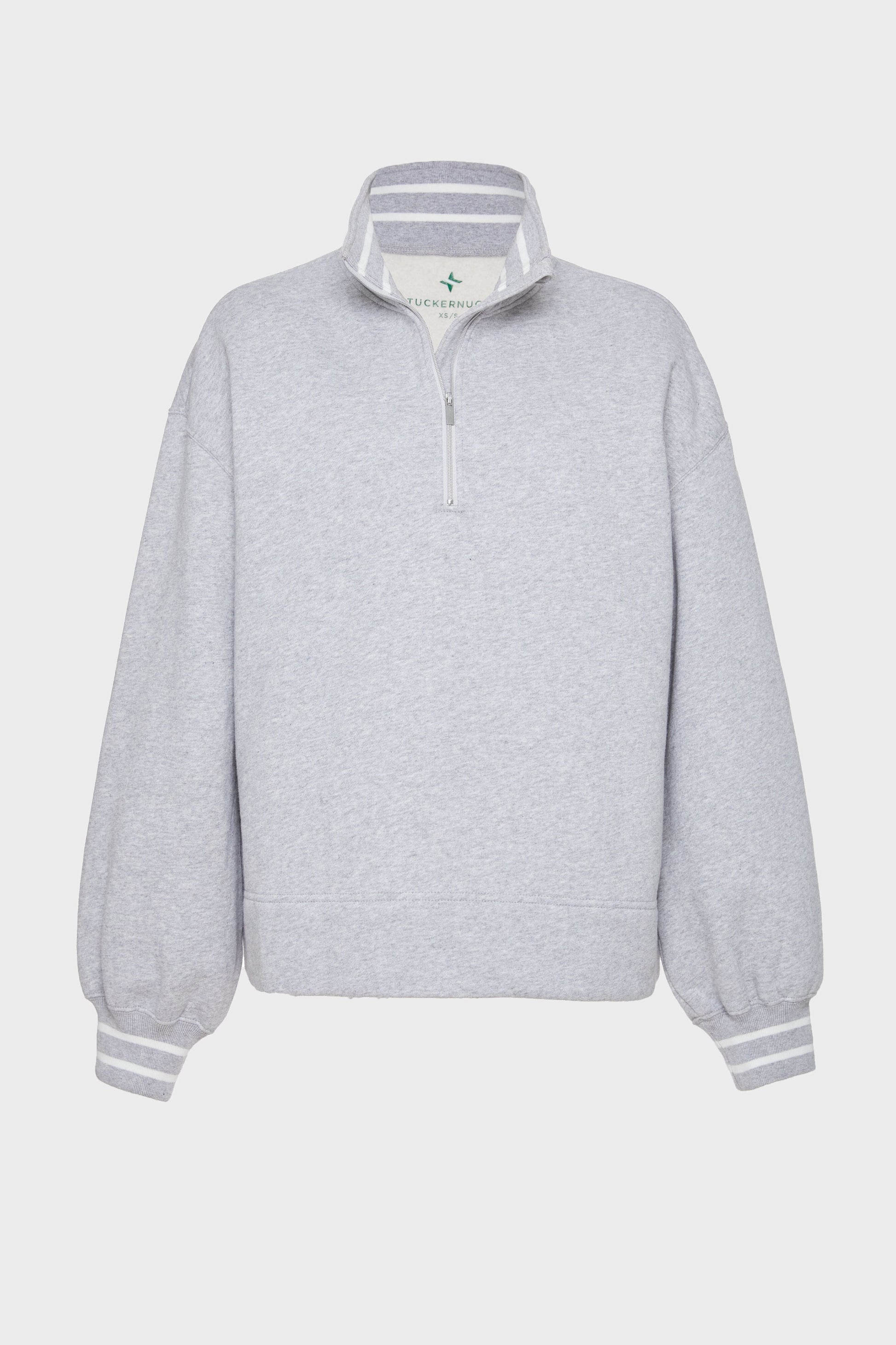 Add the Heathered Gray Carlson Quarter Zip to the cart! The lantern sleeves, stripe detail, and rib trim add a fun and feminine flare to your comfy-casual look. Pair with some leggings to head to yoga or with some jean shorts for a late night snack run.