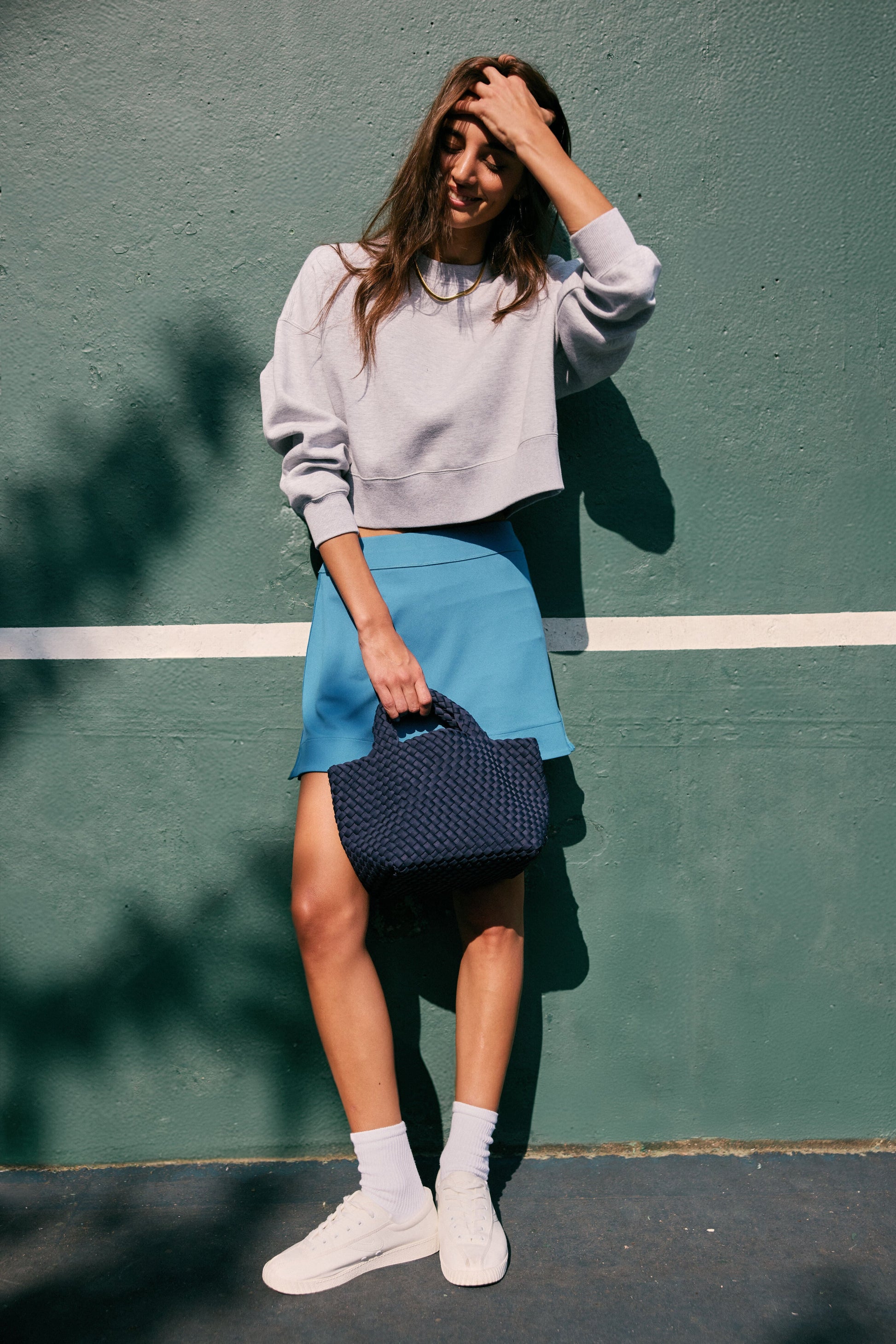 We took your dad's sweatshirt that you know and love and cropped it for a stylish cool-girl look. Perfect for busy weekends, casual wine nights, or warming up in the studio, this flattering silhouette boasts drop shoulders and ribbed trim.