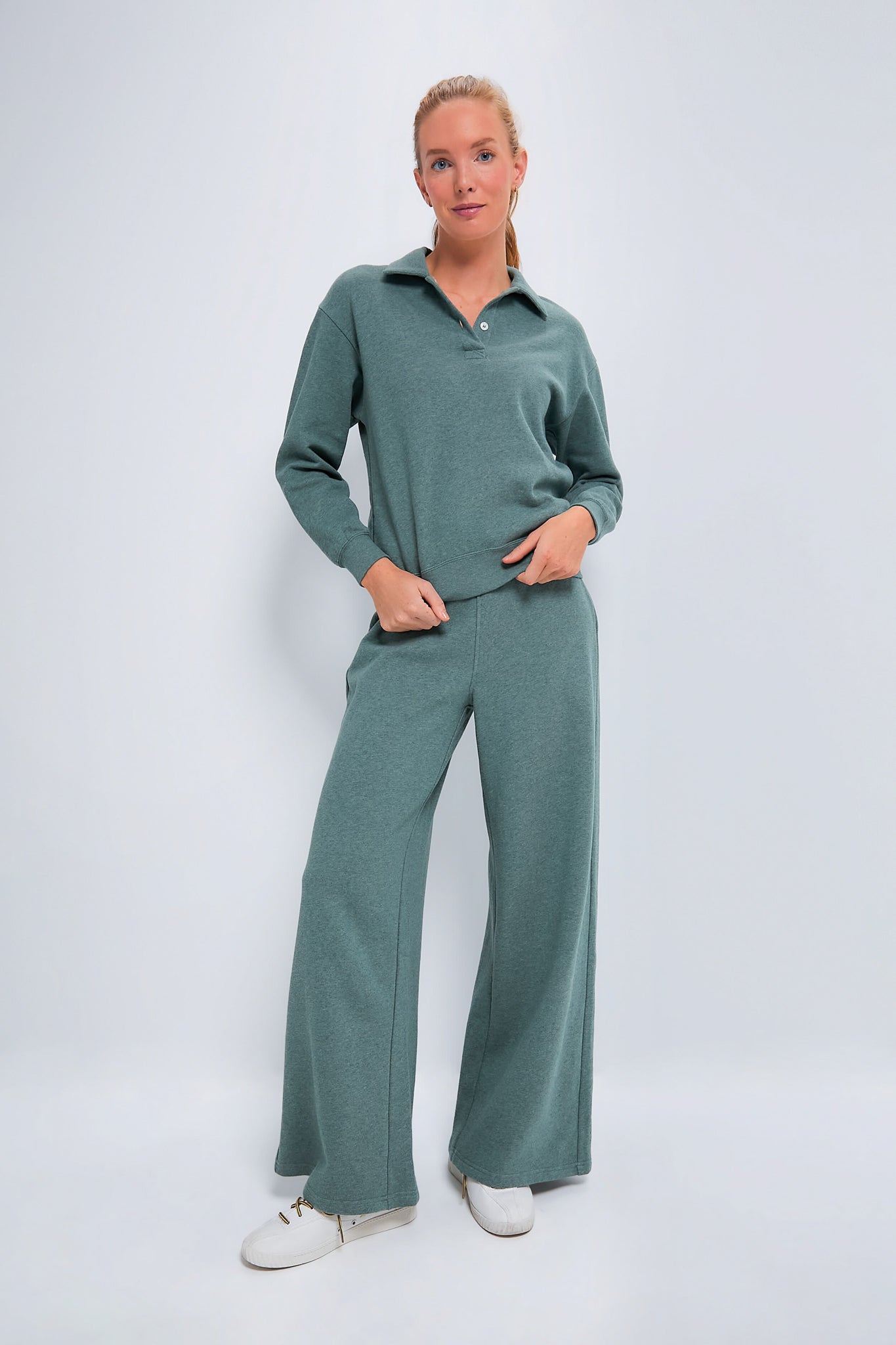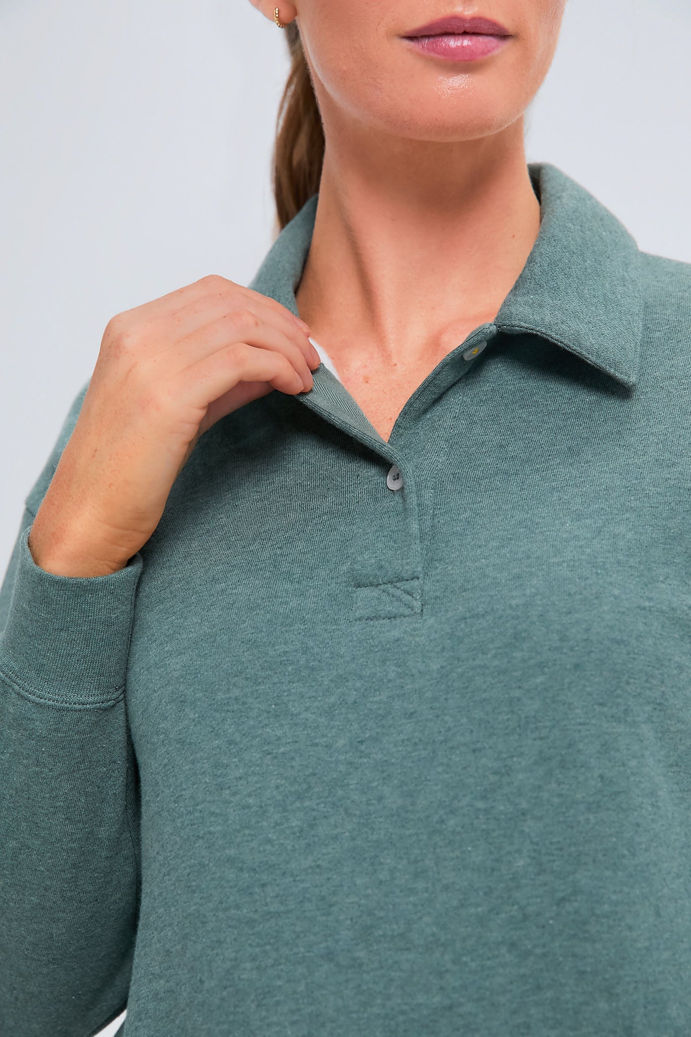 The Perry Pullover takes your favorite cozy sweatshirt and upgrades it by adding a front button closure, collared neckline, and dropped shoulders. We are styling it with denim and sneakers for grabbing coffee with friends, or with the matching Heathered Green Wide Leg Finn Sweatpants for a comfy set!