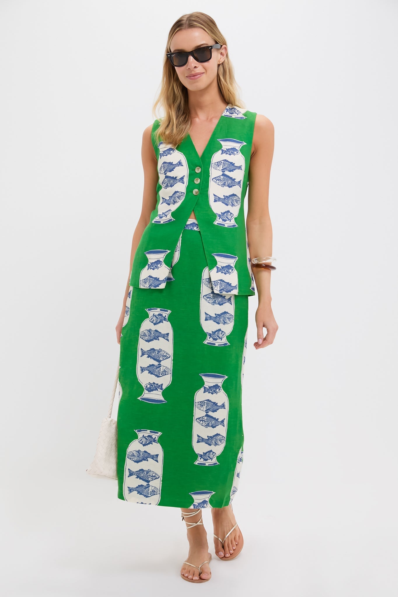 The Isla Skirt is fitted beautifully at the waist with a straight cut that strikes the perfect balance of tailored structure and feminine flair. Crafted in a linen-blend Herring Green print, it’s the kind of piece that elevates any outfit with minimal effort. Pair it with the matching Lachlyn Vest for a seamless, sophisticated look, or wear it on its own for a laid-back, elevated vibe.