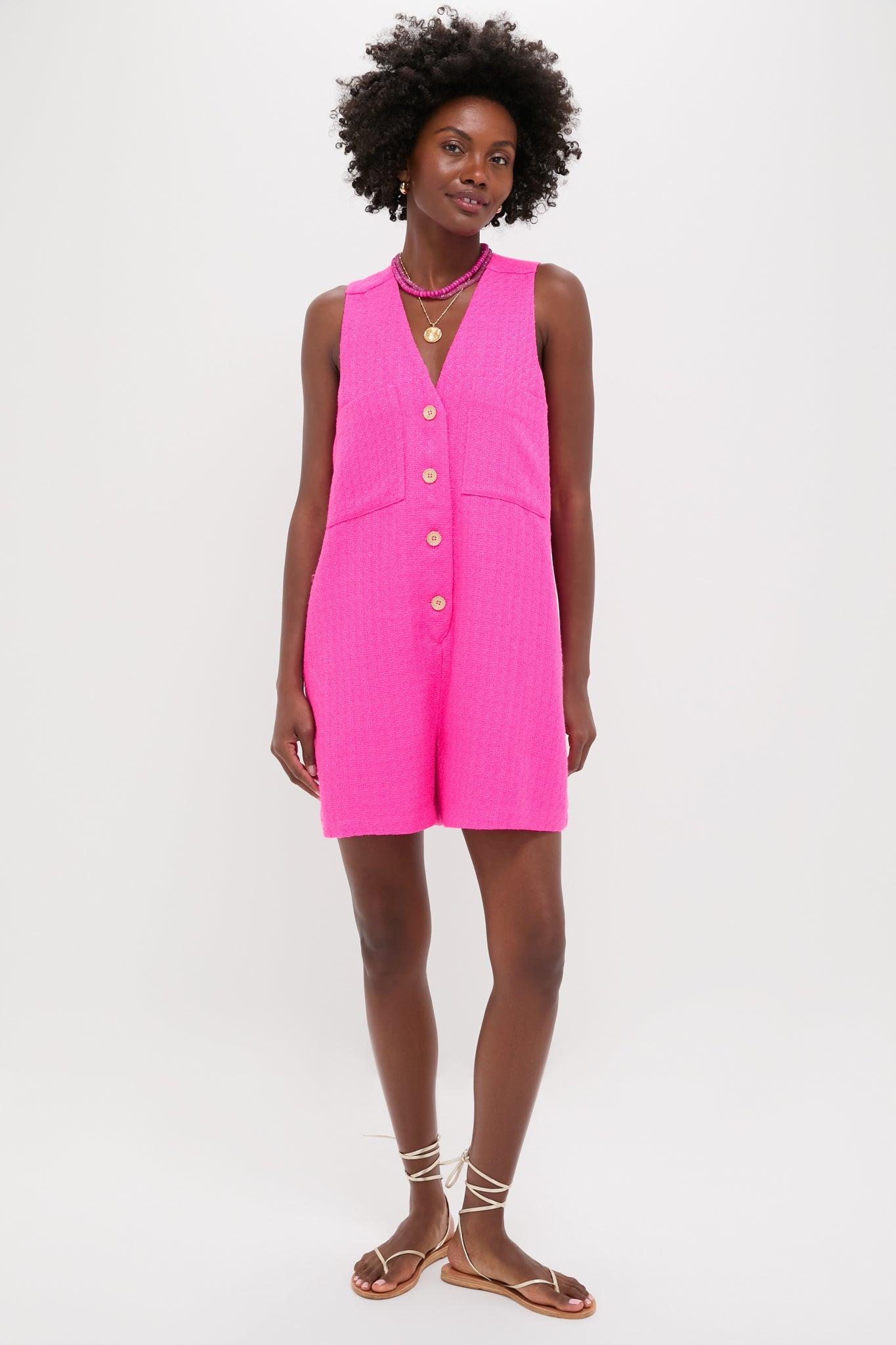Effortlessly chic, this one-piece is perfect for anything and everything! From brunches and get togethers to happy hours and vacations, this easy yet elevated style has you covered. The Hot Pink Myla Romper features two front pockets at the chest, gold button detailing for some extra shine, and a textured fabric to create cool contrast. Pair with glitzy flats and bold accessories for glamorous dinners on your next getaway!