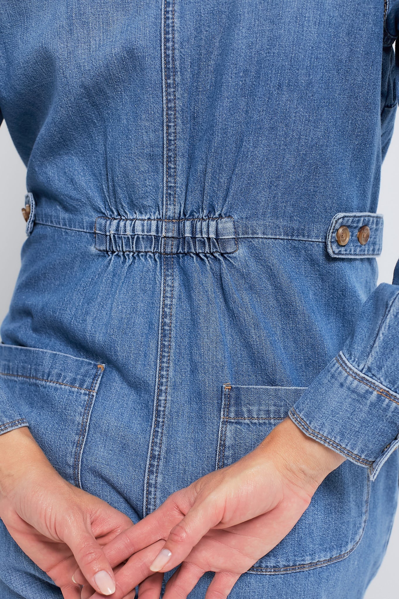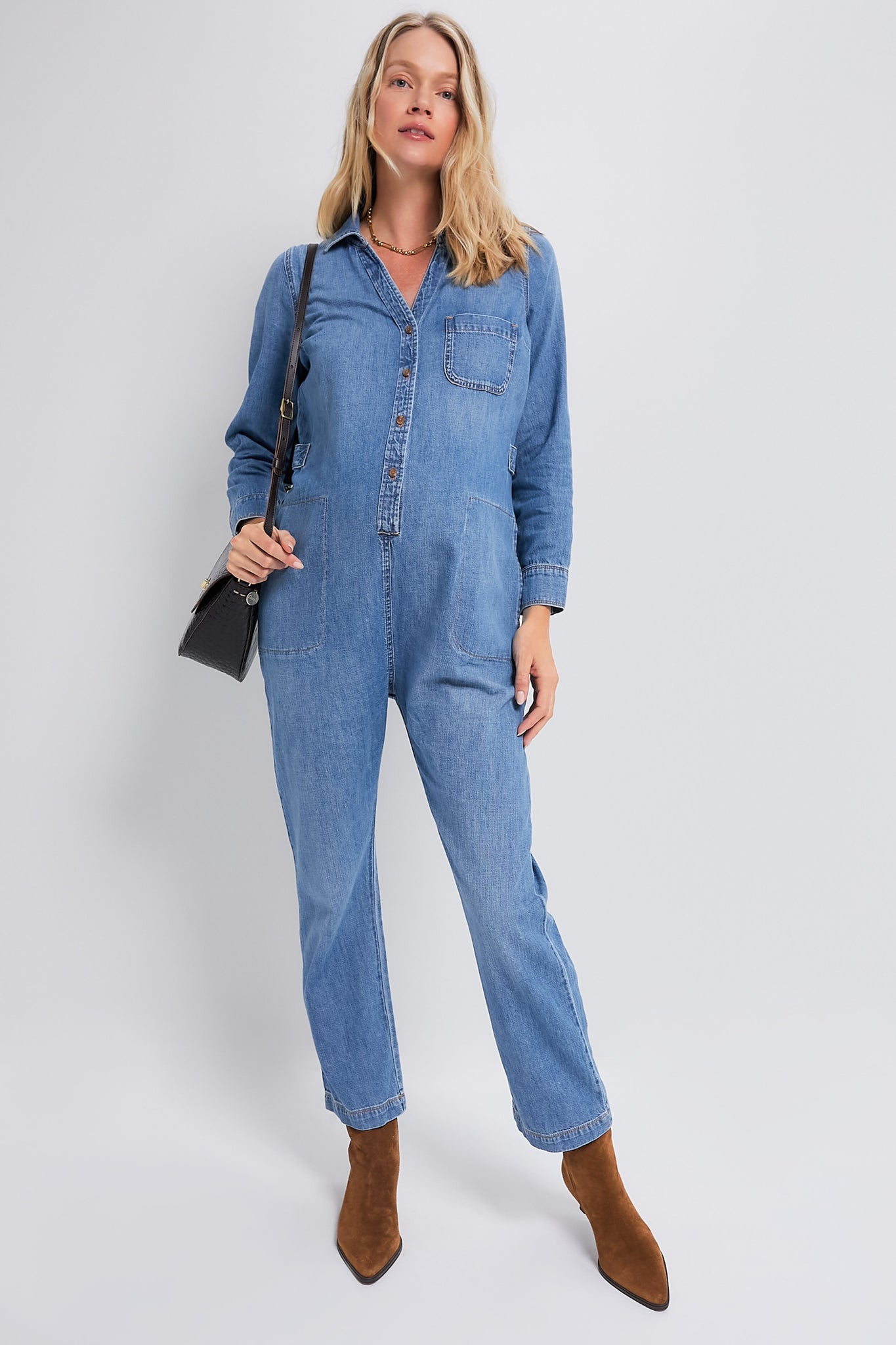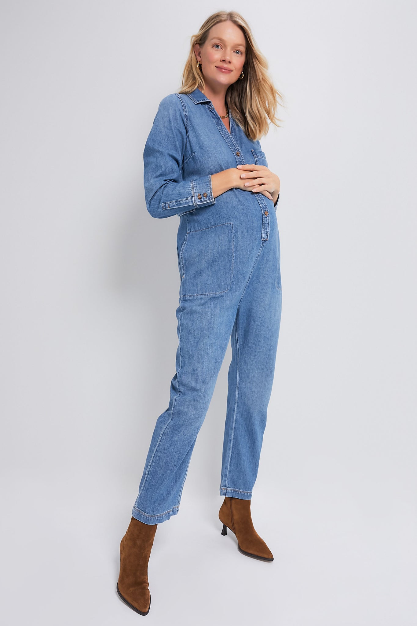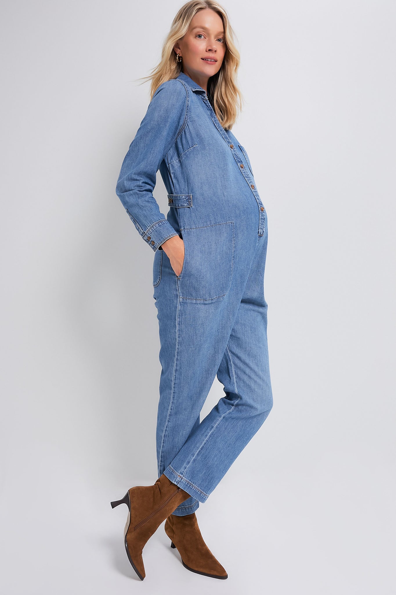 Crafted from ultra soft denim with a relaxed silhouette, the Everyday Denim Jumpsuit is designed with both pregnancy + postpartum functionality. The adjustable side tabs offers a universally-flattering fit, and the button down front was designed for easy, on-the-go nursing.