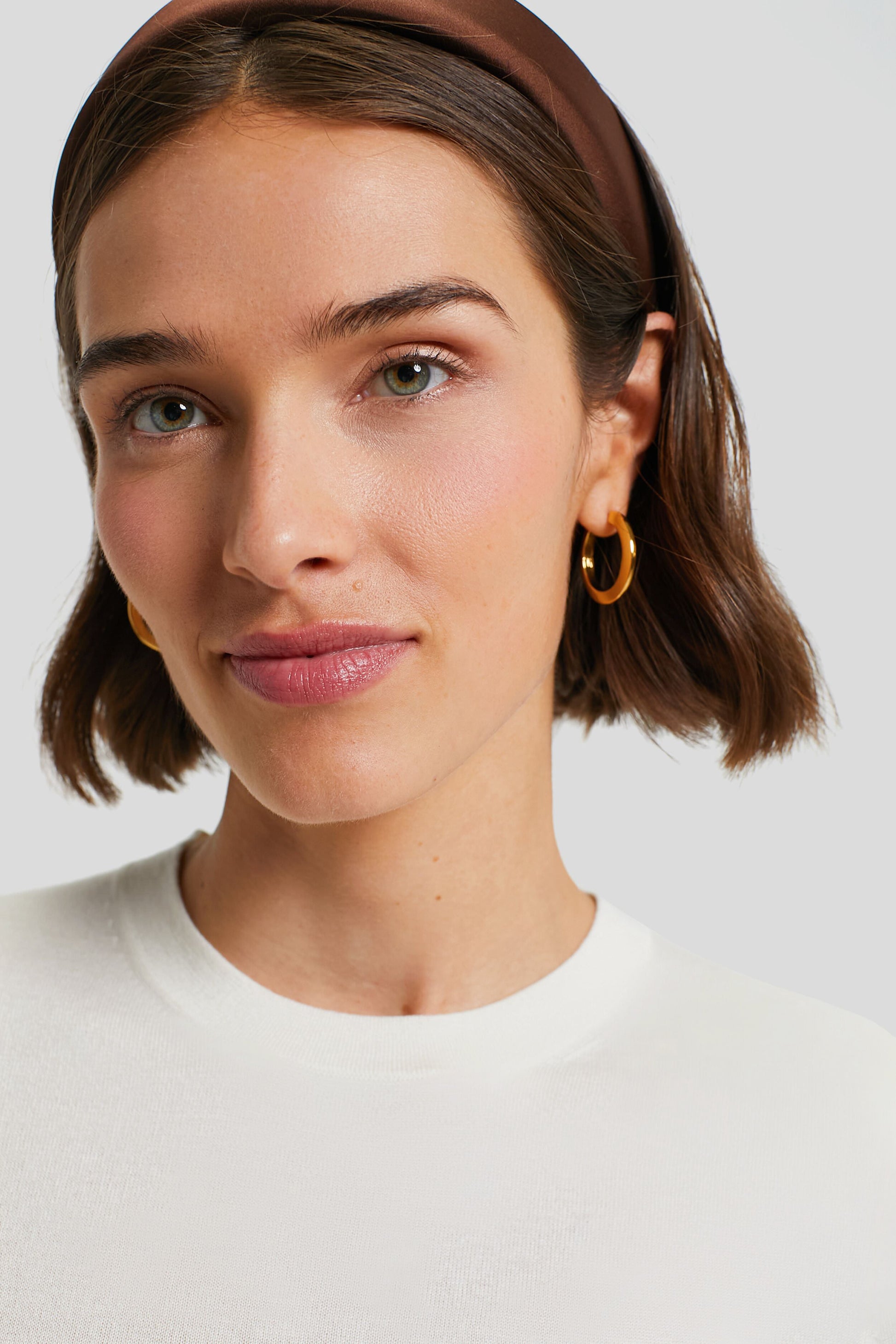 Say hello to your new wardrobe essential, the Ivory Katie Tee. Spun from a luxurious cashmere silk blend, this timeless, crewneck short sleeve t-shirt strikes the perfect balance between a tailored and relaxed silhouette. This chic style is the ultimate year-round, everyday basic. Wear under blazers or cardigans, or by itself with denim or trousers.