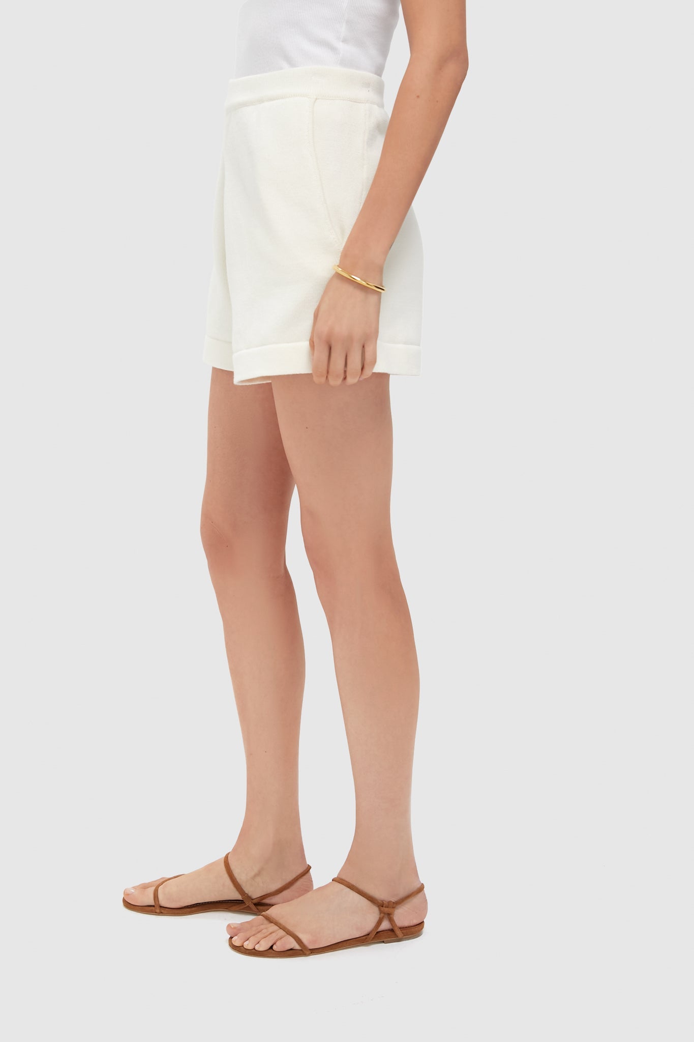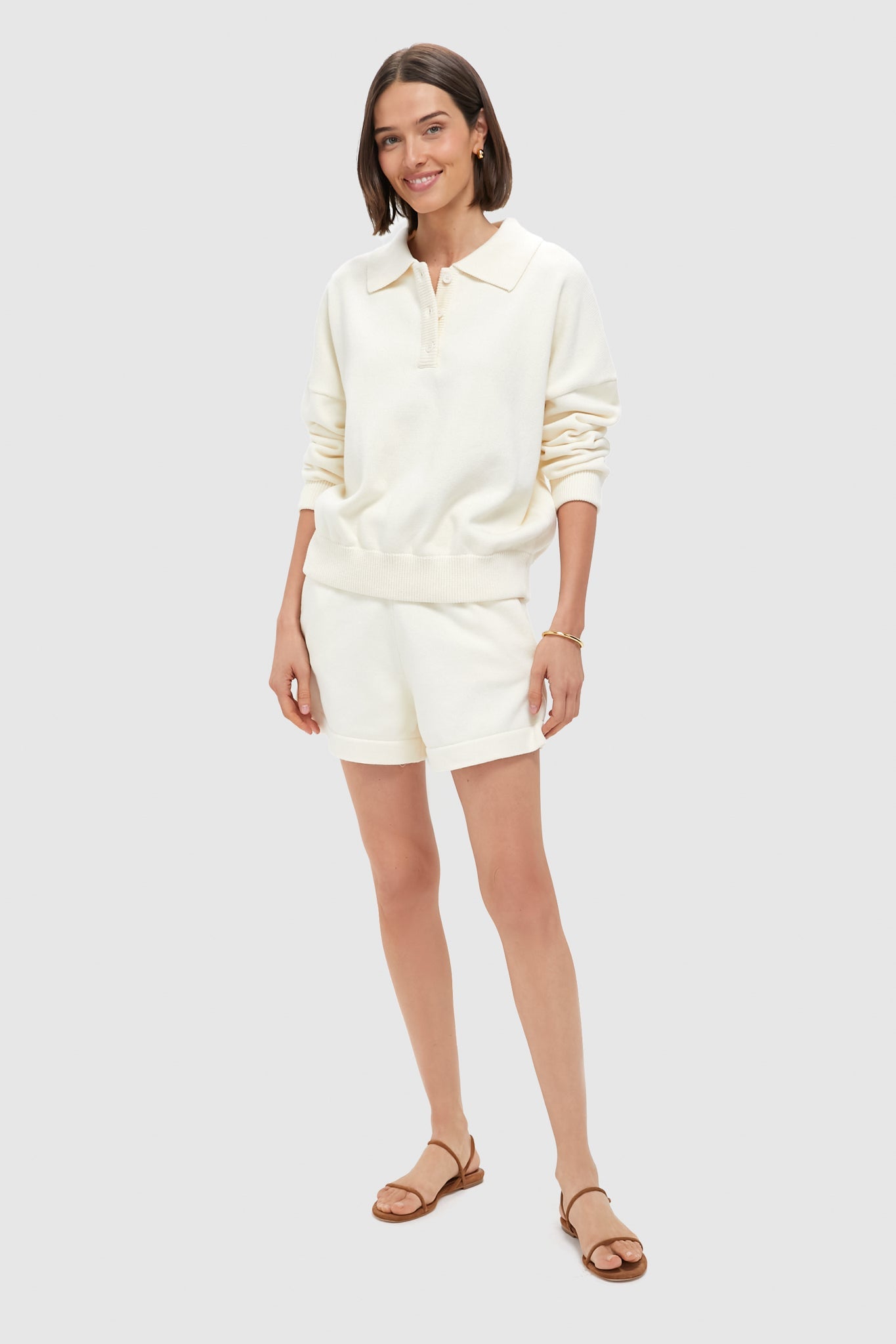 For those mornings where you want to stay comfy, yet stylish, introducing the Ivory Knit Beau Shorts. With an elastic waistband, side seam pockets, and cuffed hem, these shorts are a no-brainer. Pair with the matching Ivory Knit Bode Polo Sweater, sandals or sneakers, and sunnies for an easy, yet polished look.