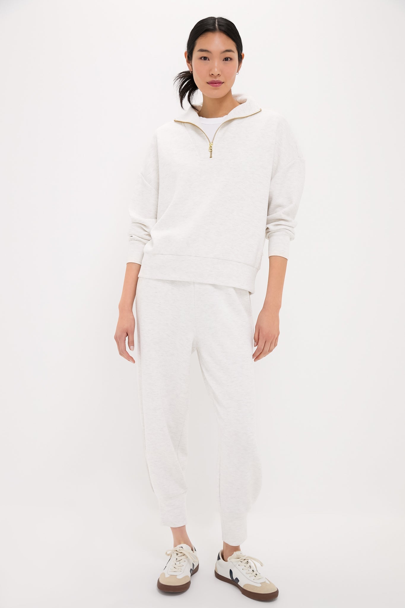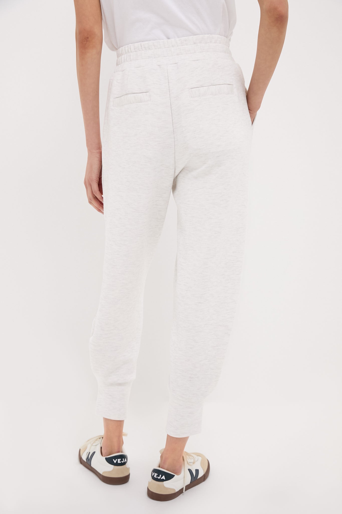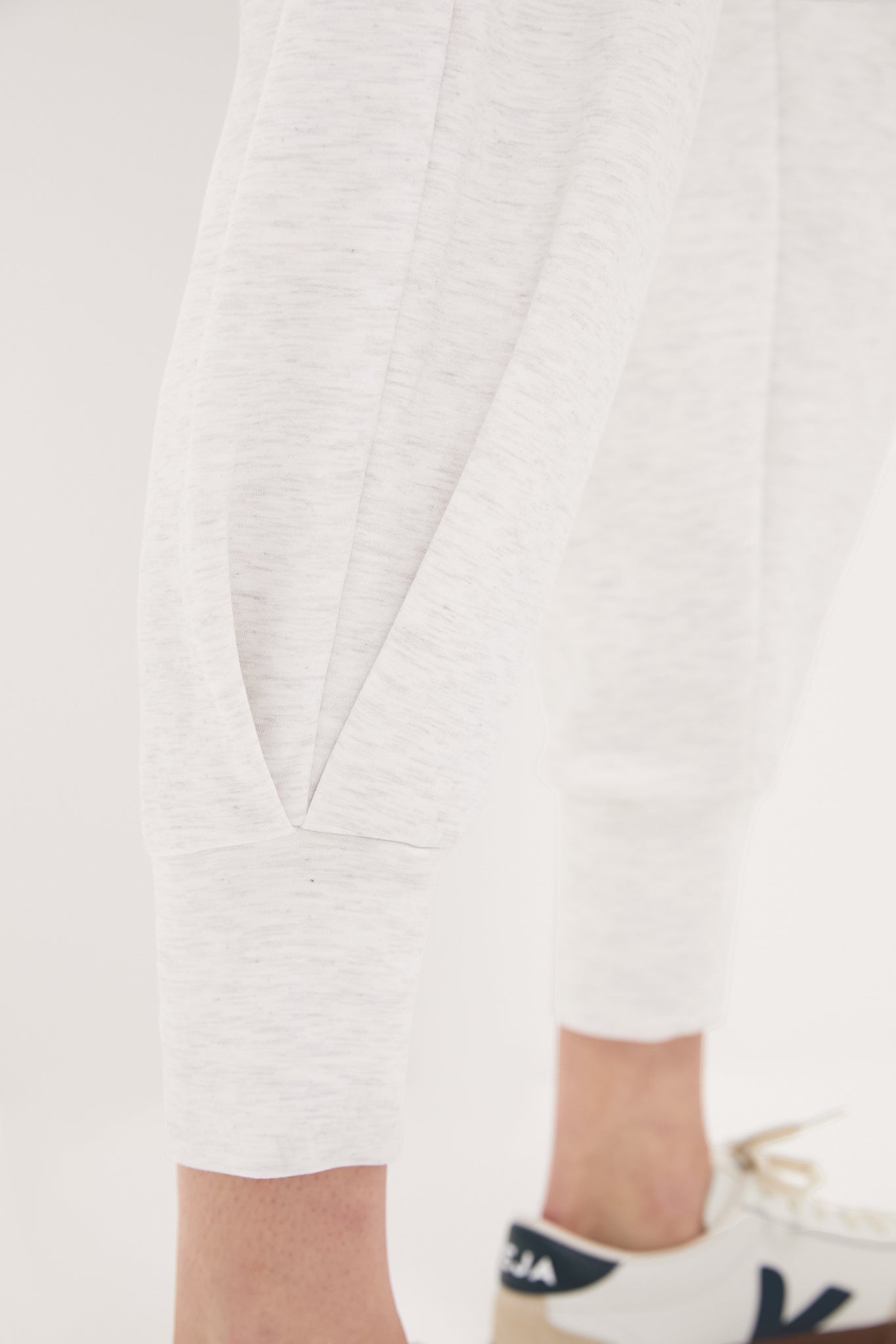 Embrace the perfect blend of style and comfort with this Ivory Marl Relaxed Pant 25. The relaxed fit offers ample room for movement and the elastic waistband provides a secure fit while allowing for easy on-and-off. Whether you’re lounging at home, running errands, or meeting friends for coffee, these pants are your go-to choice. Pair them with a soft turtleneck for a polished look, or throw on your favorite tee for a laid-back style.