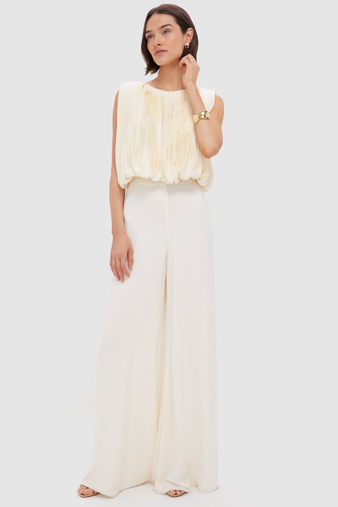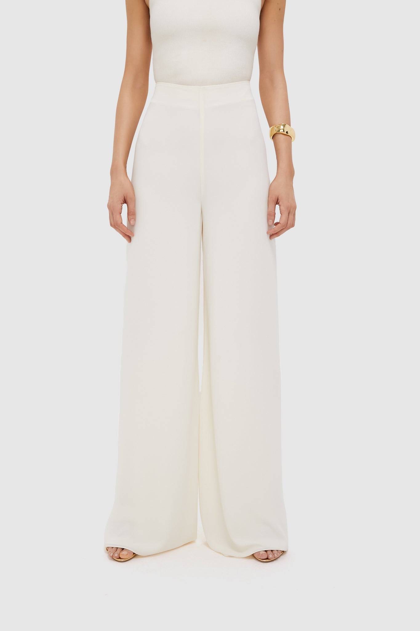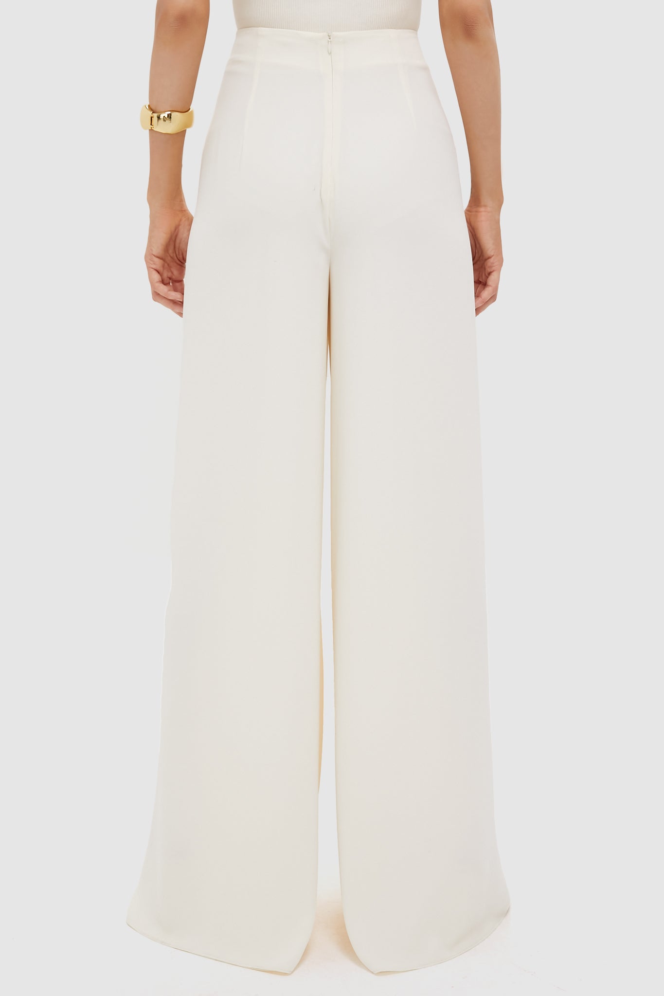 The Ivory Verio Pants are your go-to for looking polished without even trying. Made from fluid crepe with a relaxed, flowy fit, they move with you—whether you’re owning the office or strolling through a weekend brunch. Pair them with a matching Dorett Blouse for a monochrome moment or a cropped tee for laid-back luxury.