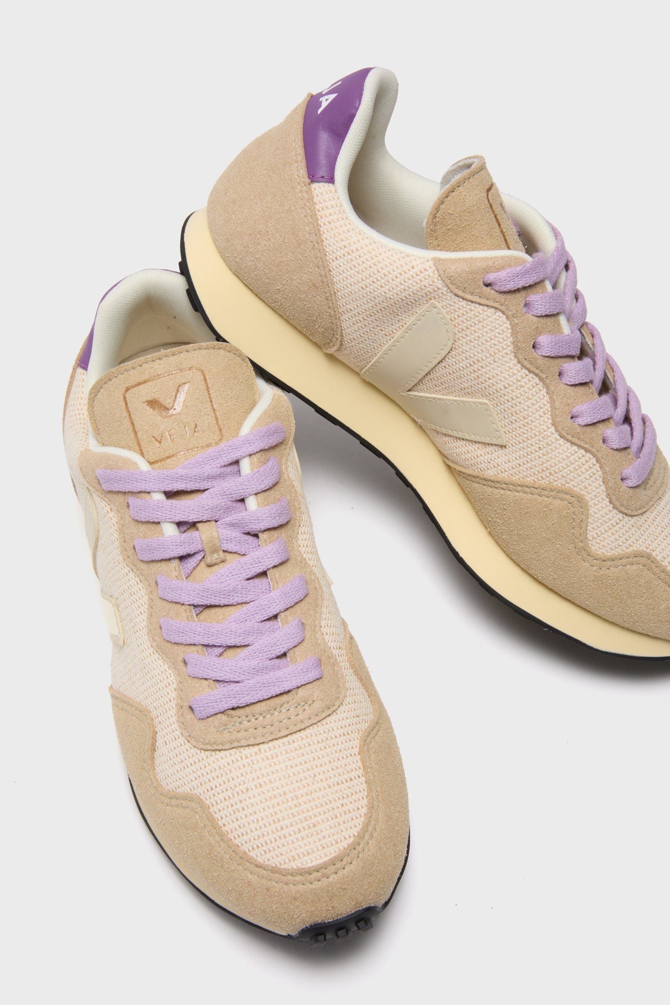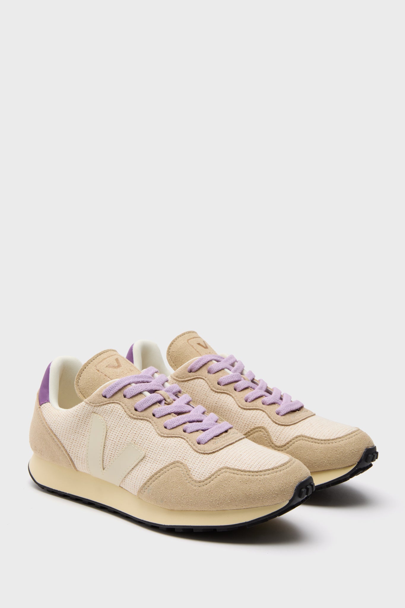 These playful everyday shoes are neutral with a fun twist. Featuring a suede and jute mesh upper with purple laces, these are ideal for pairing with casual sets or denim and tees!
