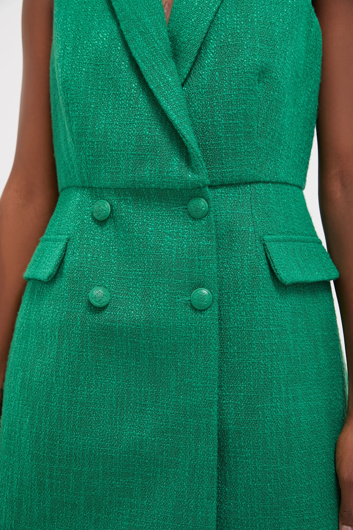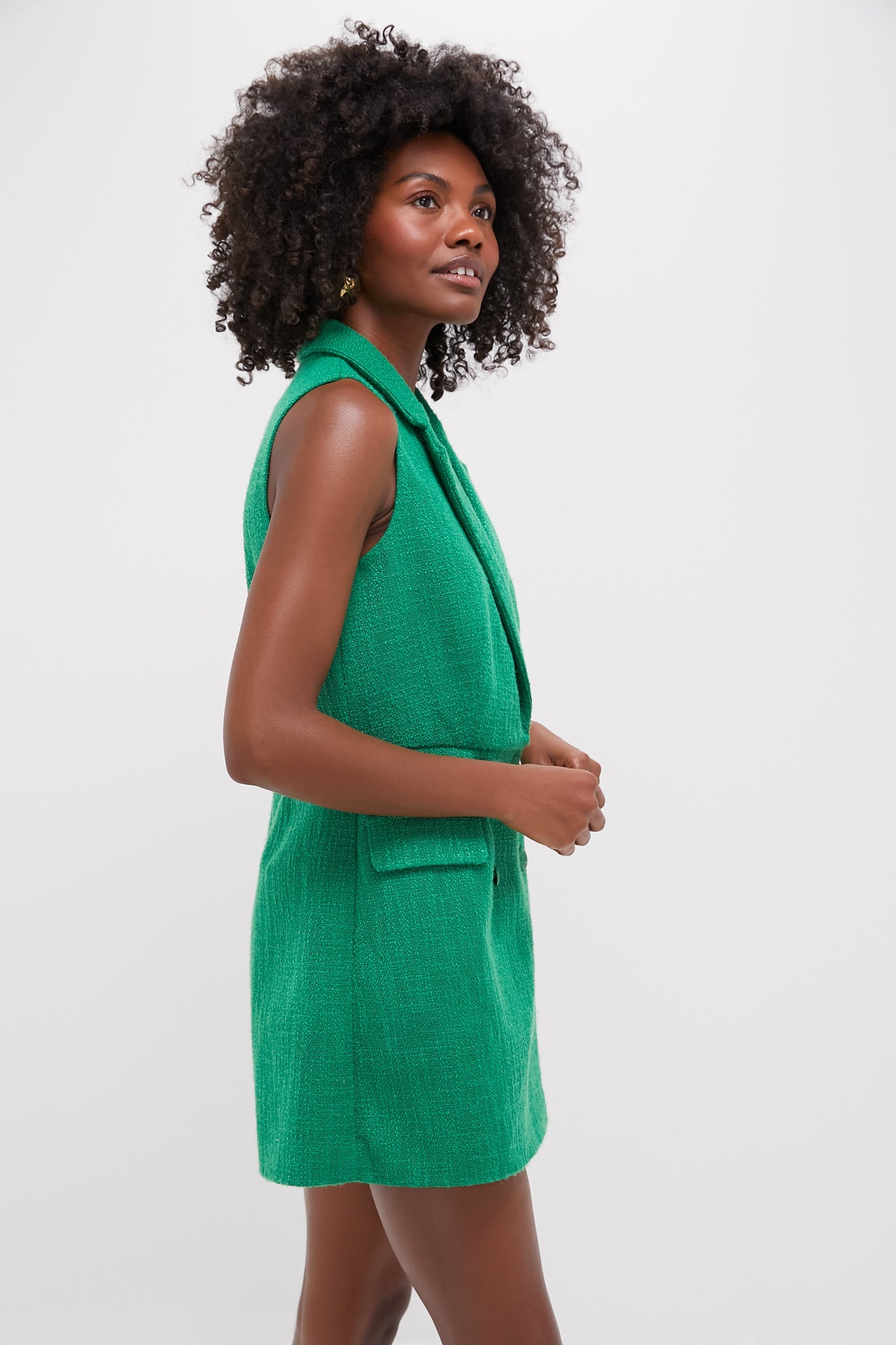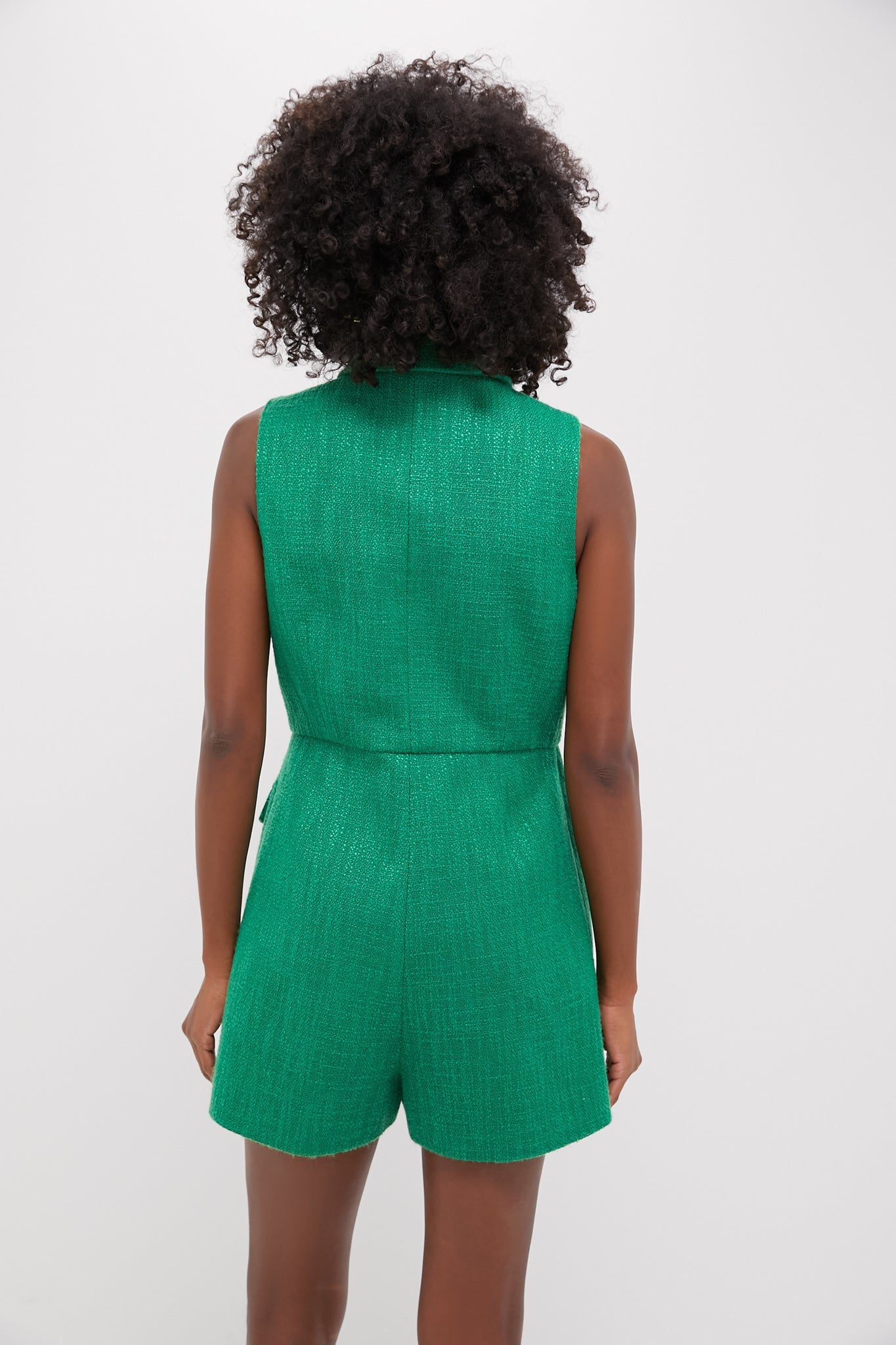 We are obsessing over the Kelly Green Tweed Campbell Romper, the ideal desk to drinks warm-weather style! This sophisticated silhouette features a classic, yet modern construction, with a notch collar, front flap pockets, and double front buttons. Pair with loafers for the office, and switch into strappy flats for happy hour!