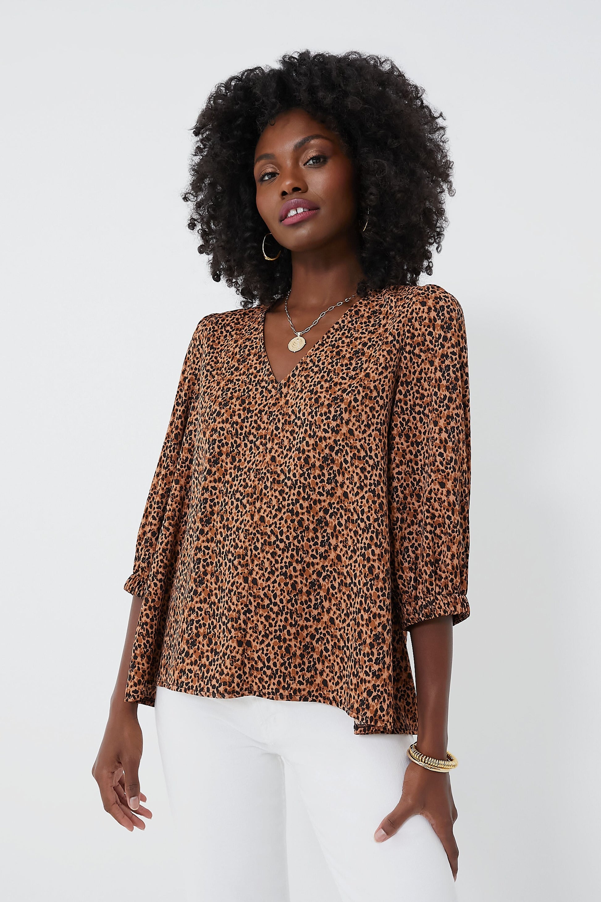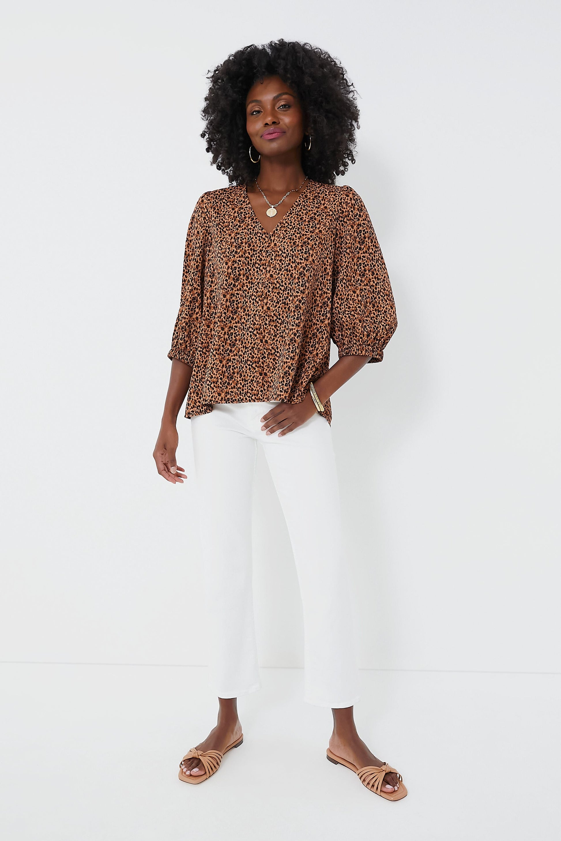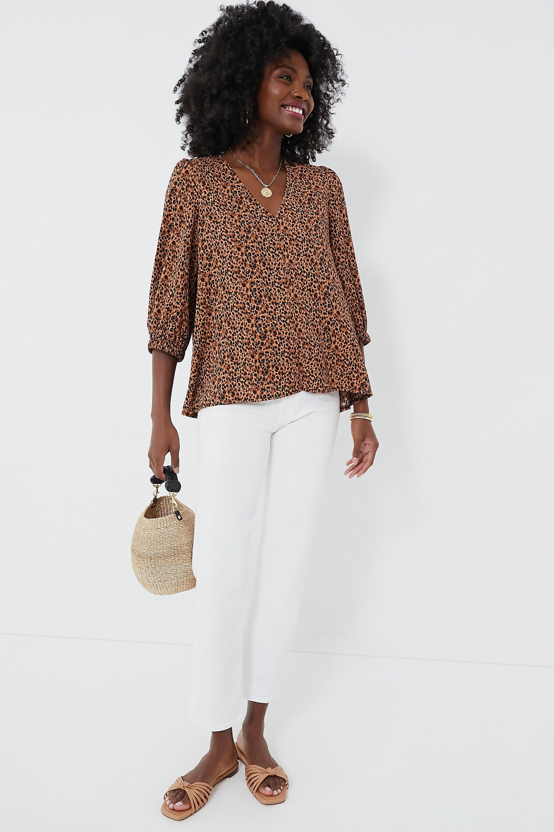 Leopard is back and we are obsessed with the Hollis Top! Featuring a playful print, V-neckline, and slightly puffed sleeves, this polished number is perfect for an elevated daytime look or for cocktail hour. We are pairing it with denim and sandals for an effortlessly chic throw-on-and-go look.