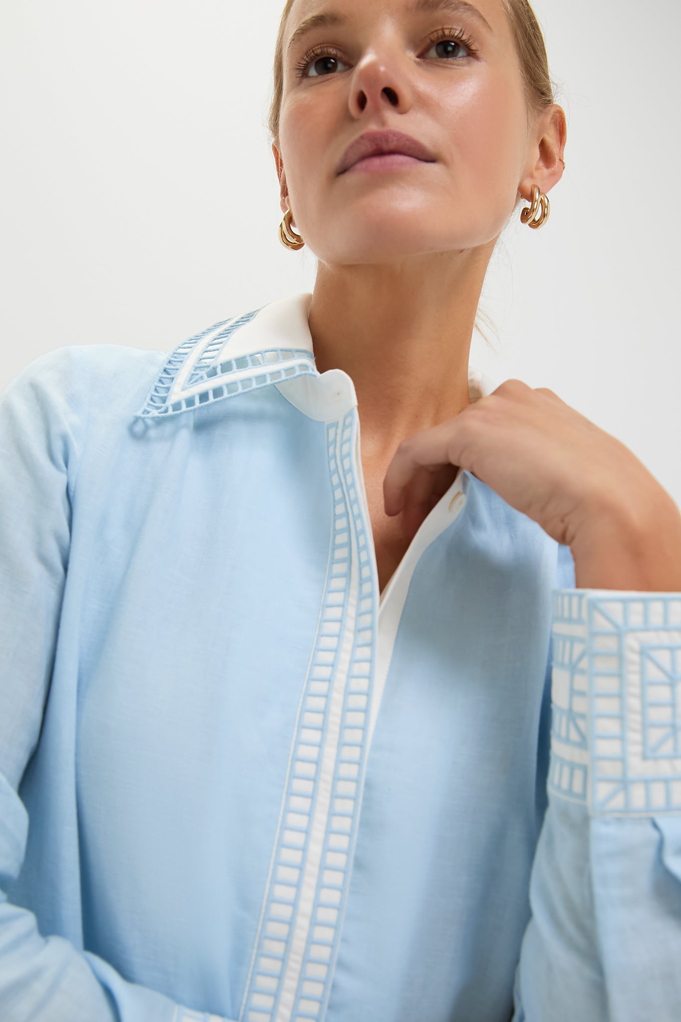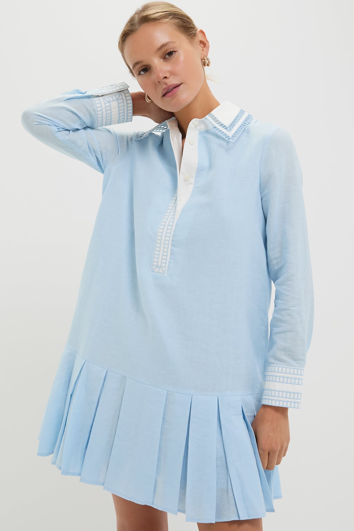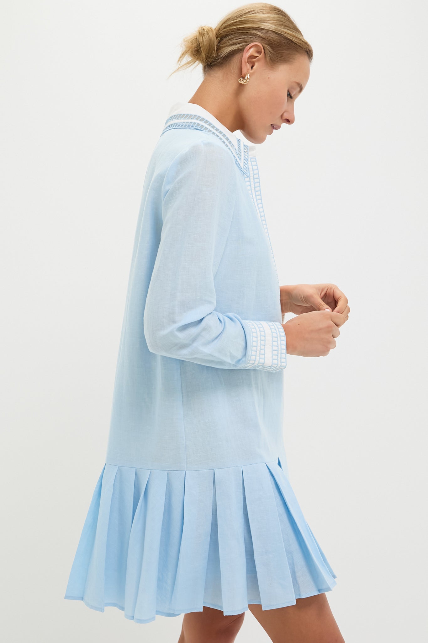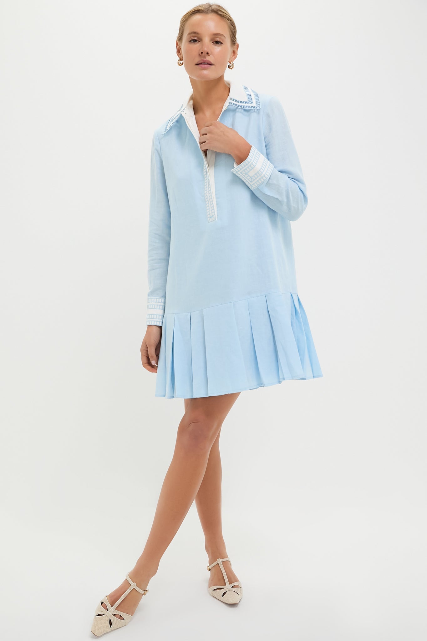 Soft, feminine, and effortlessly chic, the Light Blue Embroidered Collared Tate Dress is the ideal dress for the warm-weather months. With a sophisticated collar and breezy pleated hem, it’s the perfect pick for garden parties, brunch dates, or sunlit strolls. Pair it with gold hoops and strappy sandals for a stylish look.