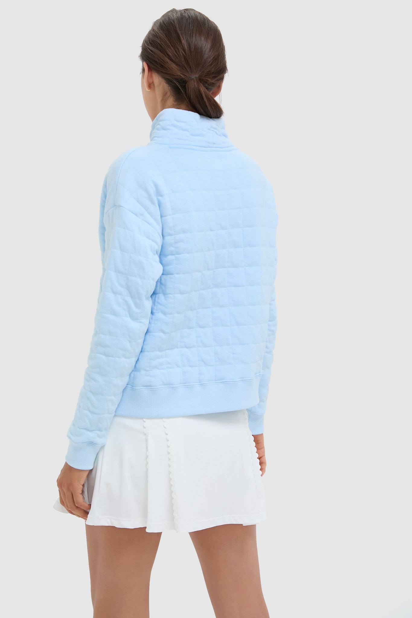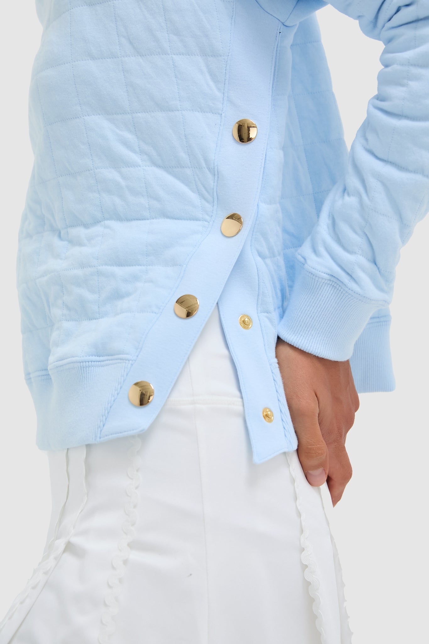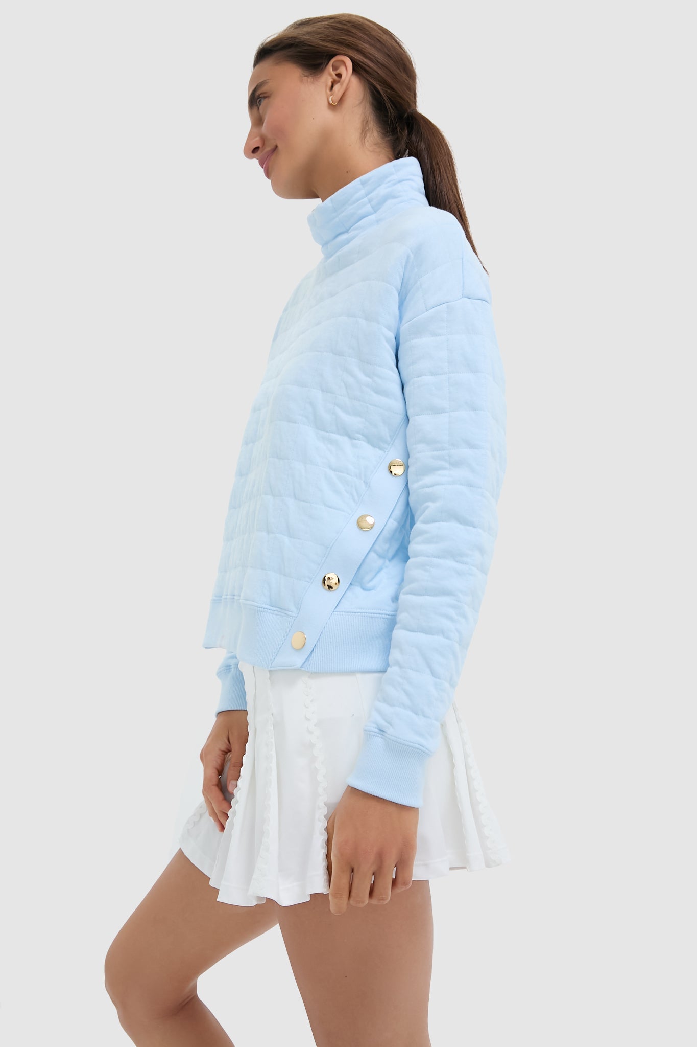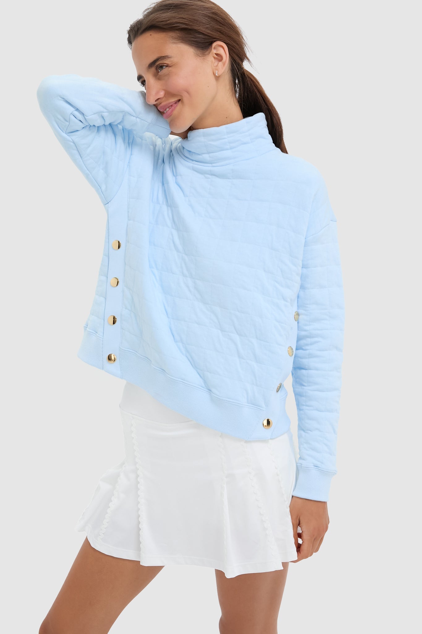 The Quilted Funnel Neck the comfy-cozy (yet elevated) style of our dreams! This chic pullover features a high neck, quilted body, and side snap closures for a look that can be worn with a tennis skirt or denim alike.