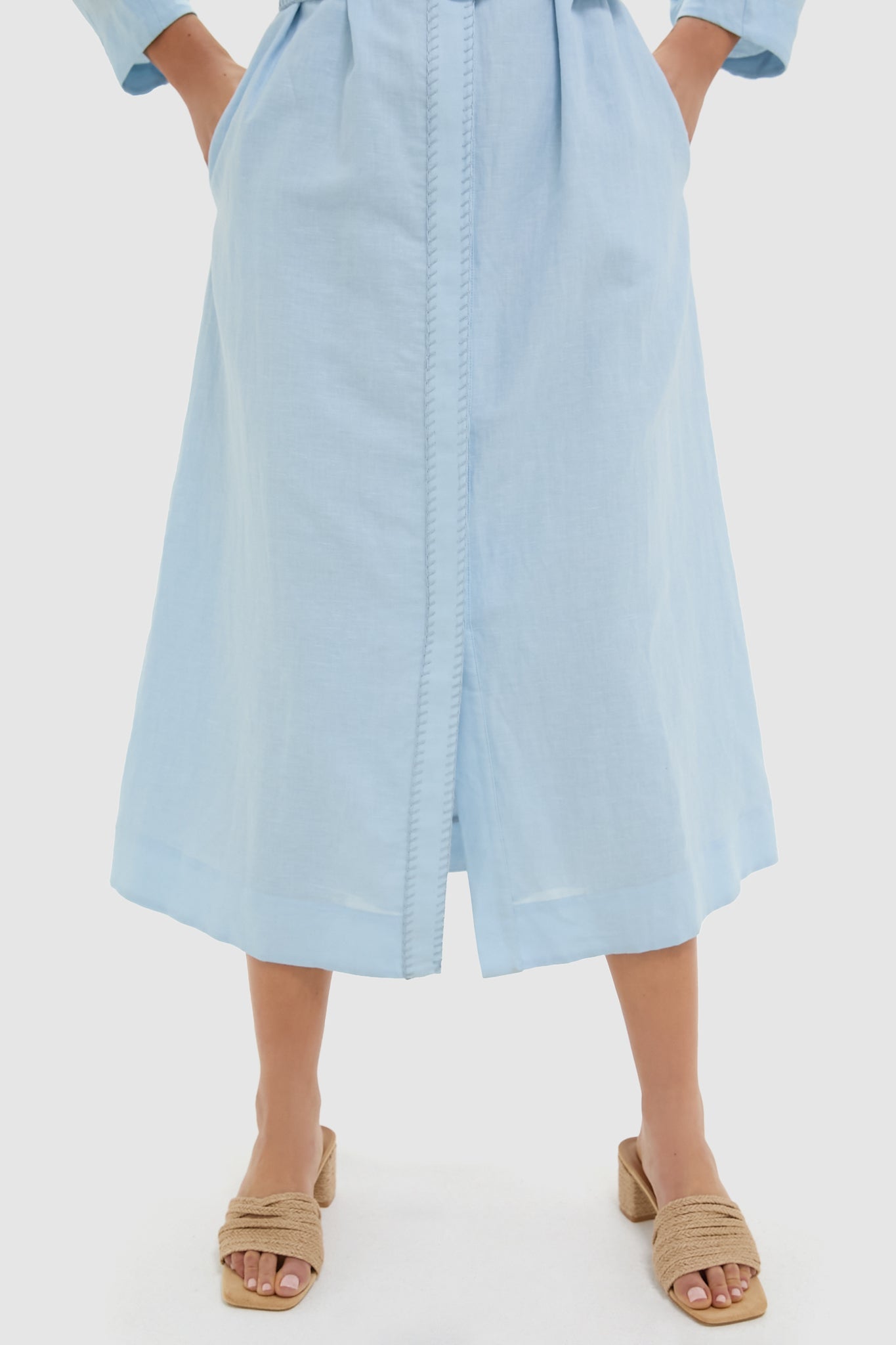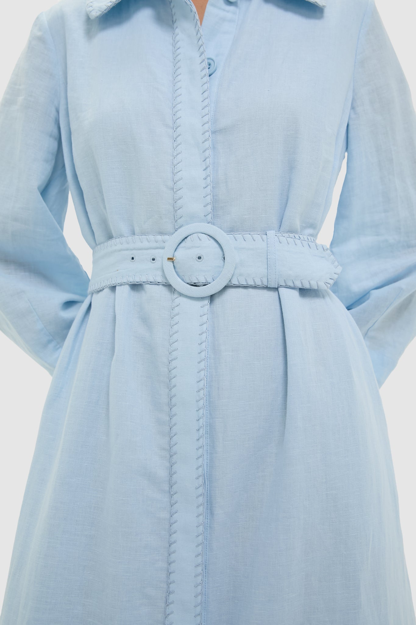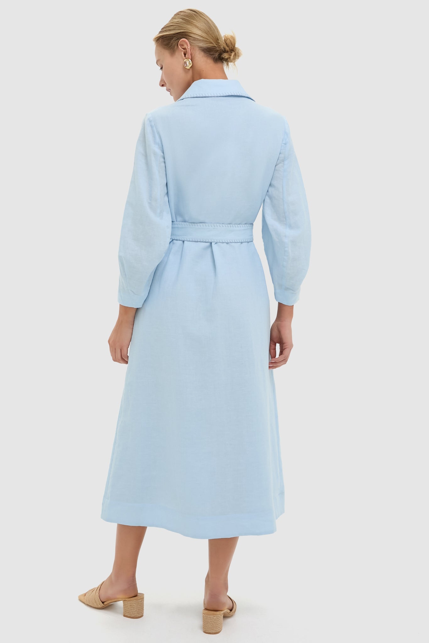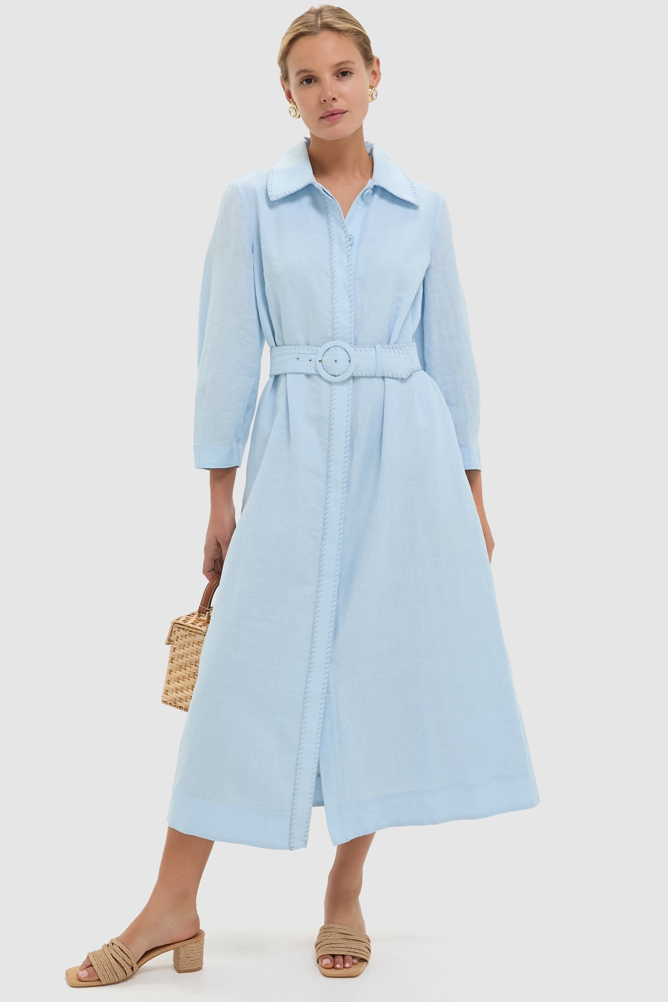 The Landon Dress boasts a flattering belted silhouette with long balloon sleeves, a front button placket, and embroidered trim throughout the yoke, collar, and belt. Ideal for all of your upcoming showers and luncheons, simply add neutral heels, a woven clutch, and gold studs for a timeless event look.