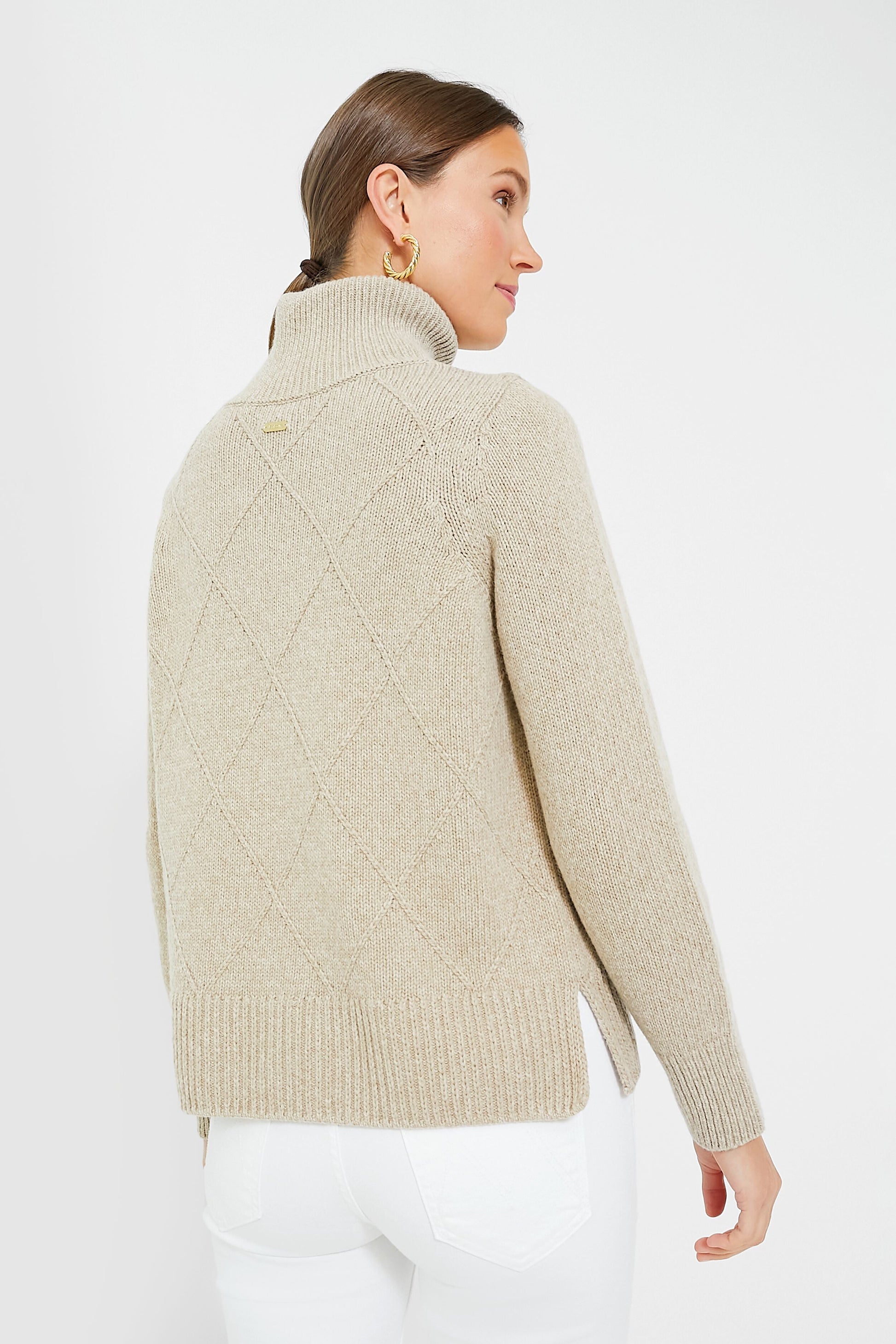 You can never have too many neutral sweaters in your cold weather wardrobe. The Light Fawn Laverne Knit takes the classic turtleneck and elevates it with the addition of a raised diamond trellis stitch pattern for a touch of texture and a ribbed hem with split sides for a perfectly comfortable fit. Whether grabbing cappuccinos with friends or hitting the ice rink with the kiddos, this cozy silhouette is ready for anything — just add denim and boots for chicest results!
