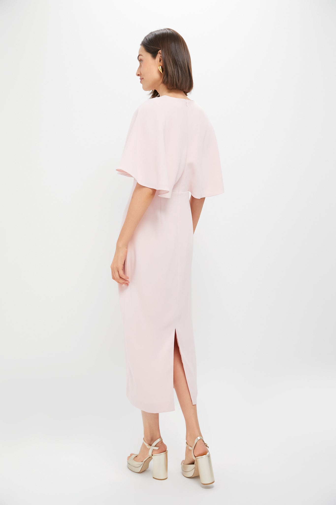 With gorgeous cape sleeves that will help you show all your best moves on the dance floor and a back slit that promotes effortless movement, the Light Pink Crepe Leah Dress is ready for all your RSVPs this season. Just add heels and clutch for a jaw-dropping look!