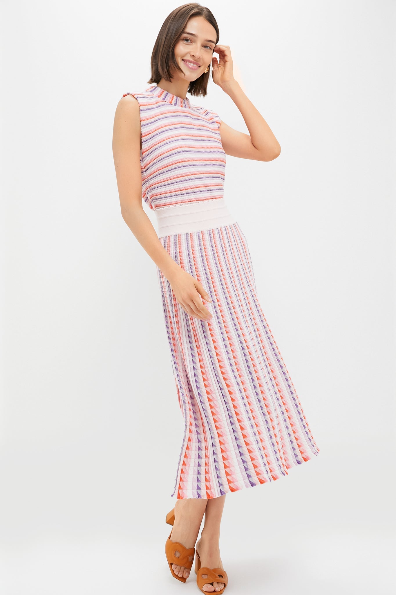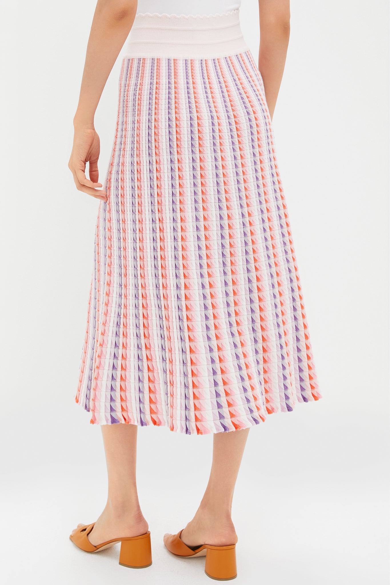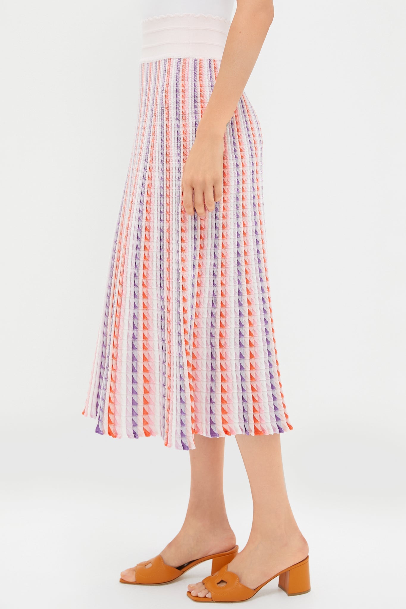 A must-have for spring-summer season, the Lilac Multi Cocktail Skirt, has a lilac, pink, and orange colorway that highlights the texture of origami stitch to make it a dynamic summer accent.This fluid, lightweight skirt features an ultra-comfortable, sophisticated waistband that emphasizes the waist. Pair with the matching Lilac Multi Campari Top, heels, and a clutch for sophisticated and chic styling!