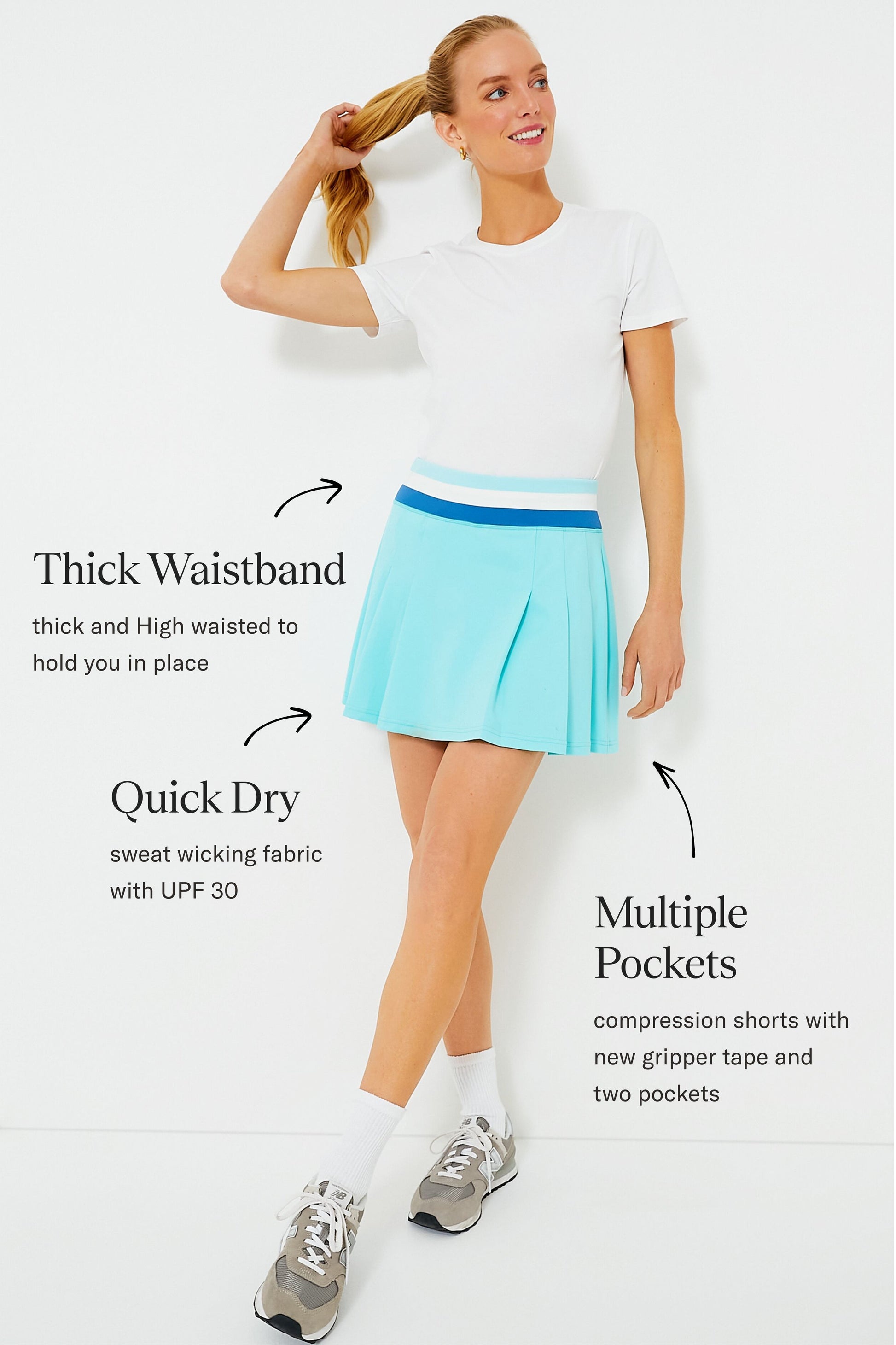 Match, point, ace! Win the game with ease in the Lisbon Blue 15 Inch Lydia Pickleball Skirt, with compression undershorts and quick dry material you are set to take the trophy.