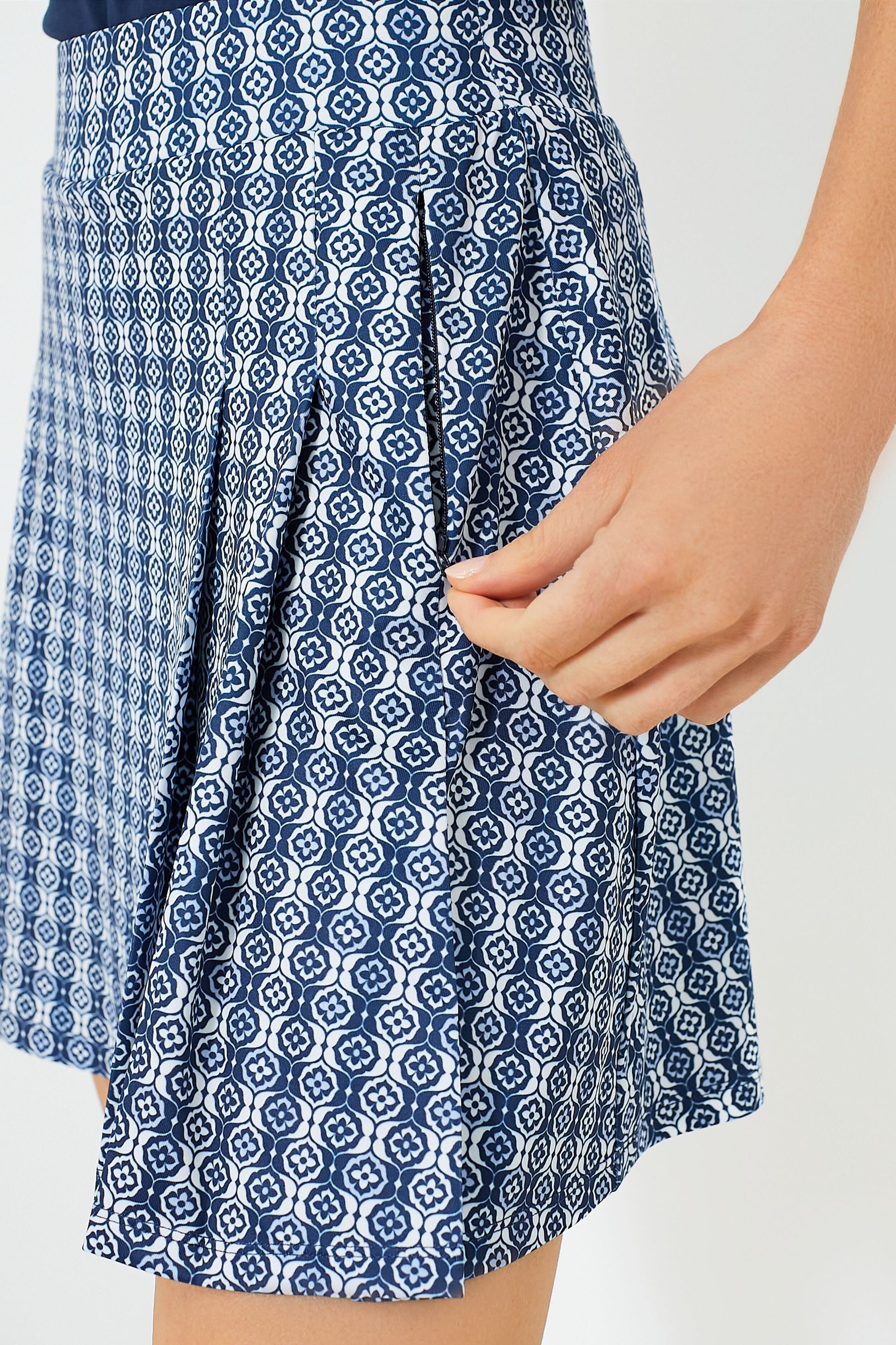 The Lisbon Tile 16 Inch Park Golf Skirt is perfection when it comes to a golf day outfit, styled with its matching polo or with a contrasting color for a quick lesson at the course and your outfit will be sporty chic!