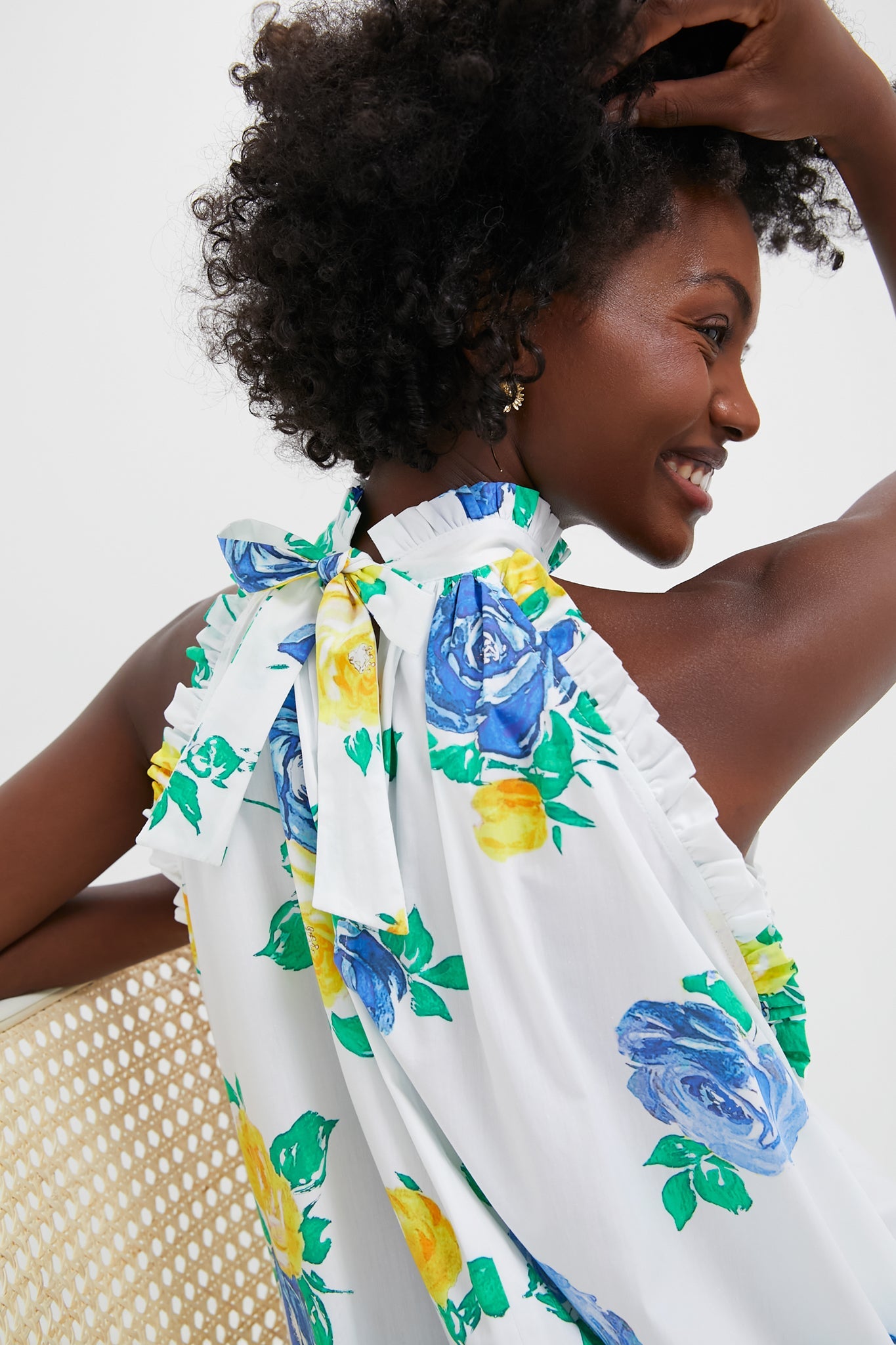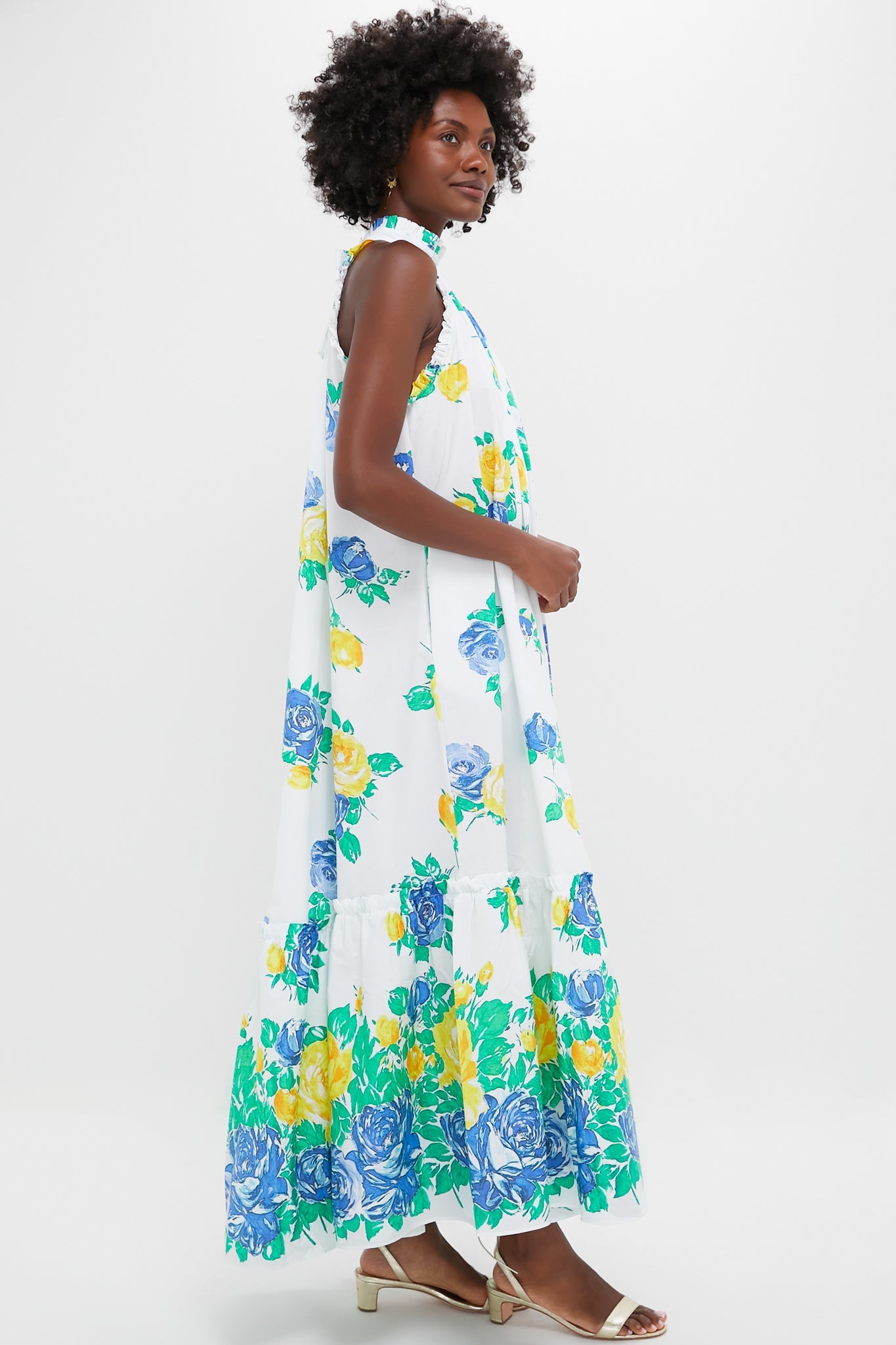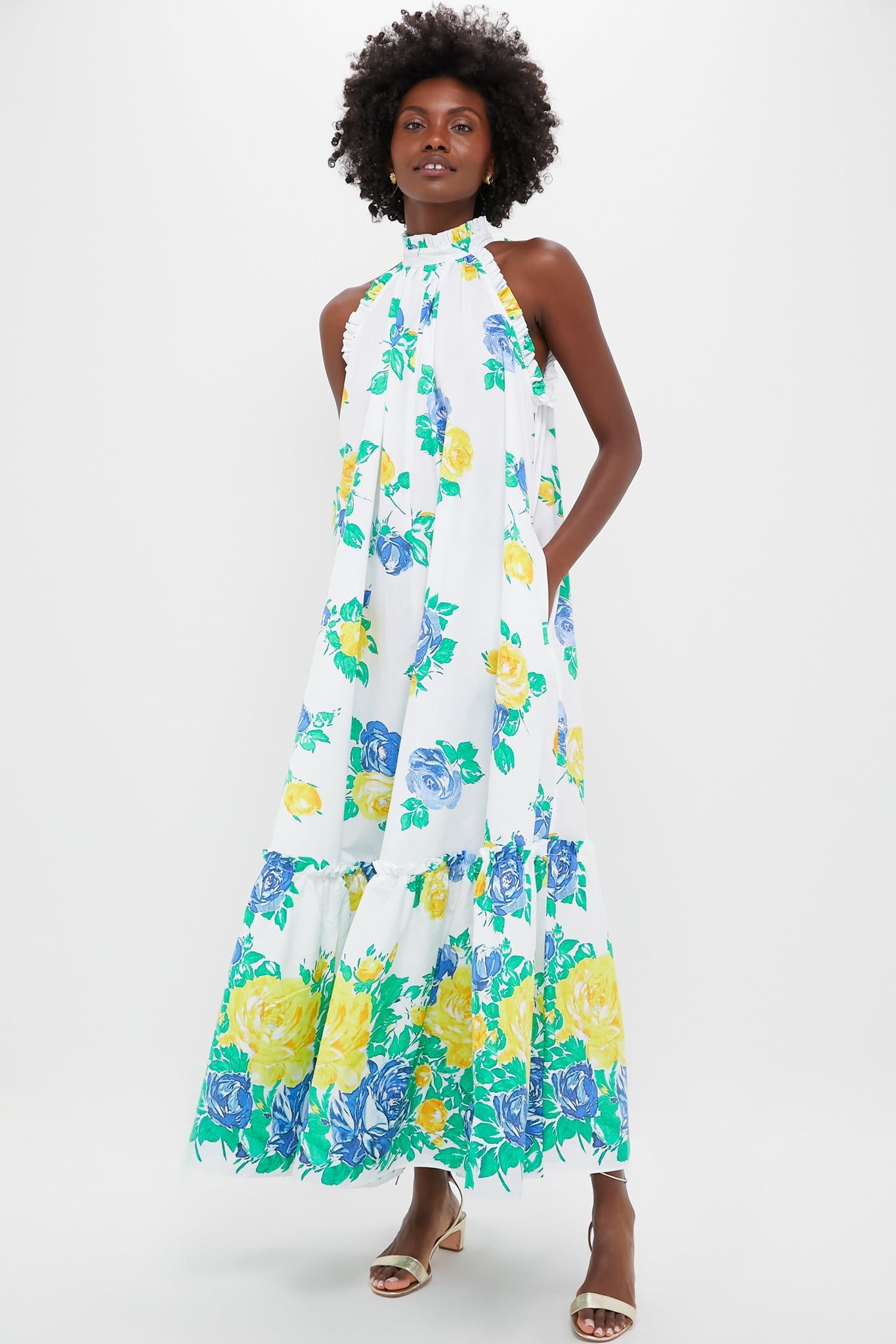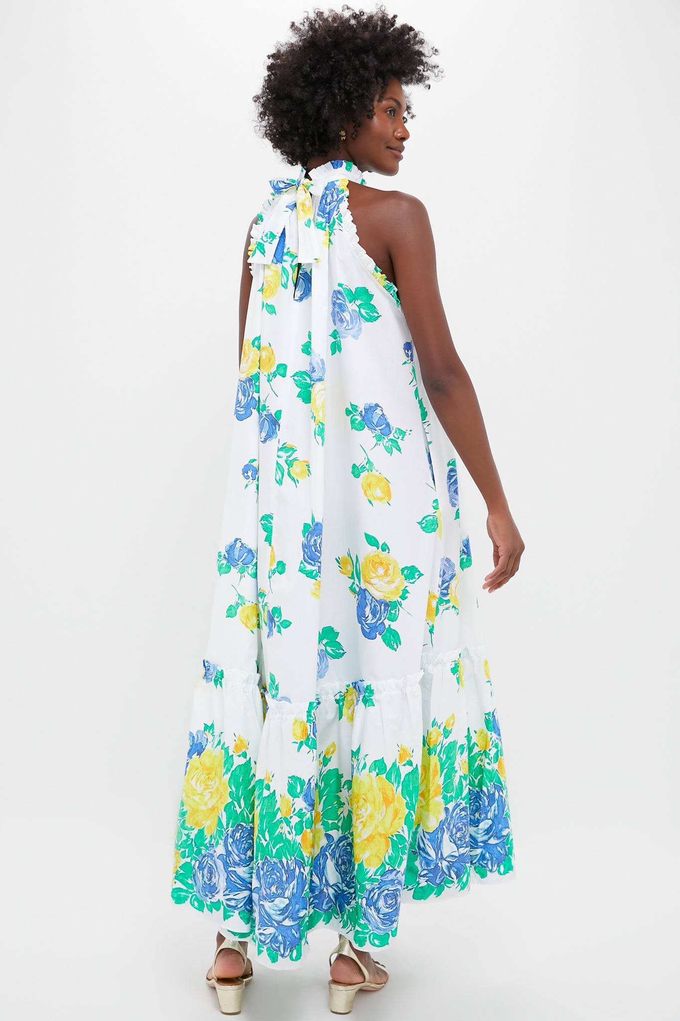 The Lucy's Roses Melinda Dress is a gorgeous dress for warm weather celebrations. With a high neckline, tie closure at the back, and tiered skirt, this vintage inspired print is sure to turn heads. Pair with heels, a clutch, and gold jewelry for chic, occasion styling.