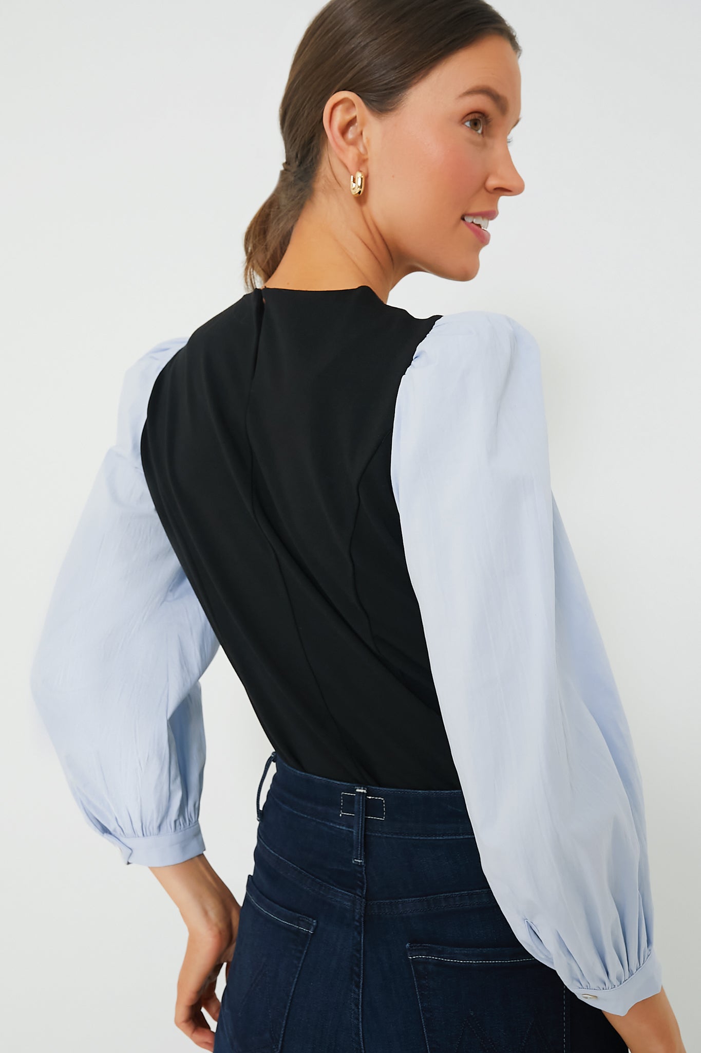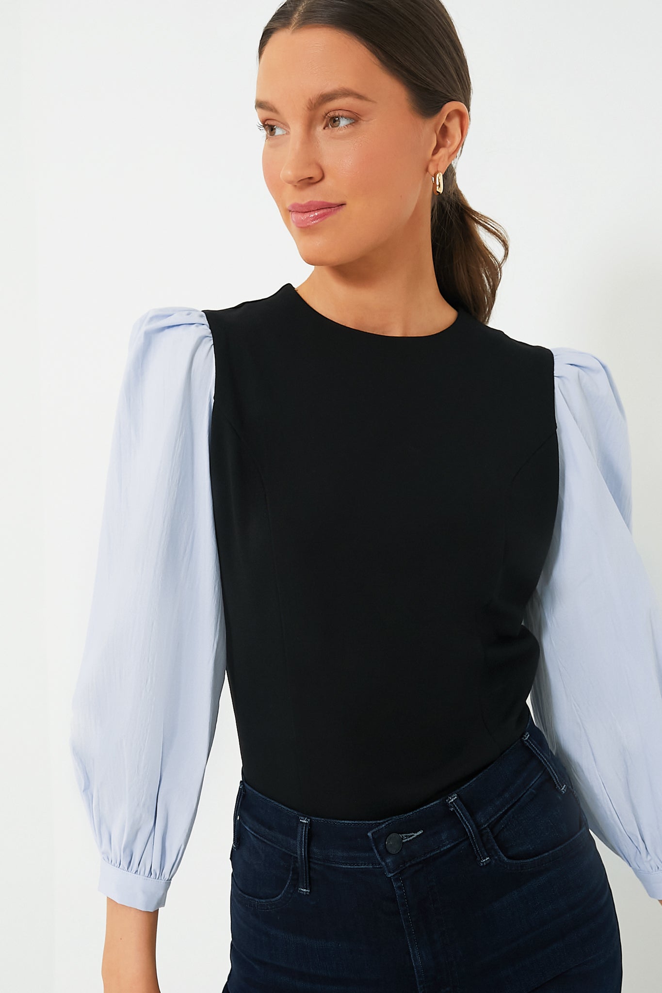 Take it or sleeve it. The Mixed Media Gracia Top is the cool-girl closet update you've been needing. Featuring a classic high round neckline and a slim fitting bodice that anchor the style, it's finished with fabulous contrast blouson sleeves with a subtle puff for a feminine touch. Pair it with a mini skirts and knee boots to try that new restaurant in town, or with flared denim and chunky platforms for game night with your besties.