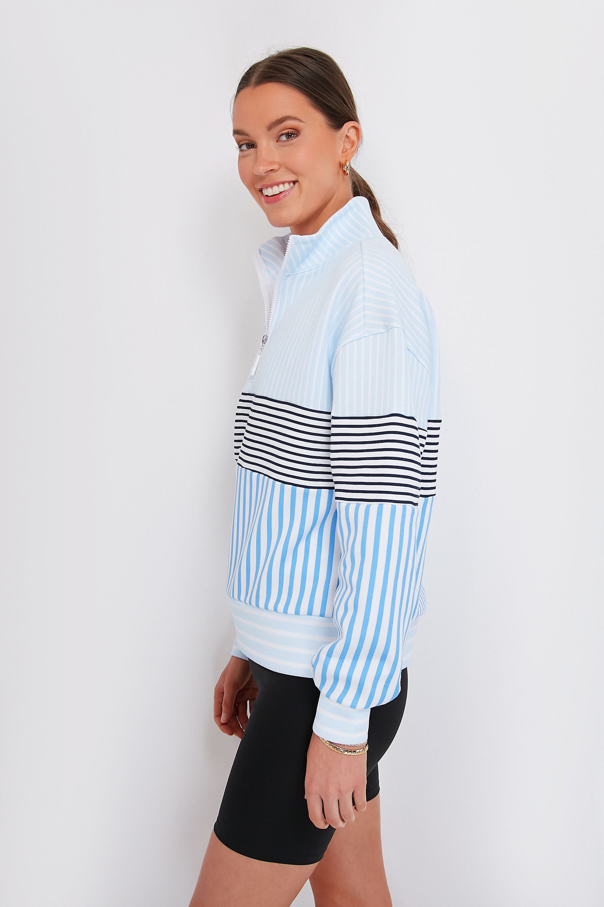 The Varsity Quarter Zip is our go-to layer. Featuring eye-catching color blocked stripes in various shades of blue, this cozy piece will have you looking and feeling your best. Pair with leggings, shorts, denim, you name it, for morning coffee runs and windy beach afternoons, we're sure this essential number will have you covered.