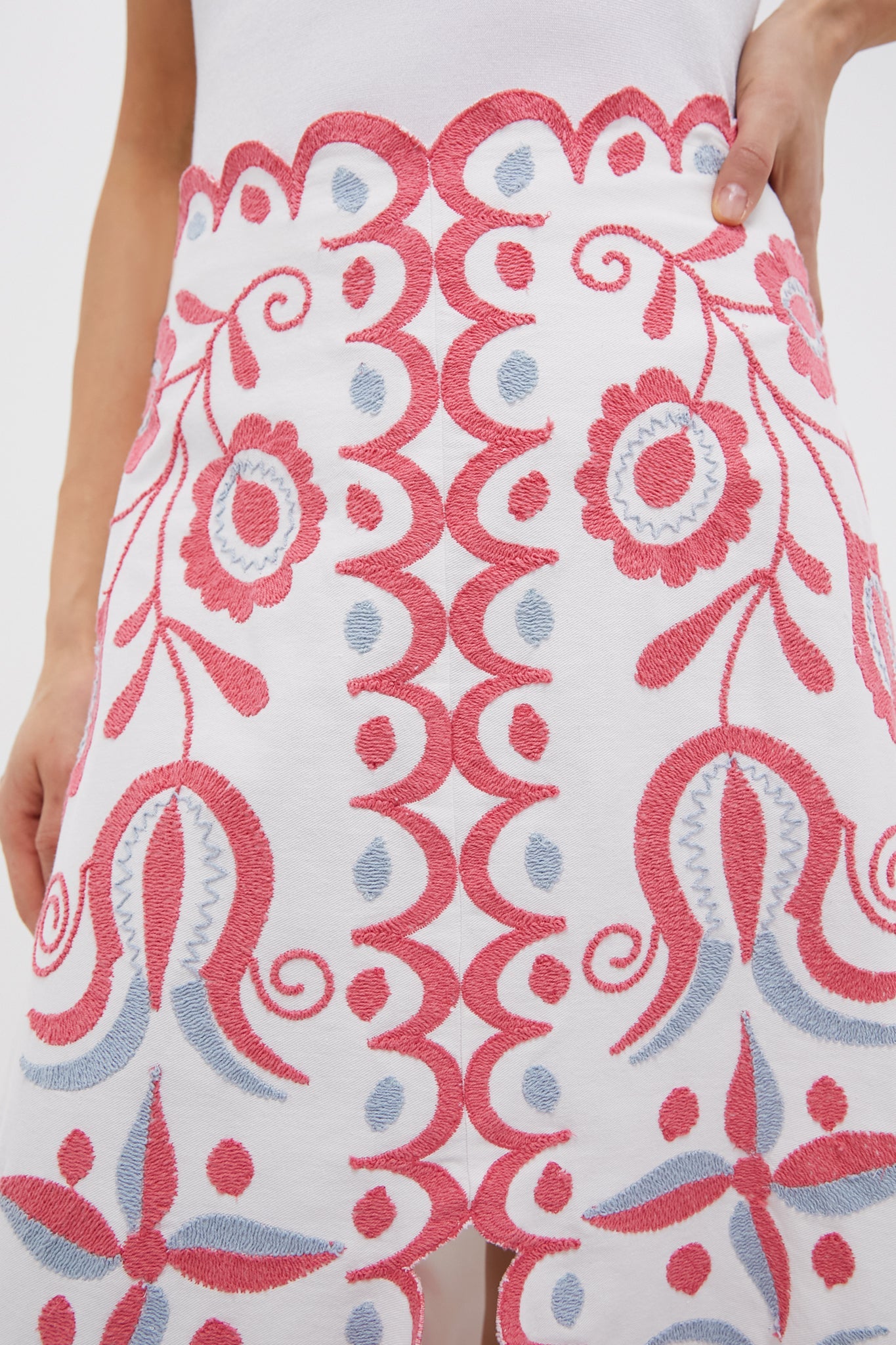 - Allover embroidered detailing