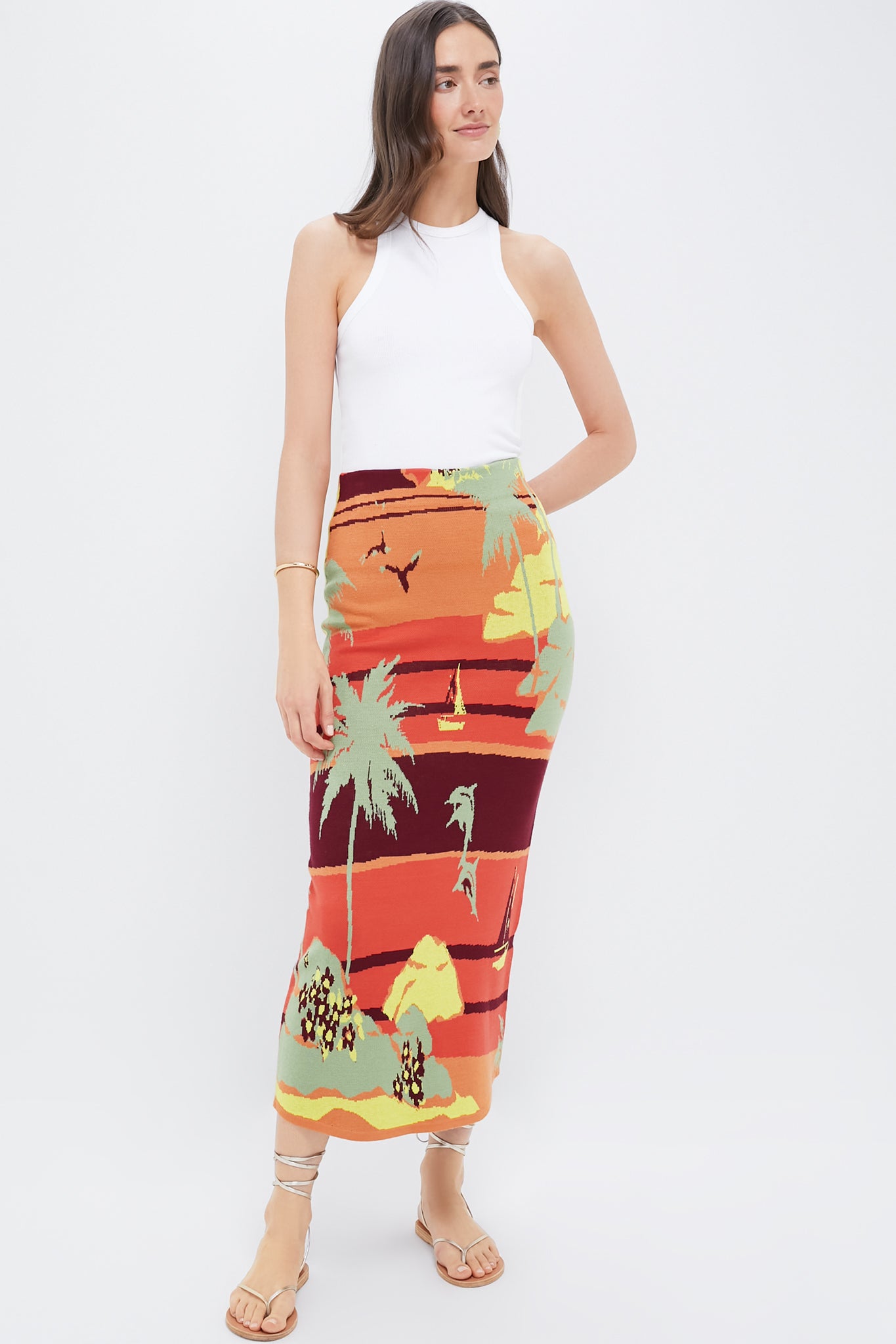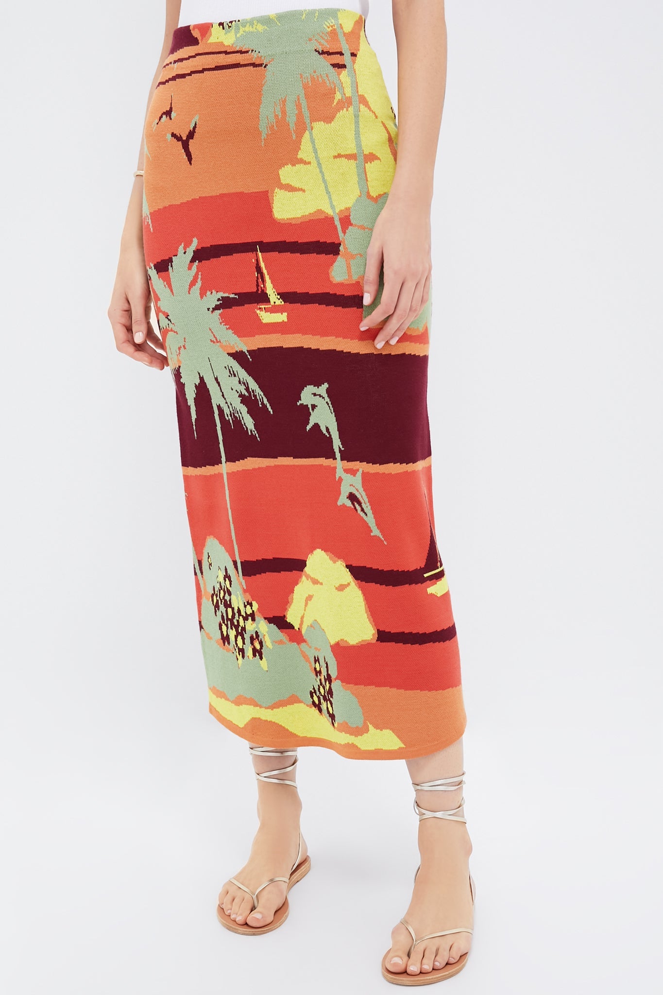 Multi Palm Island Knit Skirt