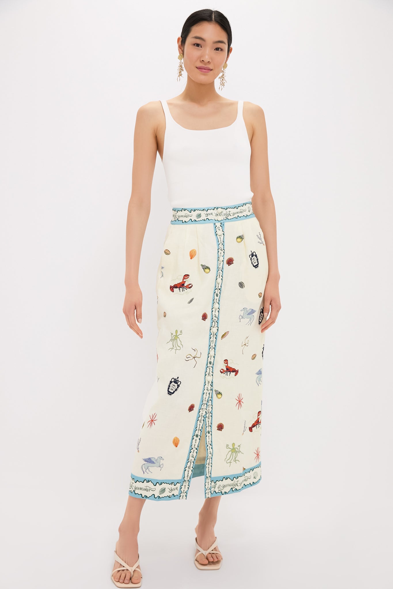 The Multi Sandy Embroidered Skirt screams warm weather dressing. With a midi length, front button placket, and embroidered detailing, this dress is ready for your next destination. Pair with a white tank, sandals, and woven bag for clambakes, sunset watching, and anything in between! Just add a sweater for when the air turns chilly!