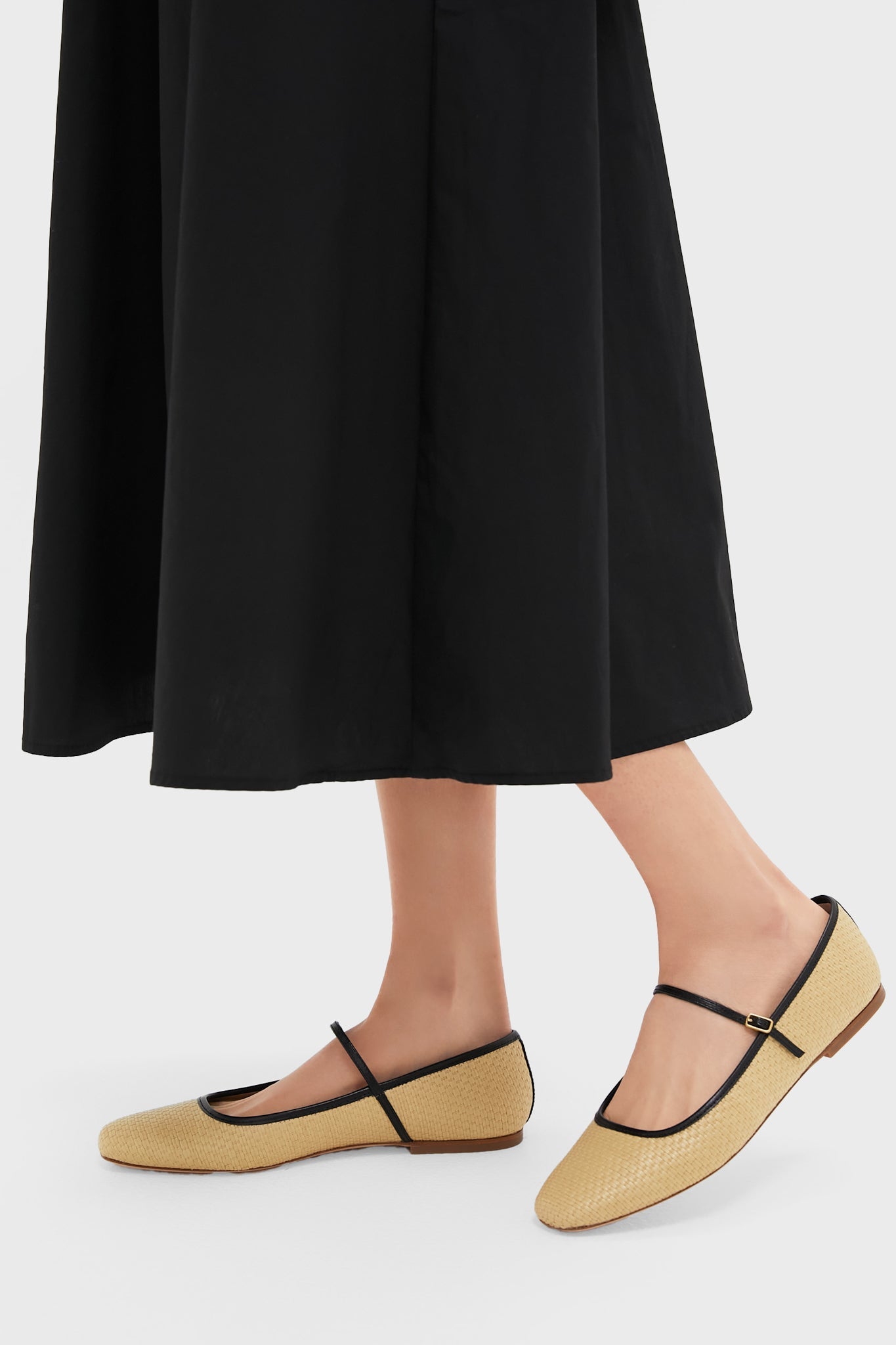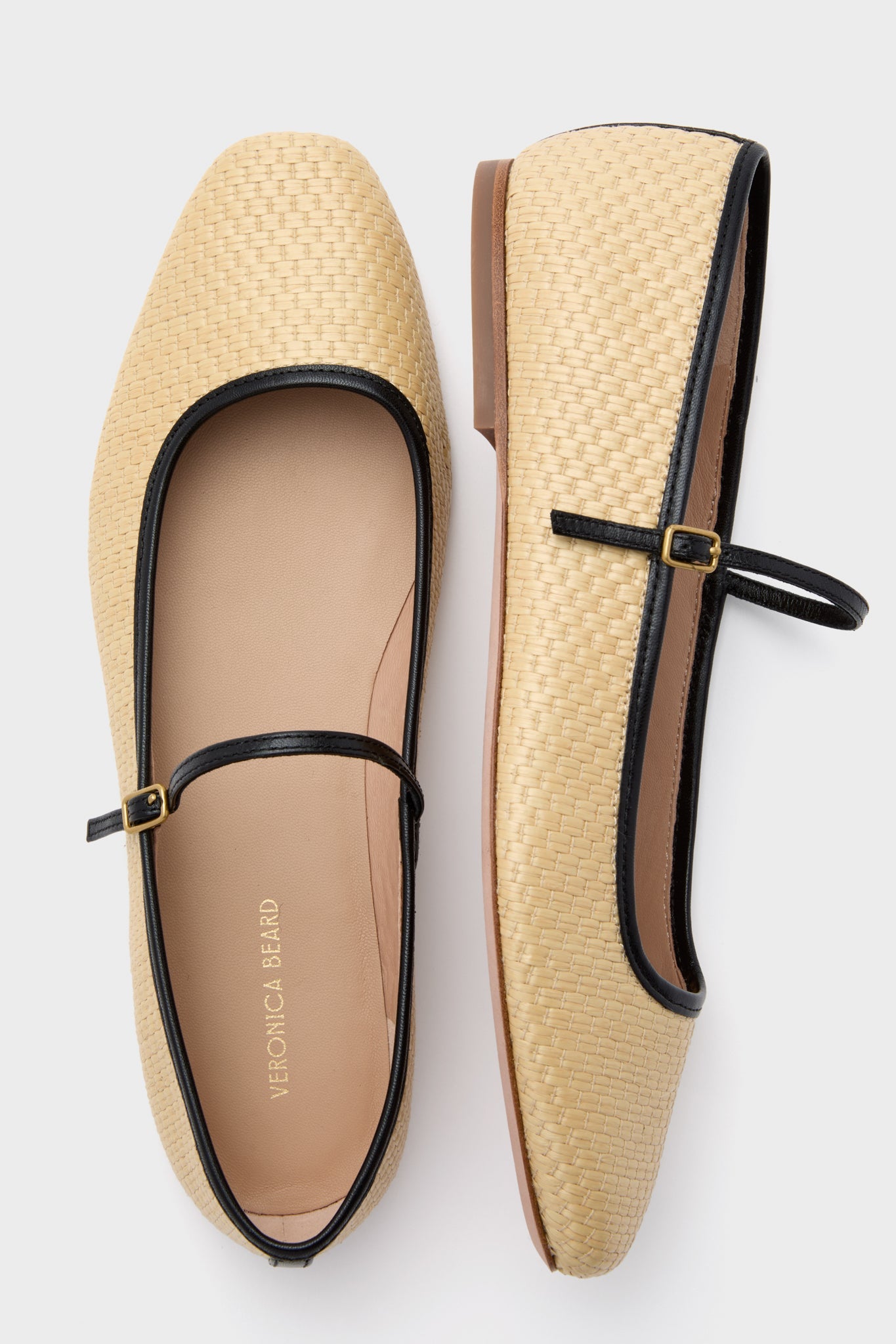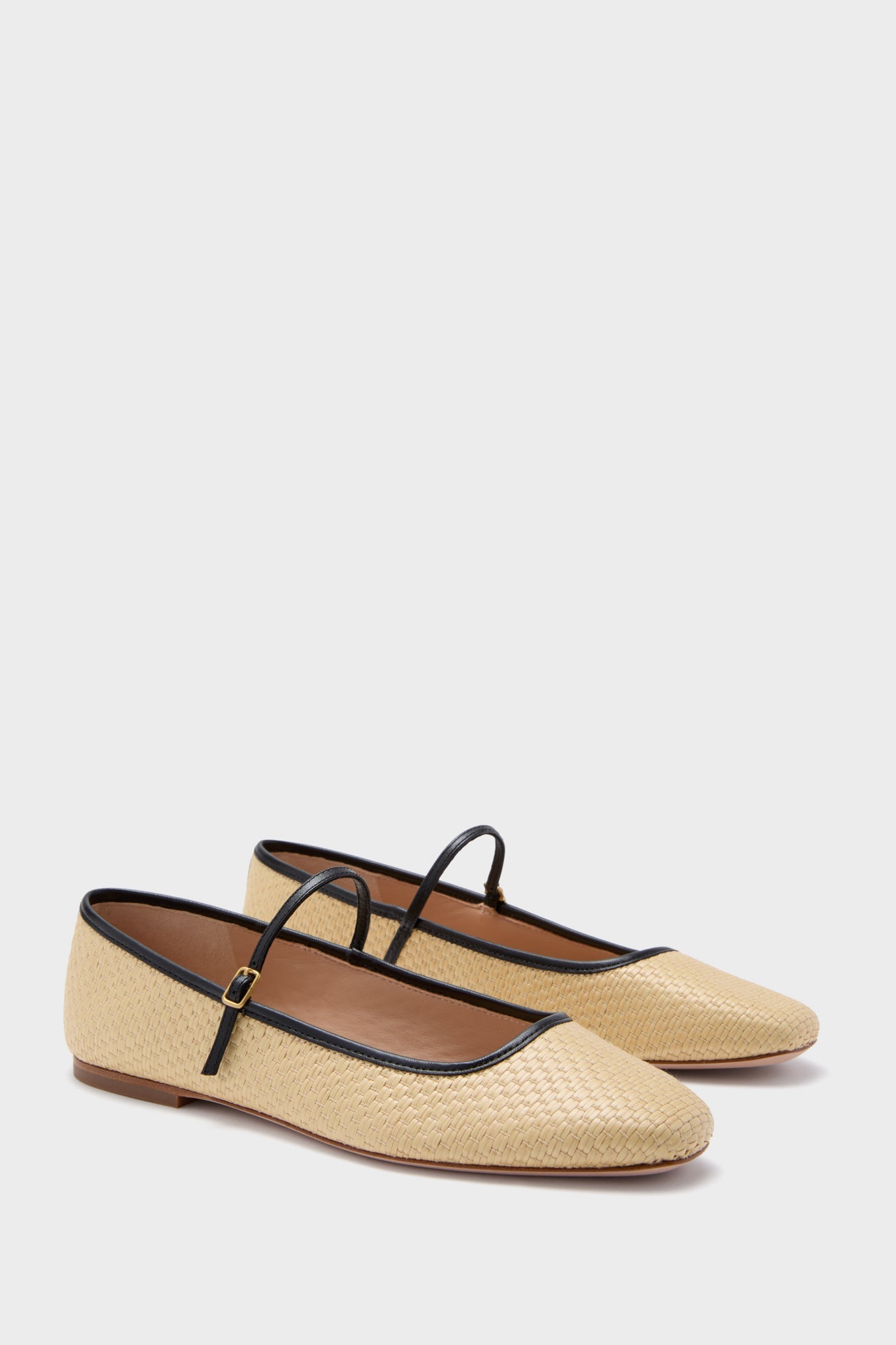 Natural and Black Ellie Raffia Flats