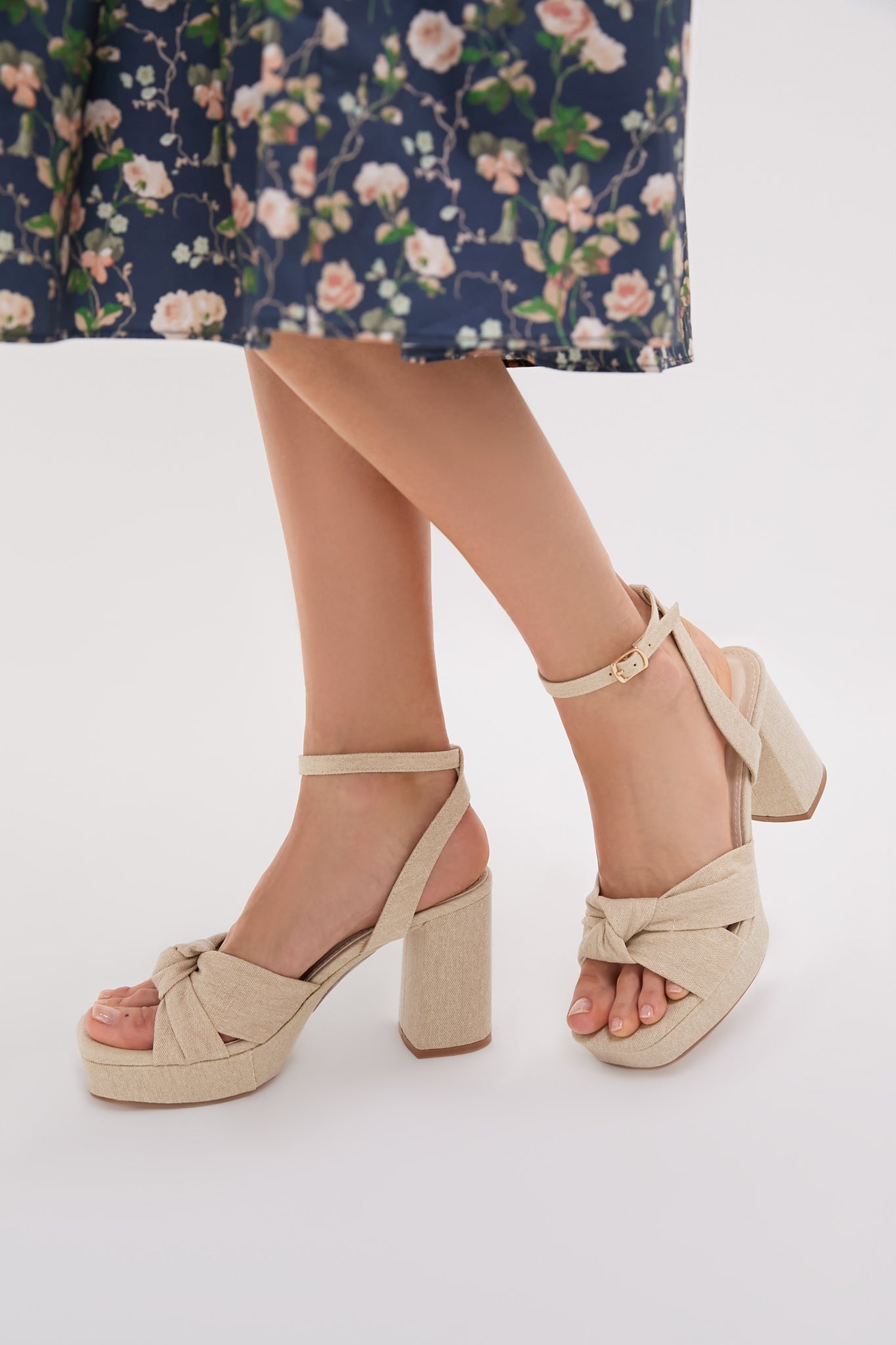 The Genoa Heels will go with everything in your closet. With a platform sole, chunky heel, and knotted upper, these neutral beauties will instantly elevate your look.