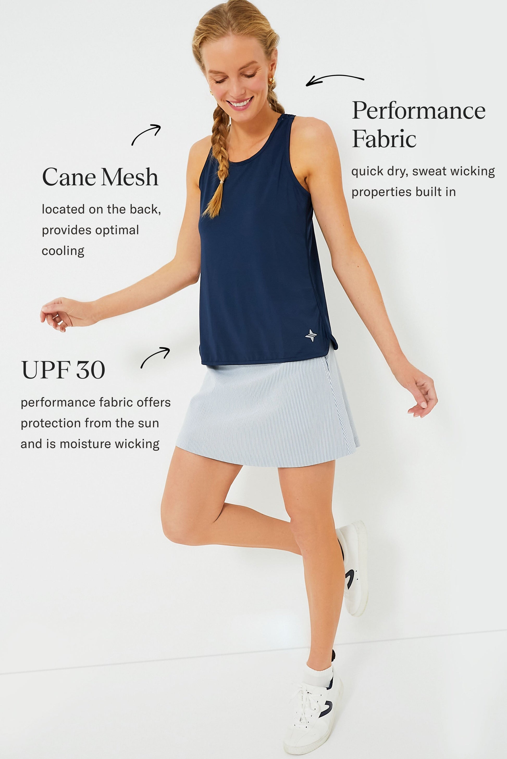 The Racerback Ellen Tank will have you feeling as put together as Meredith Blake this season. With quick dry fabric, cane mesh, and UPF 30 protection, you can wear this at your next yoga retreat or to a soccer game with the kids.