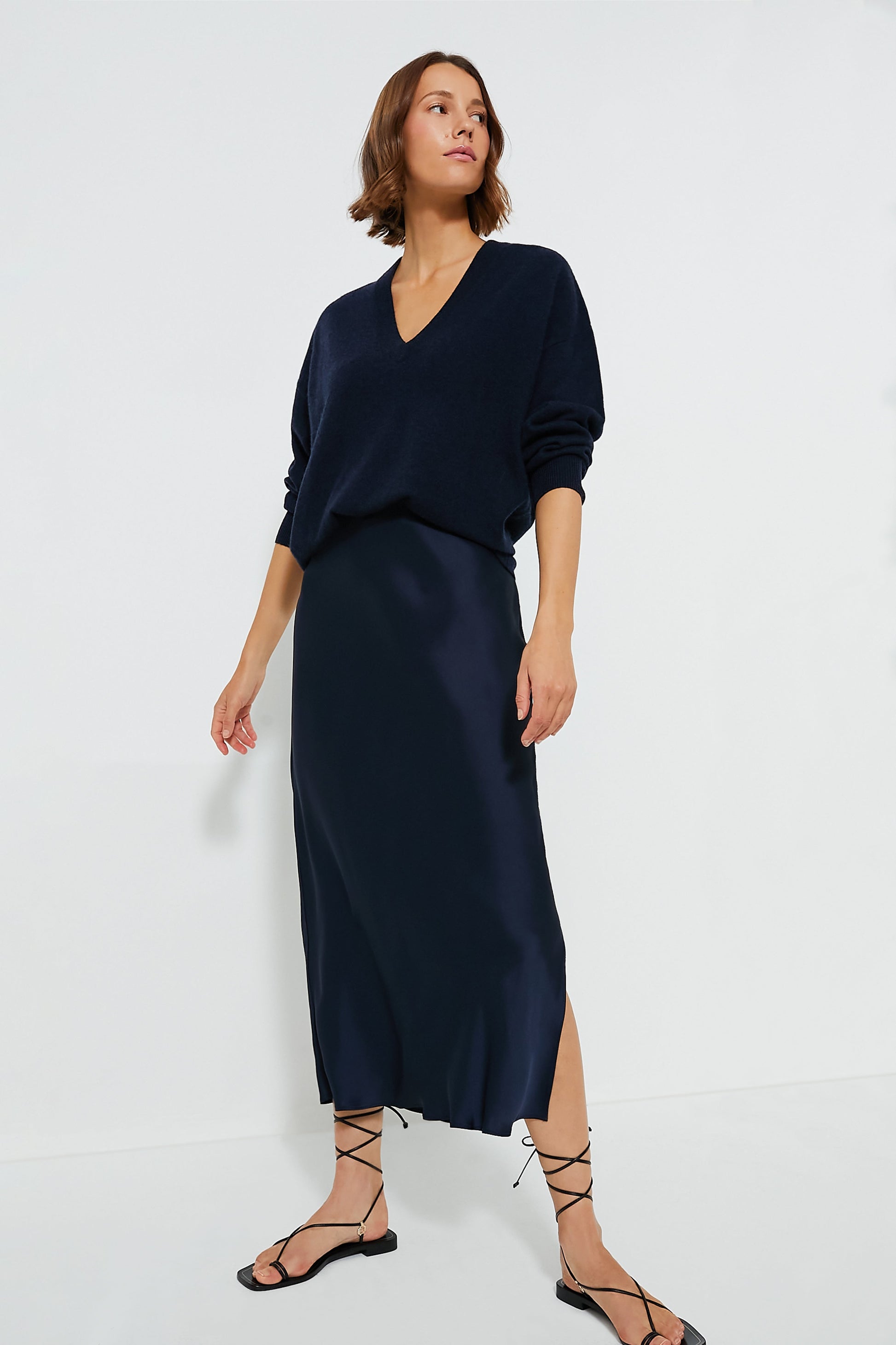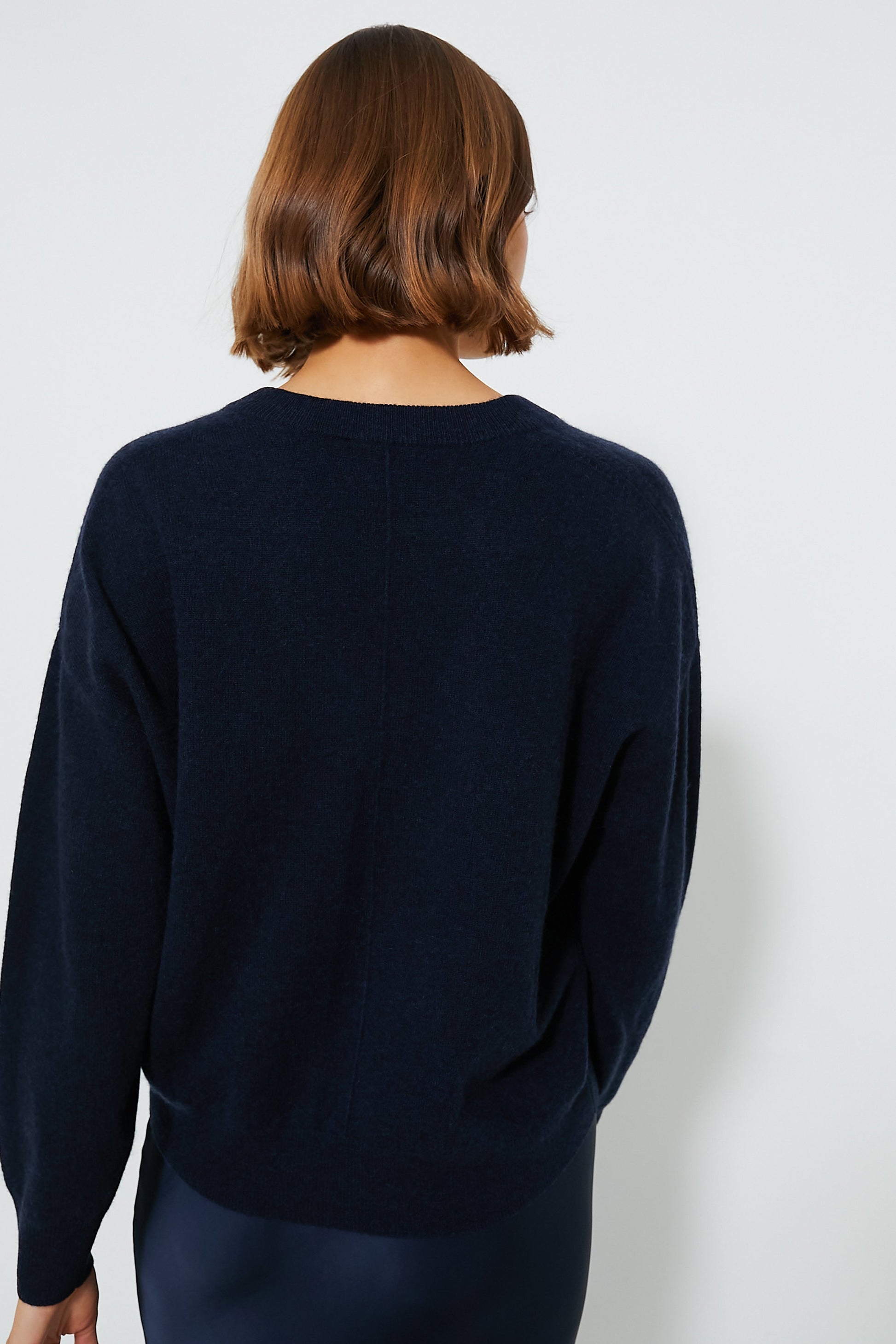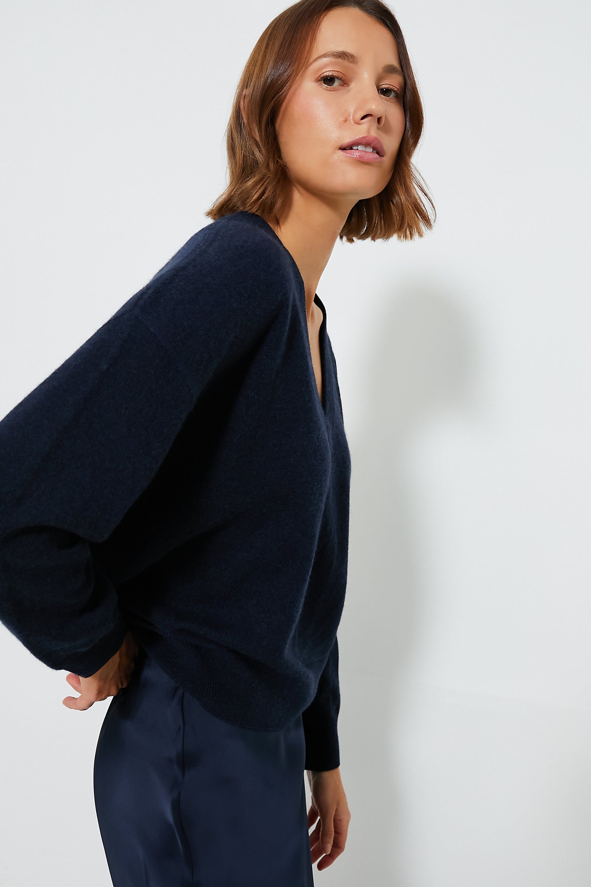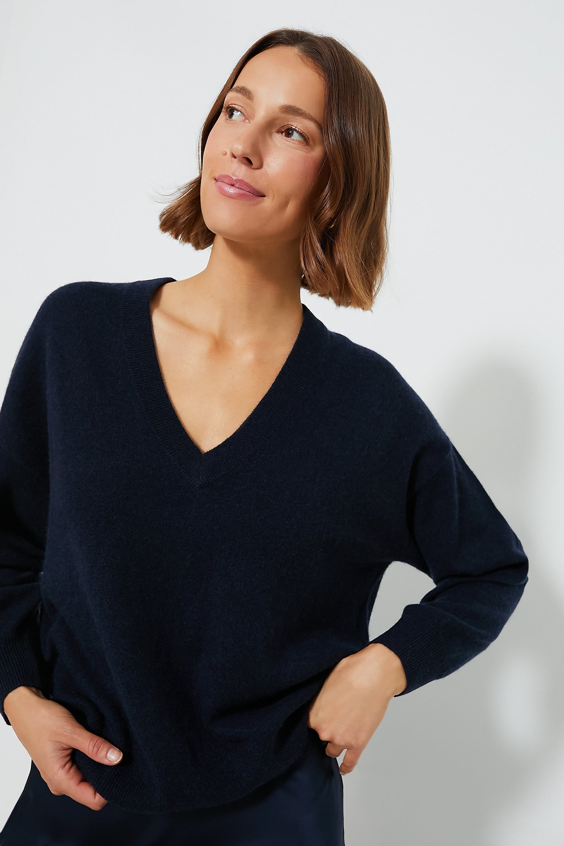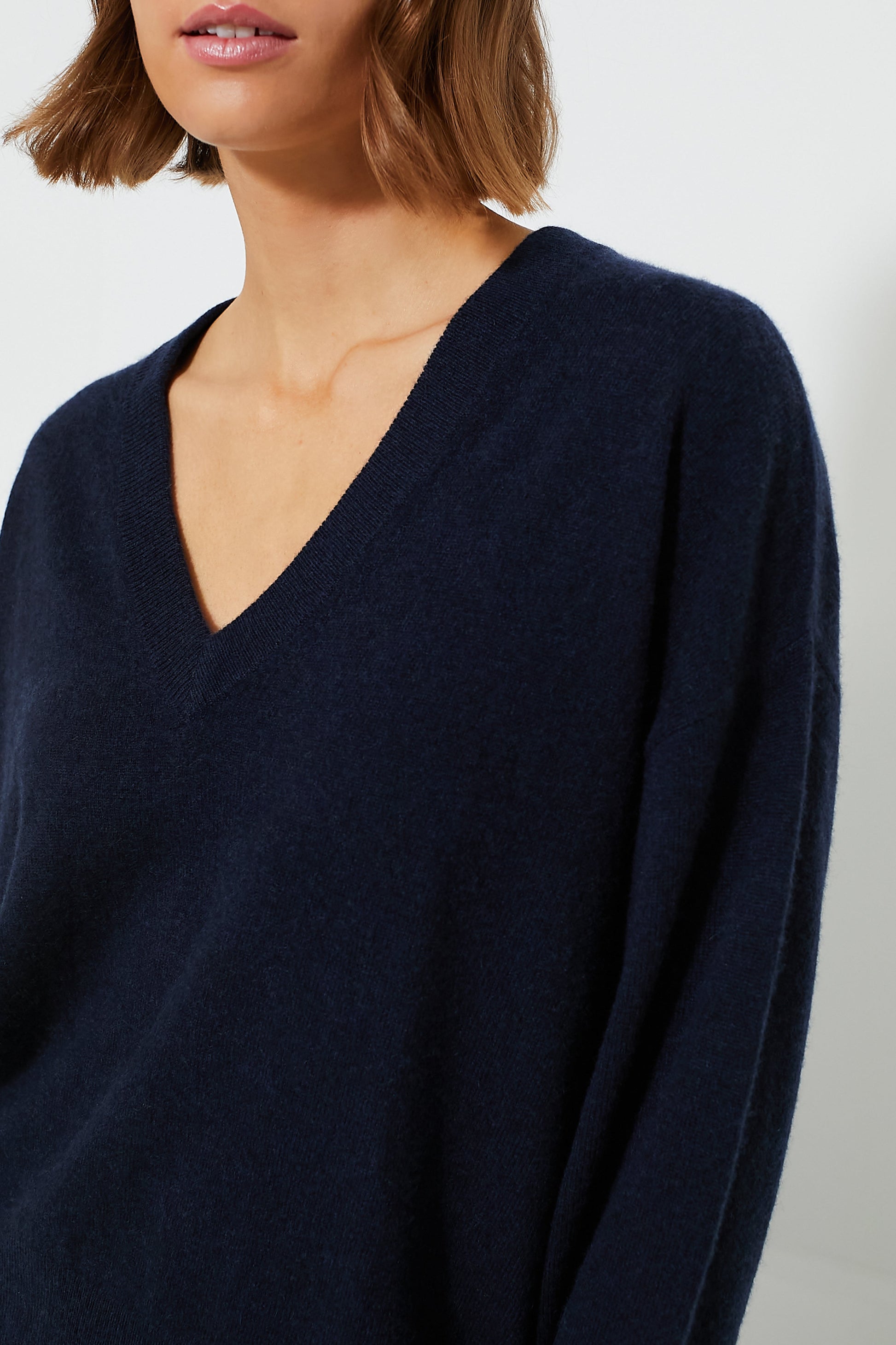 Navy Cashmere Emma V-Neck Boyfriend Sweater