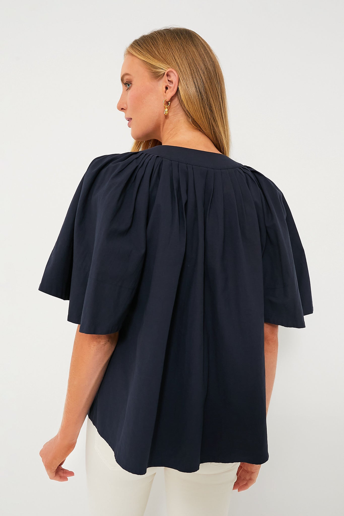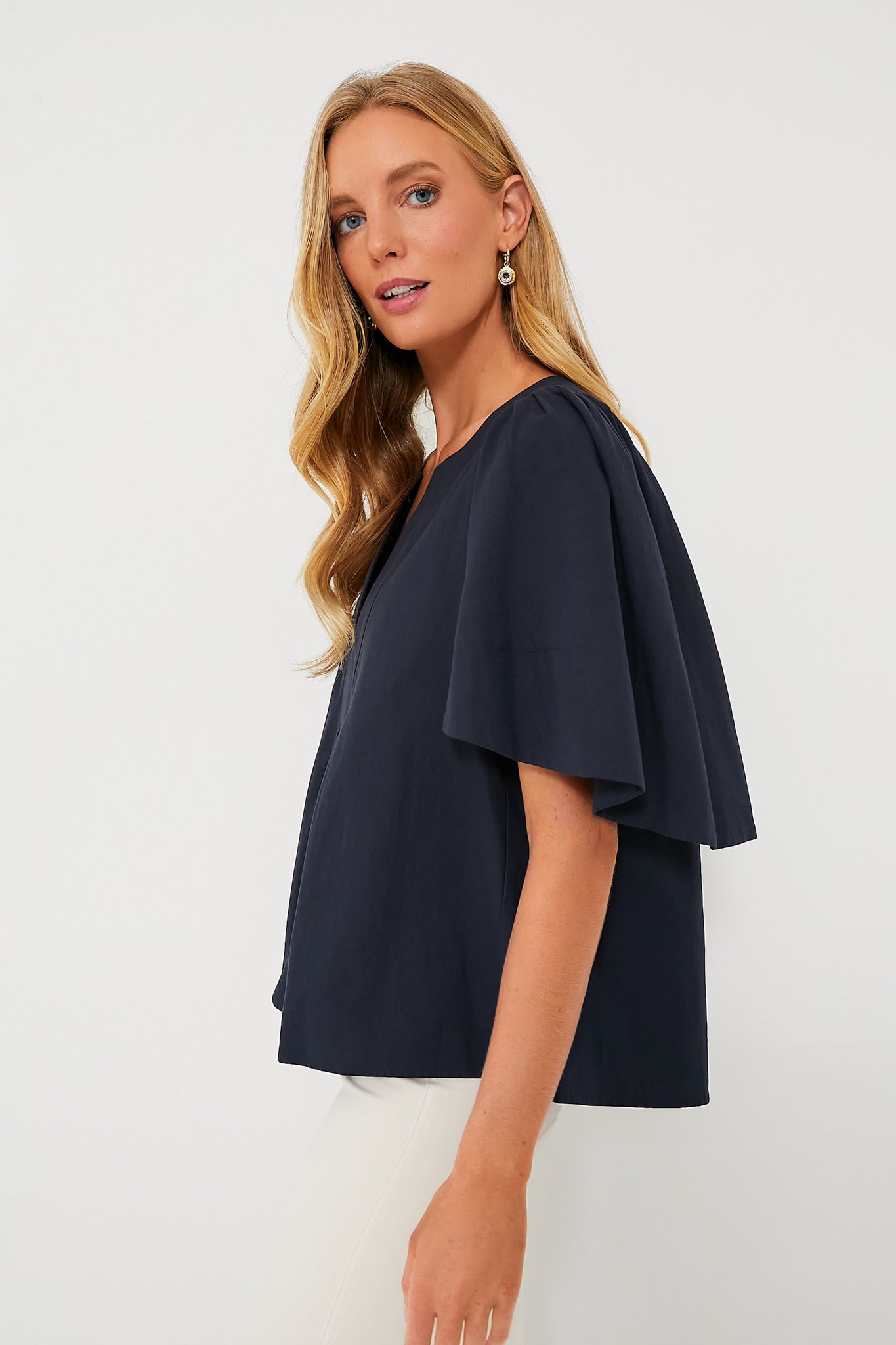 The Finley Flutter Sleeve Top is effortlessly chic. In a classic navy hue, this blouse has a flattering silhouette, oversized flutter sleeves, and a V-neckline that is perfect for year round wear. Pair with gold accessories for everything from work to brunch this season.