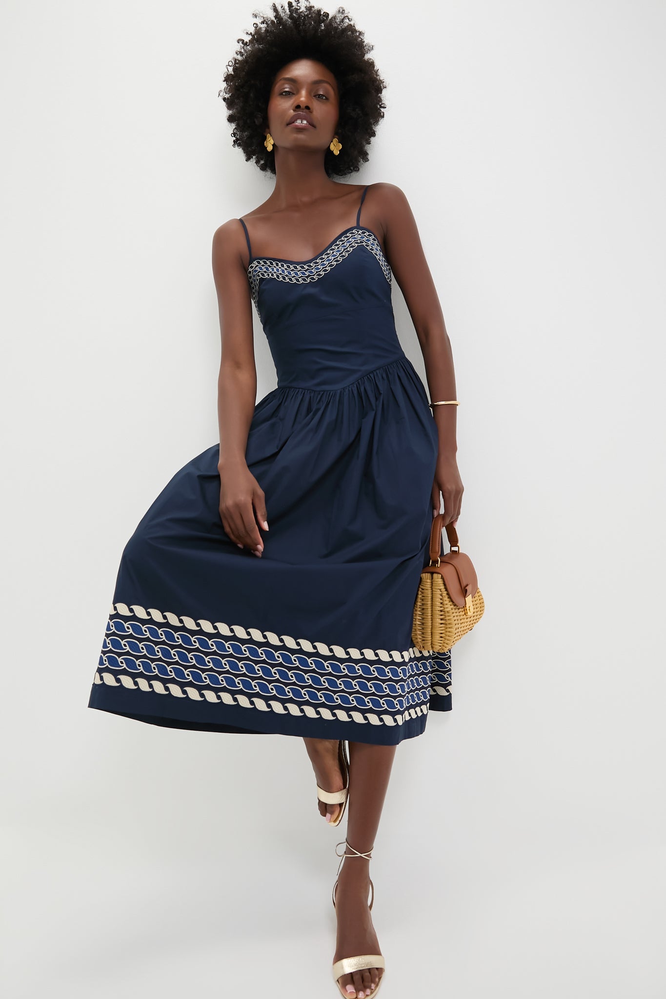 The Gabriella Dress is the perfect warm-weather event dress- boasting adjustable straps, a flattering fitted bodice, and embroidered detailing on the neckline and hem. Pair with neutral heels and gold accessories for cocktail parties and wedding events!